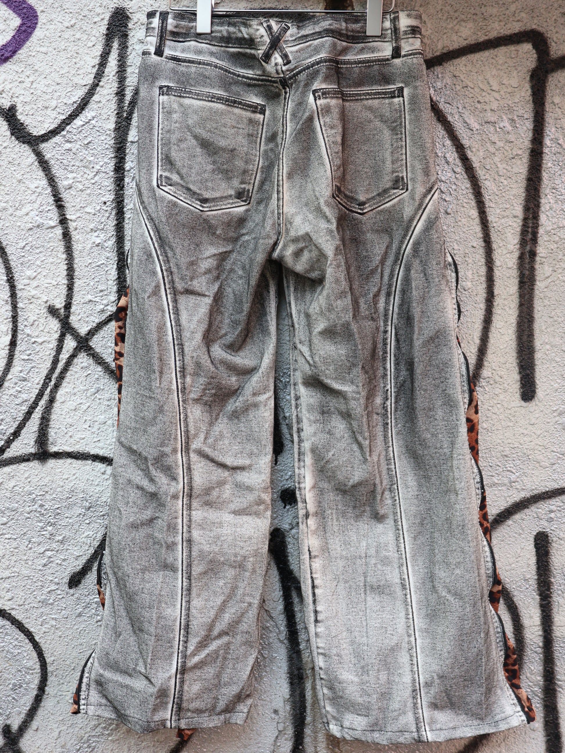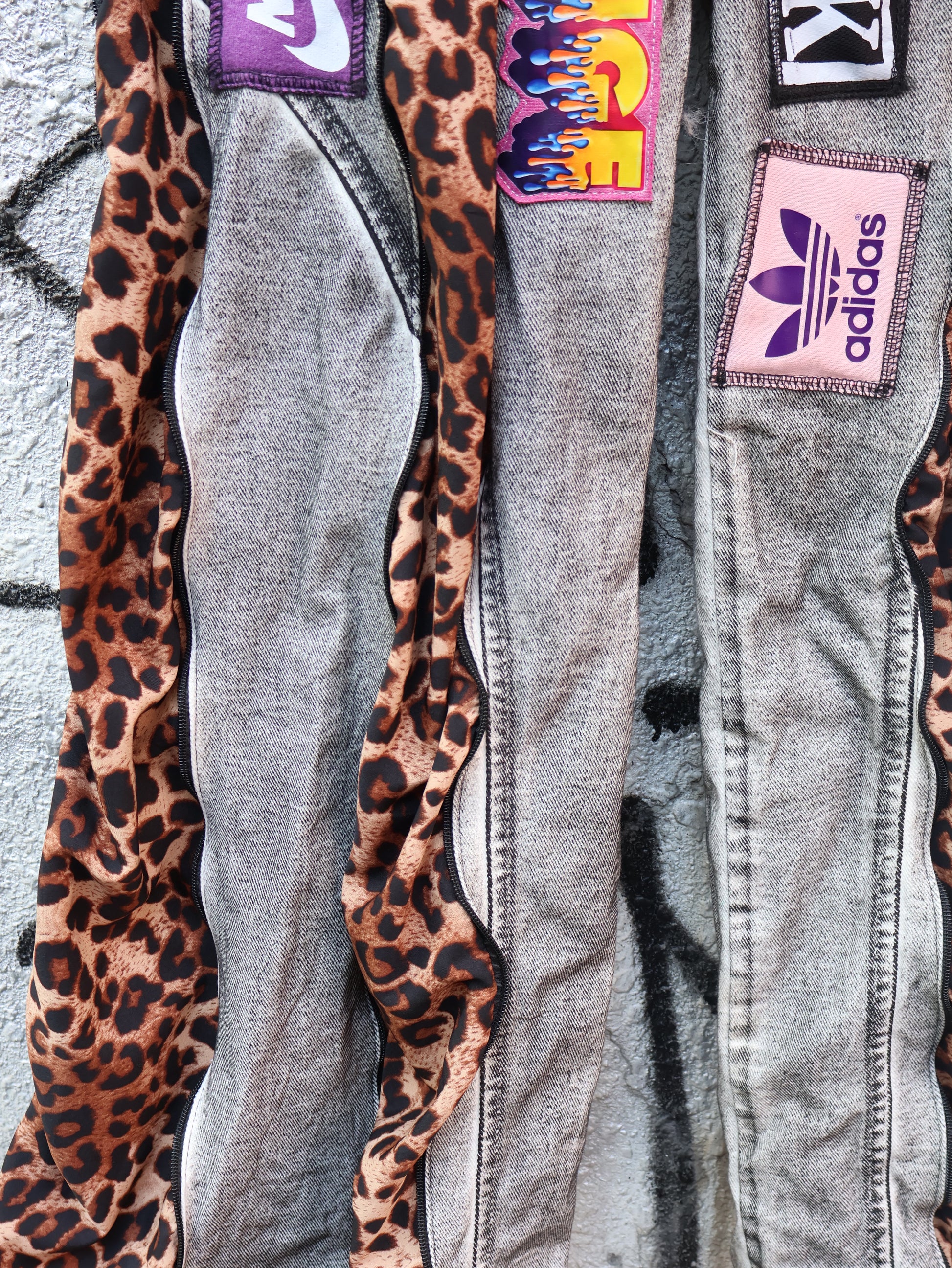 古着のデニムとジャージでリメイクされた1点もののパンツ。