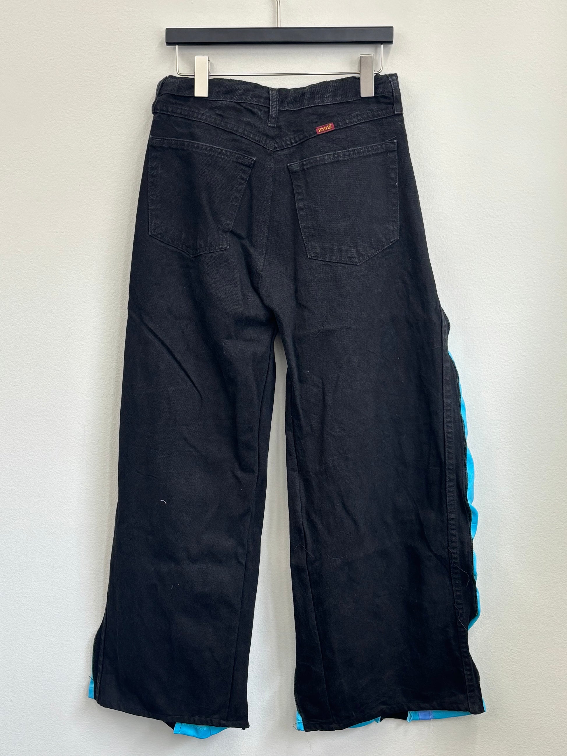 古着のデニムとジャージでリメイクされた1点もののパンツ。