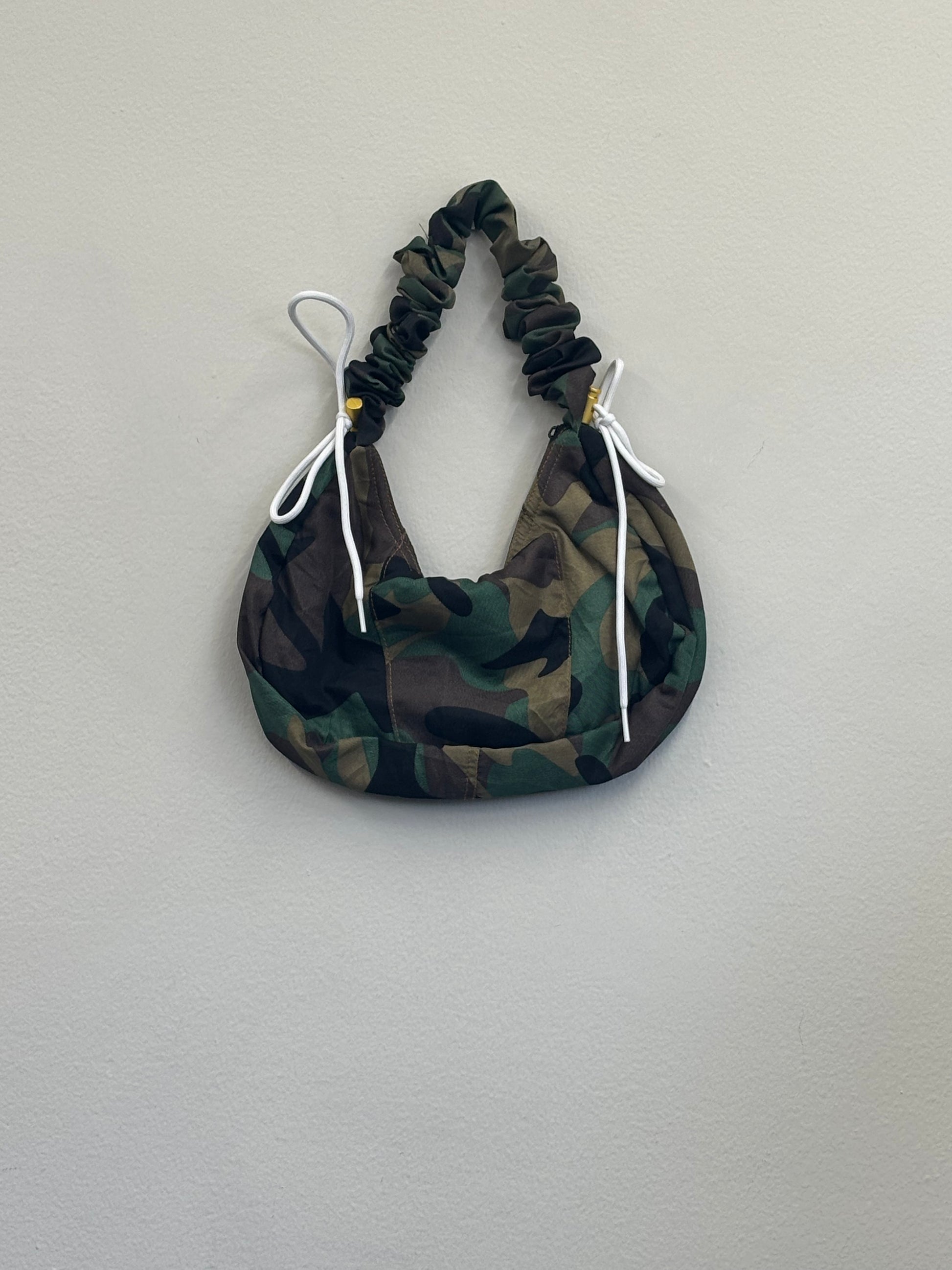 リメイクされた1点もののバッグ。季節を問わず使いやすいデザインになっております。