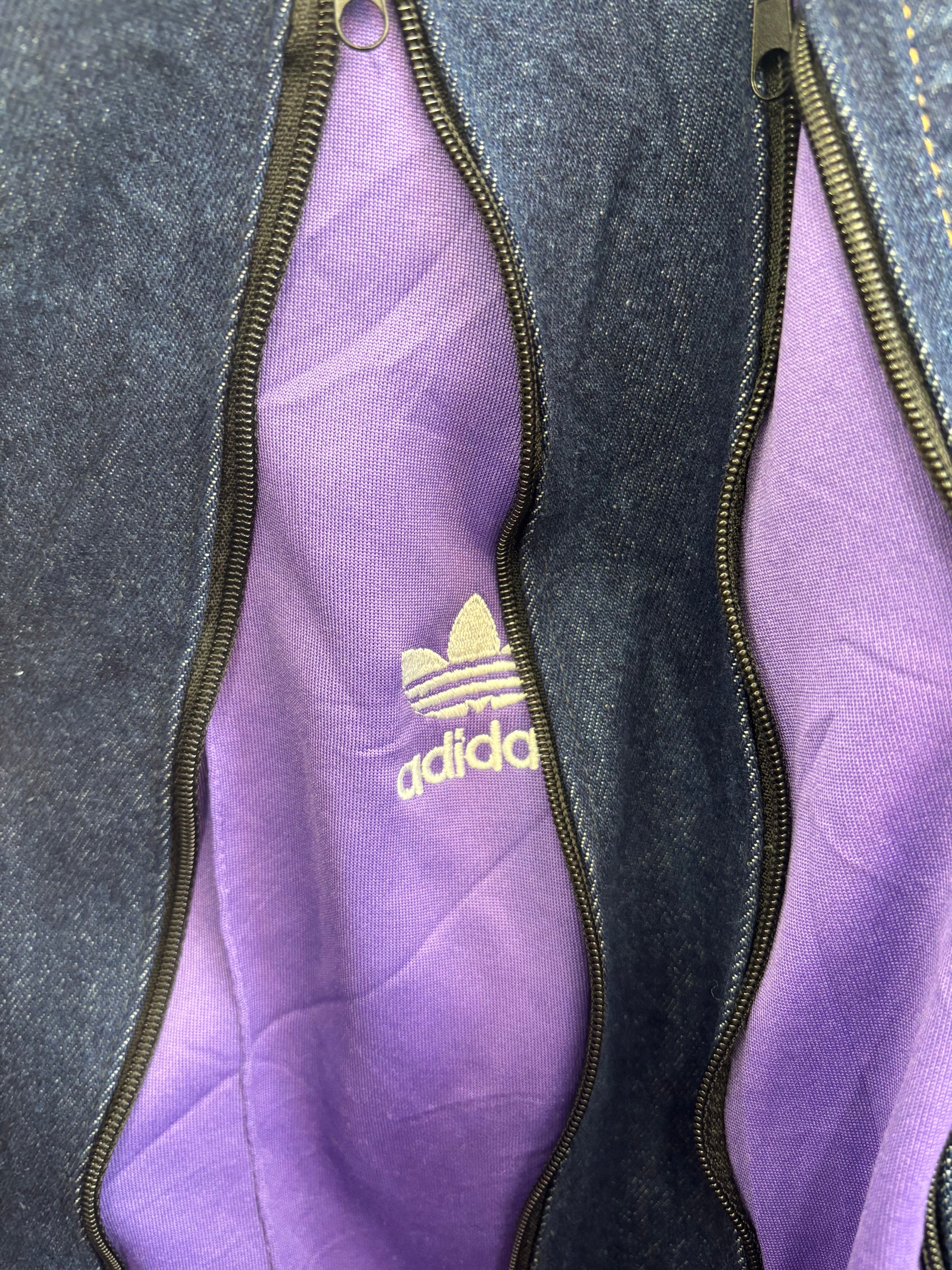 古着のデニムとジャージでリメイクされた1点もののパンツ。