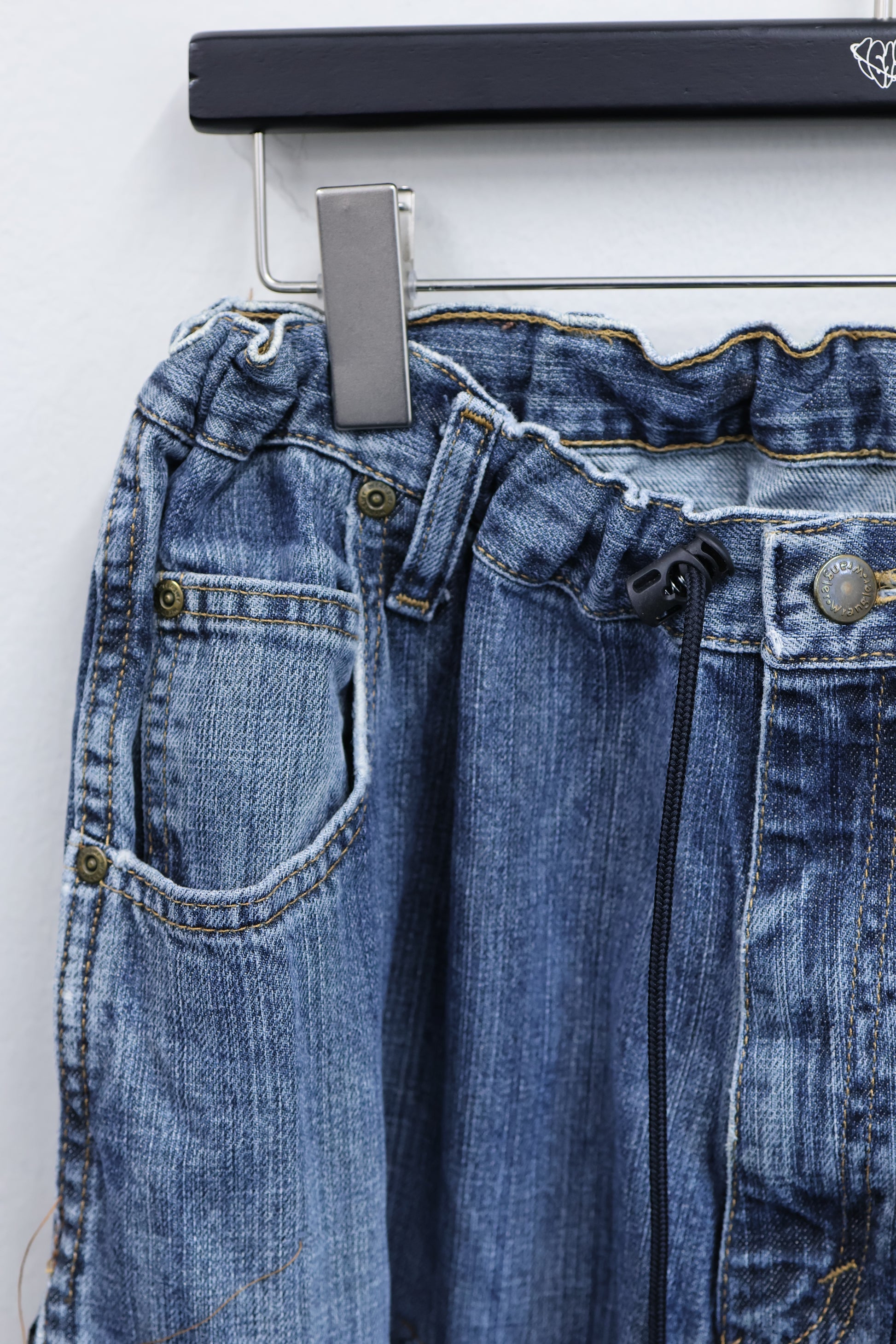 古着のデニムとジャージでリメイクされた1点もののパンツ。