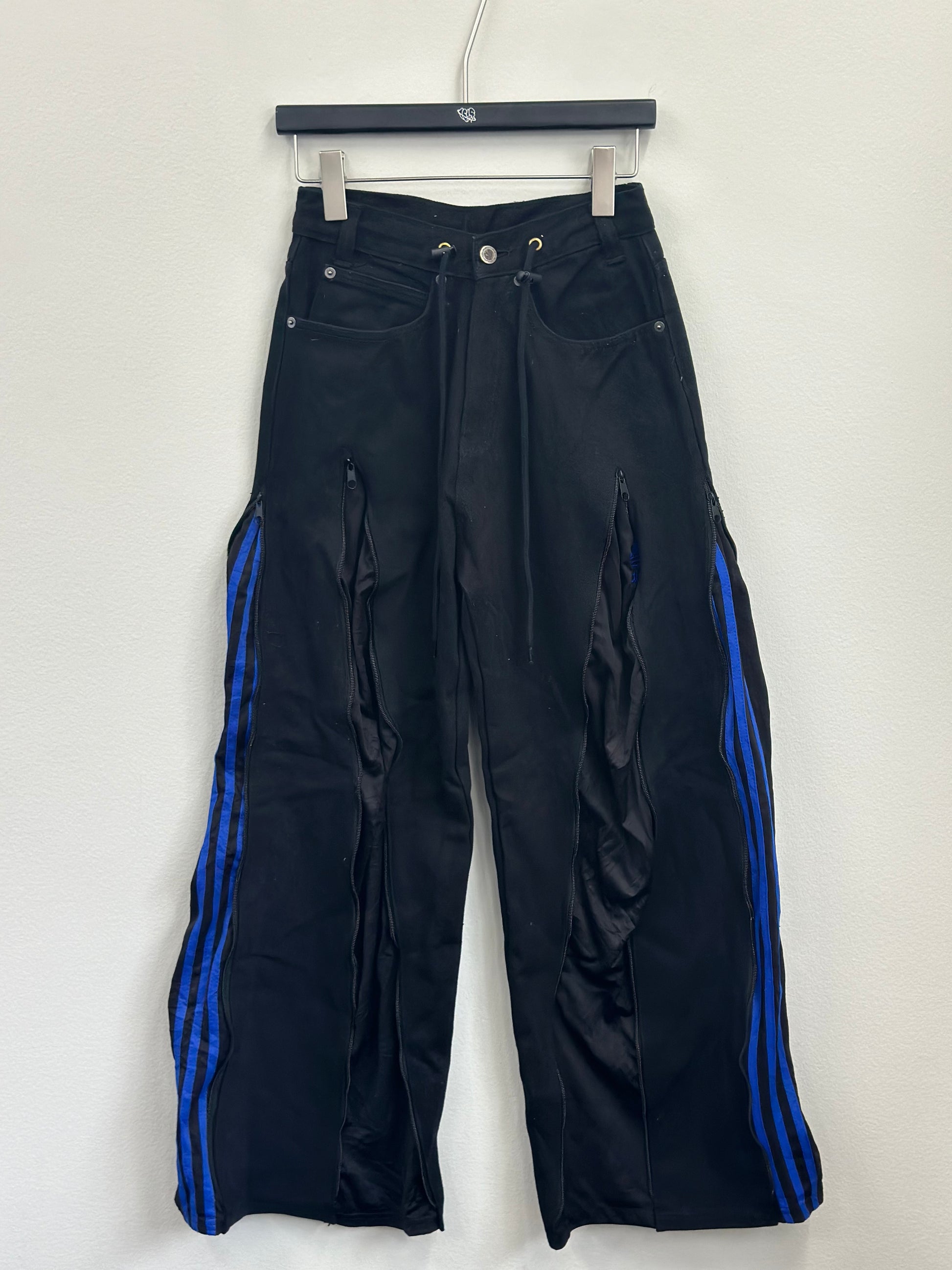 古着のデニムとジャージでリメイクされた1点もののパンツ。