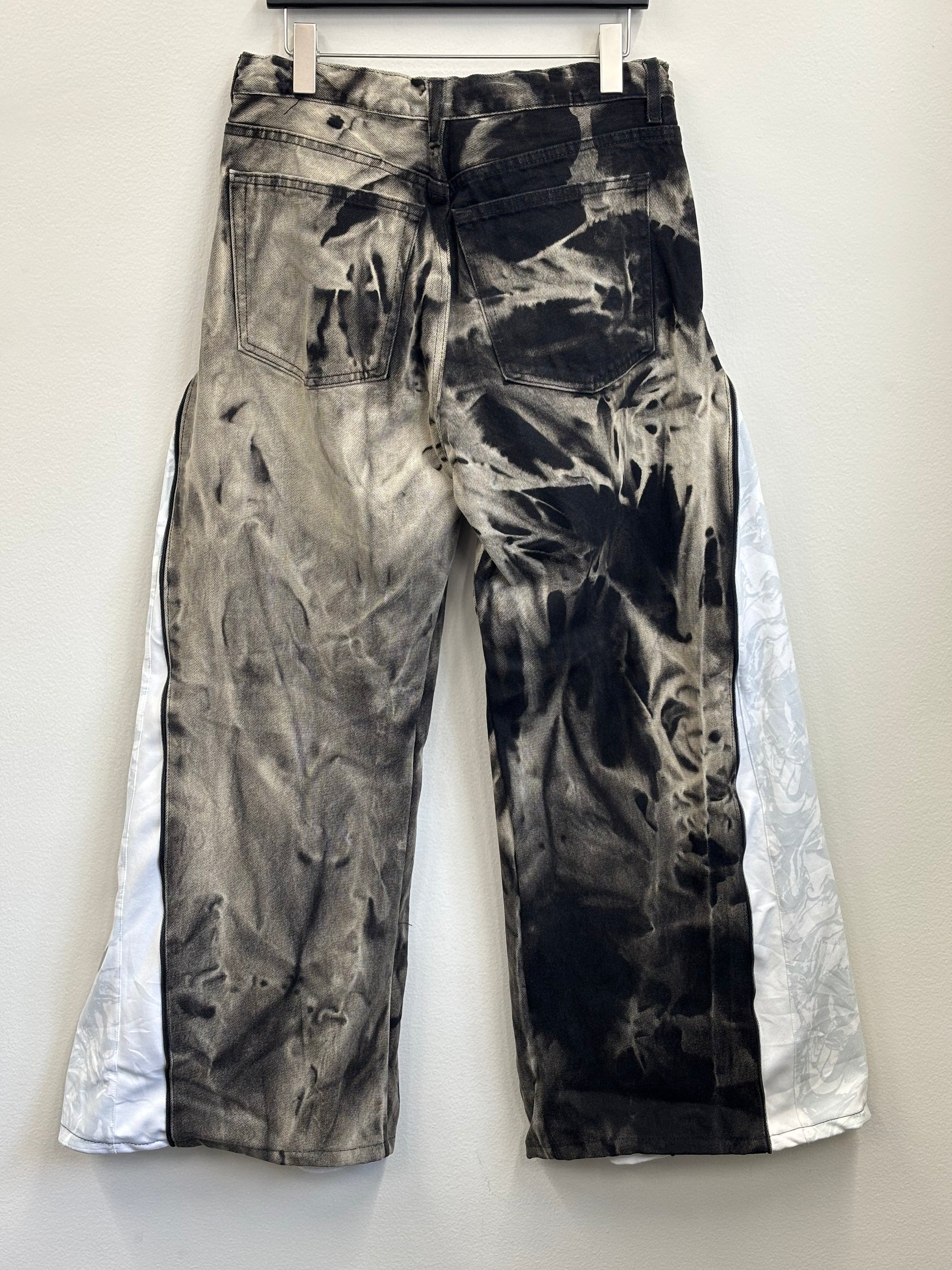 古着のデニムとジャージでリメイクされた1点もののパンツ。