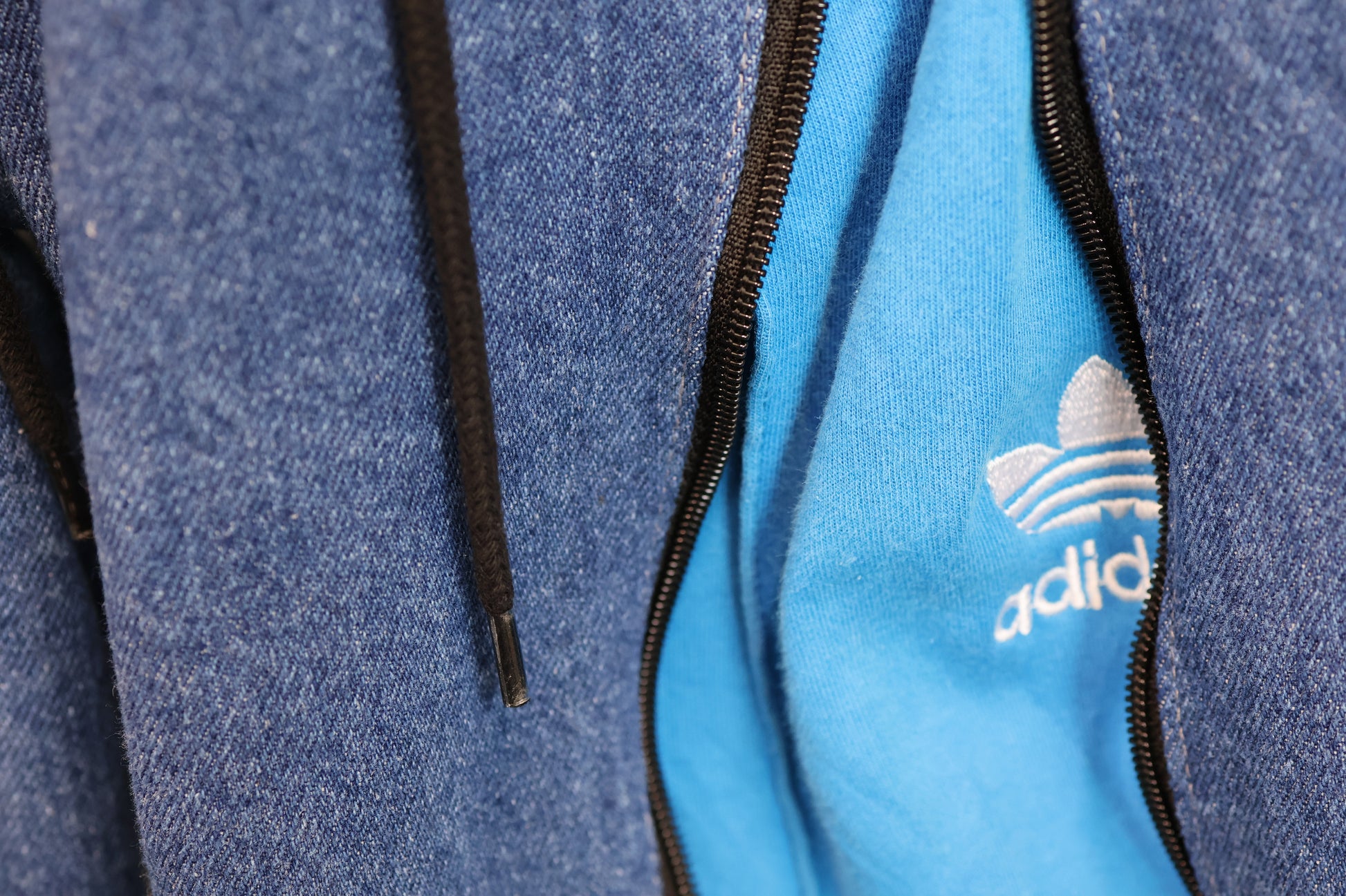 古着のデニムとジャージでリメイクされた1点もののパンツ。