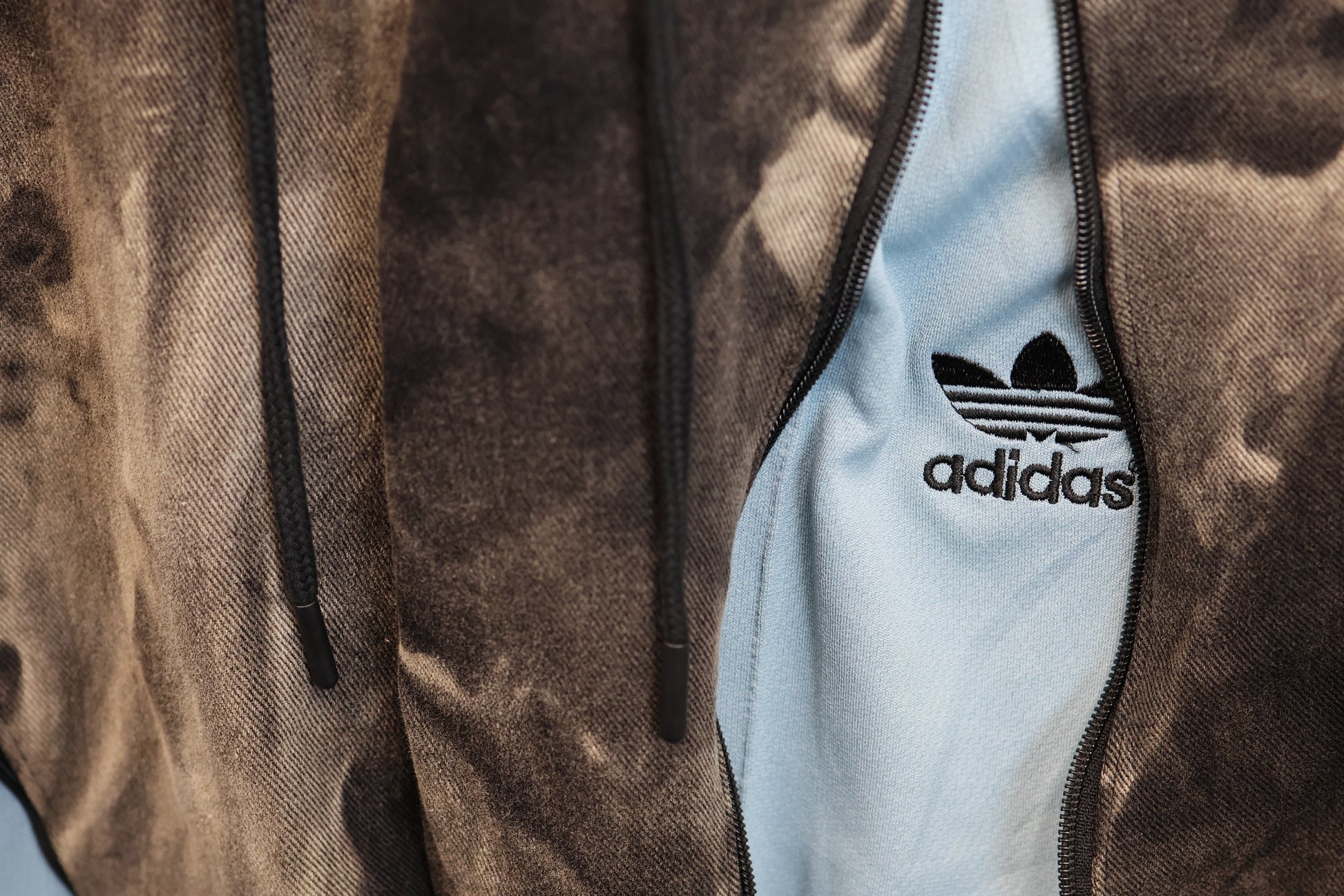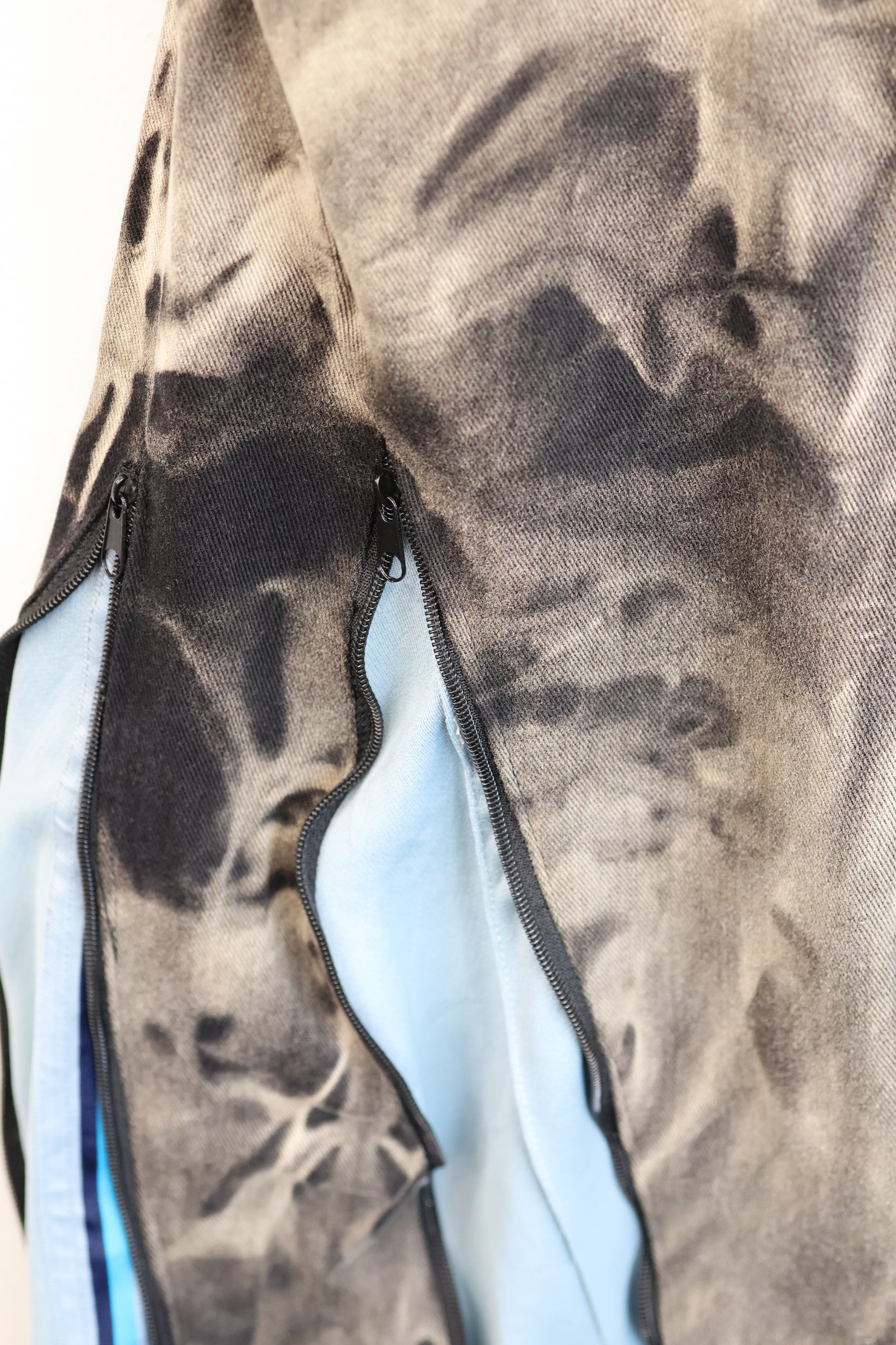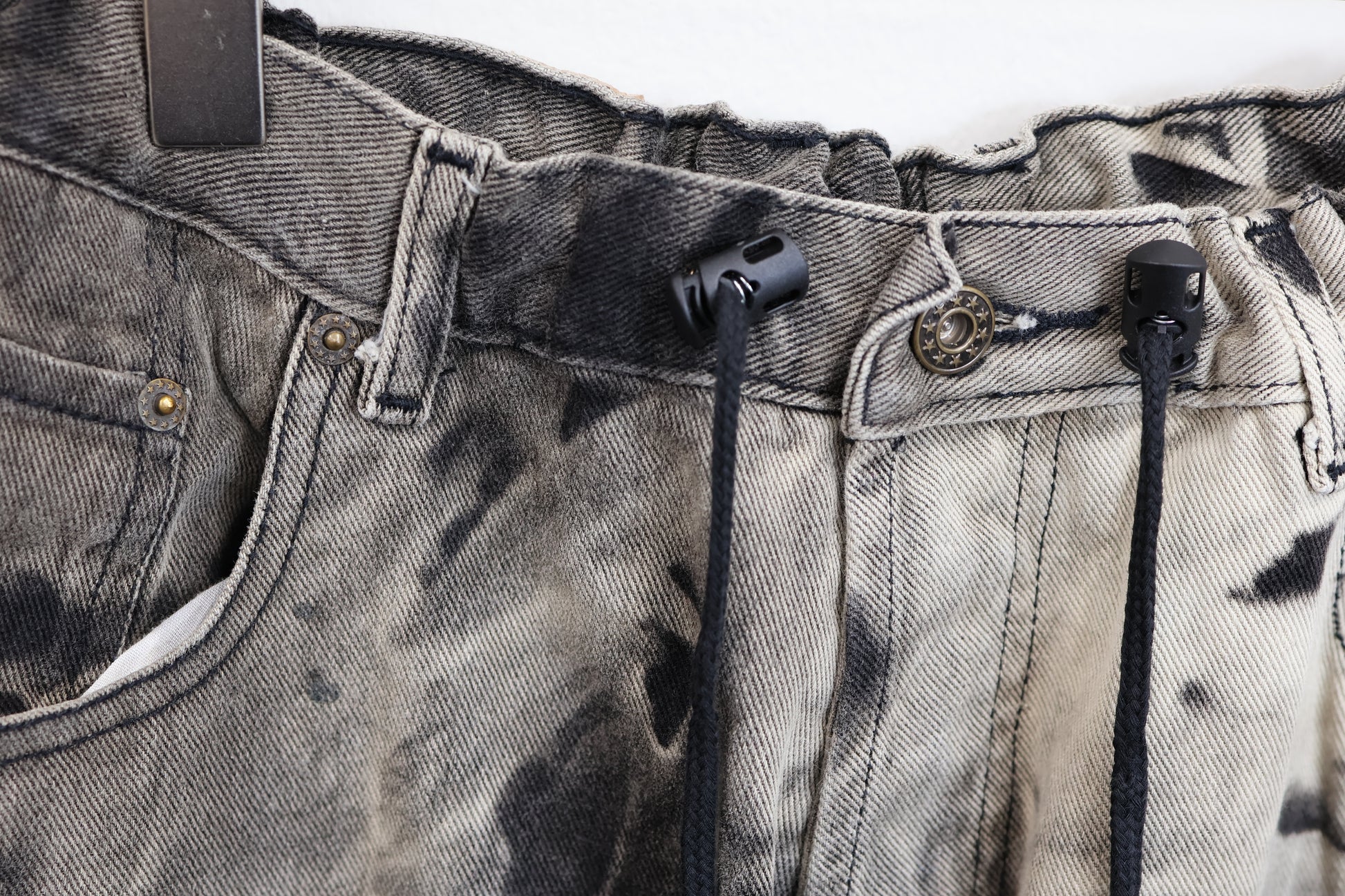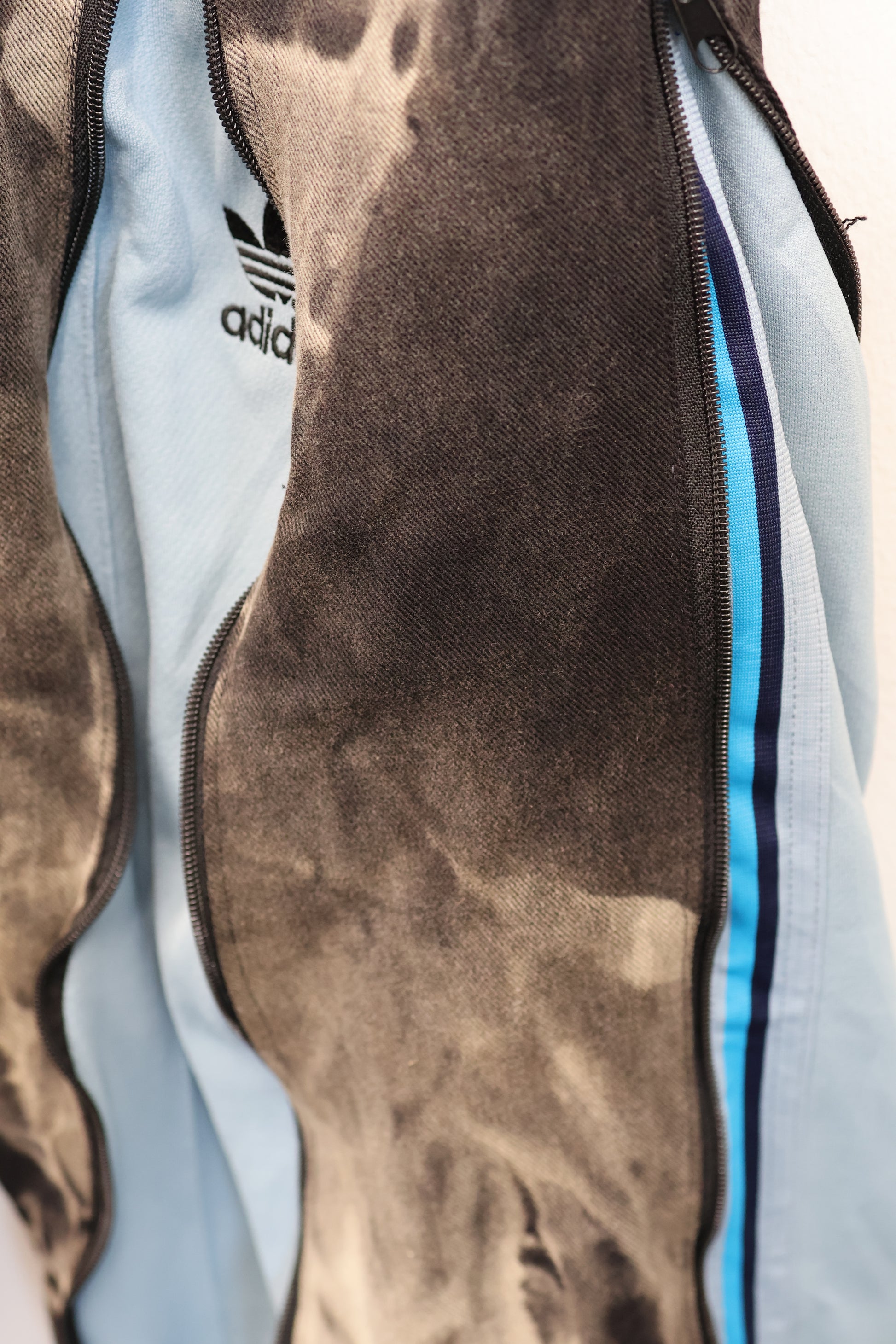 古着のデニムとジャージでリメイクされた1点もののパンツ。