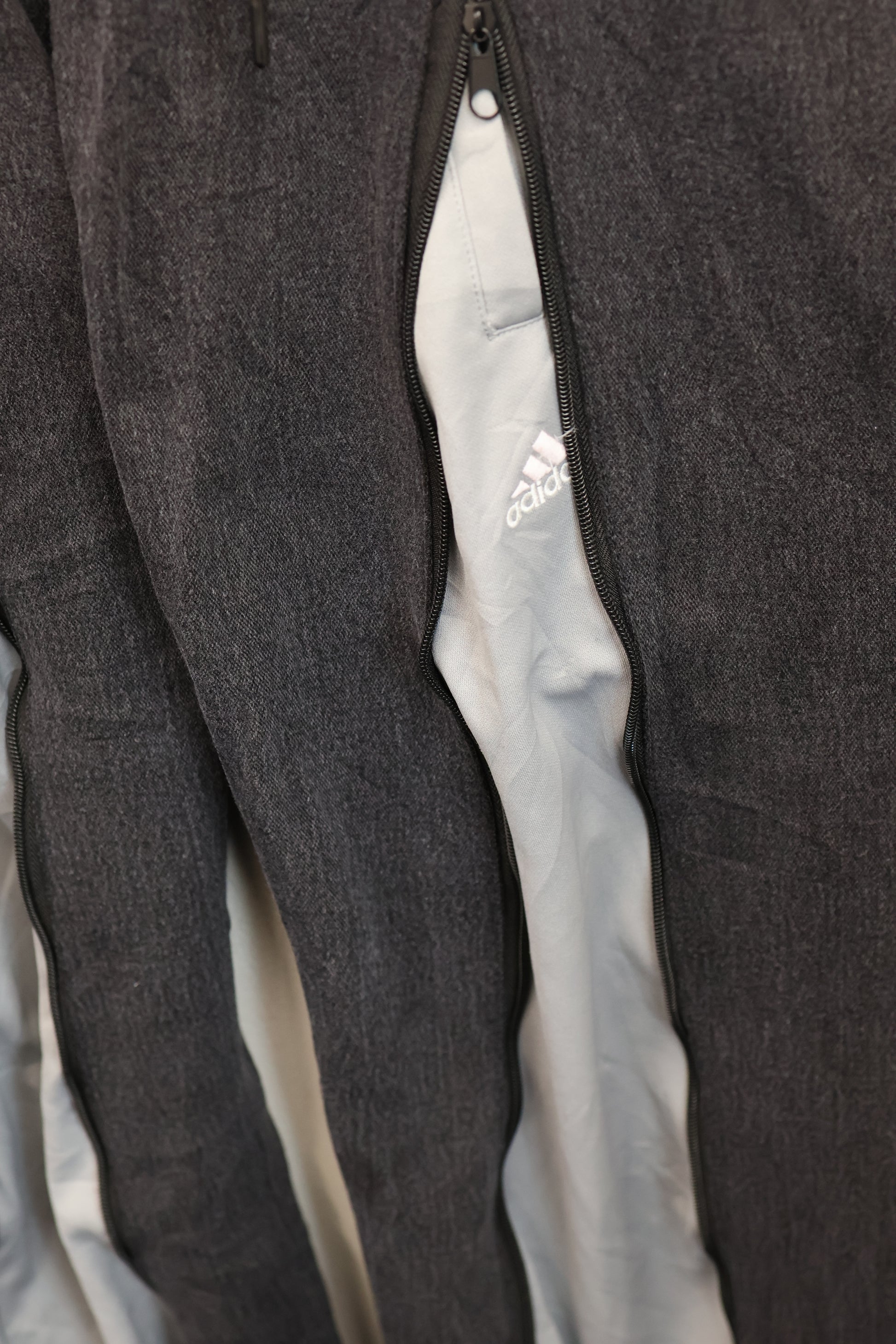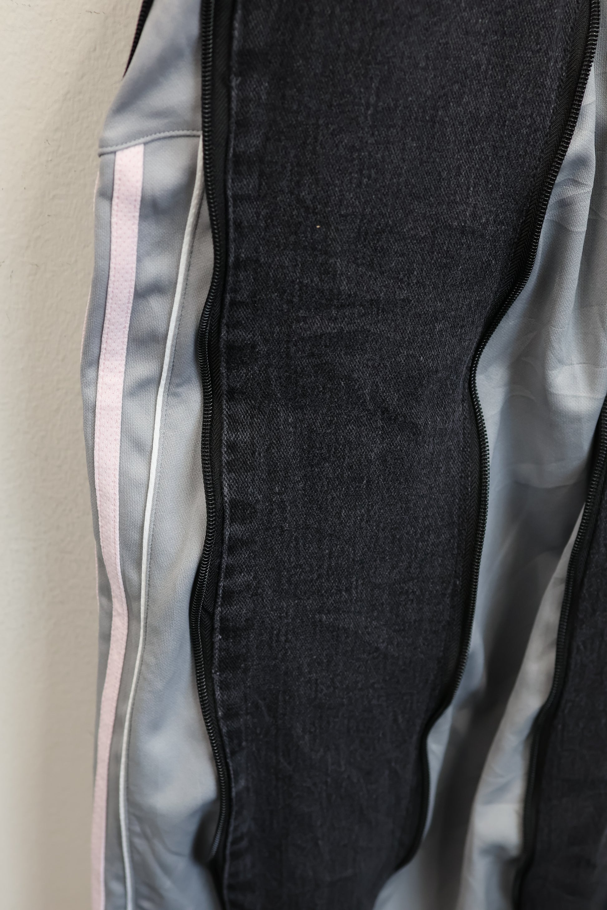古着のデニムとジャージでリメイクされた1点もののパンツ。