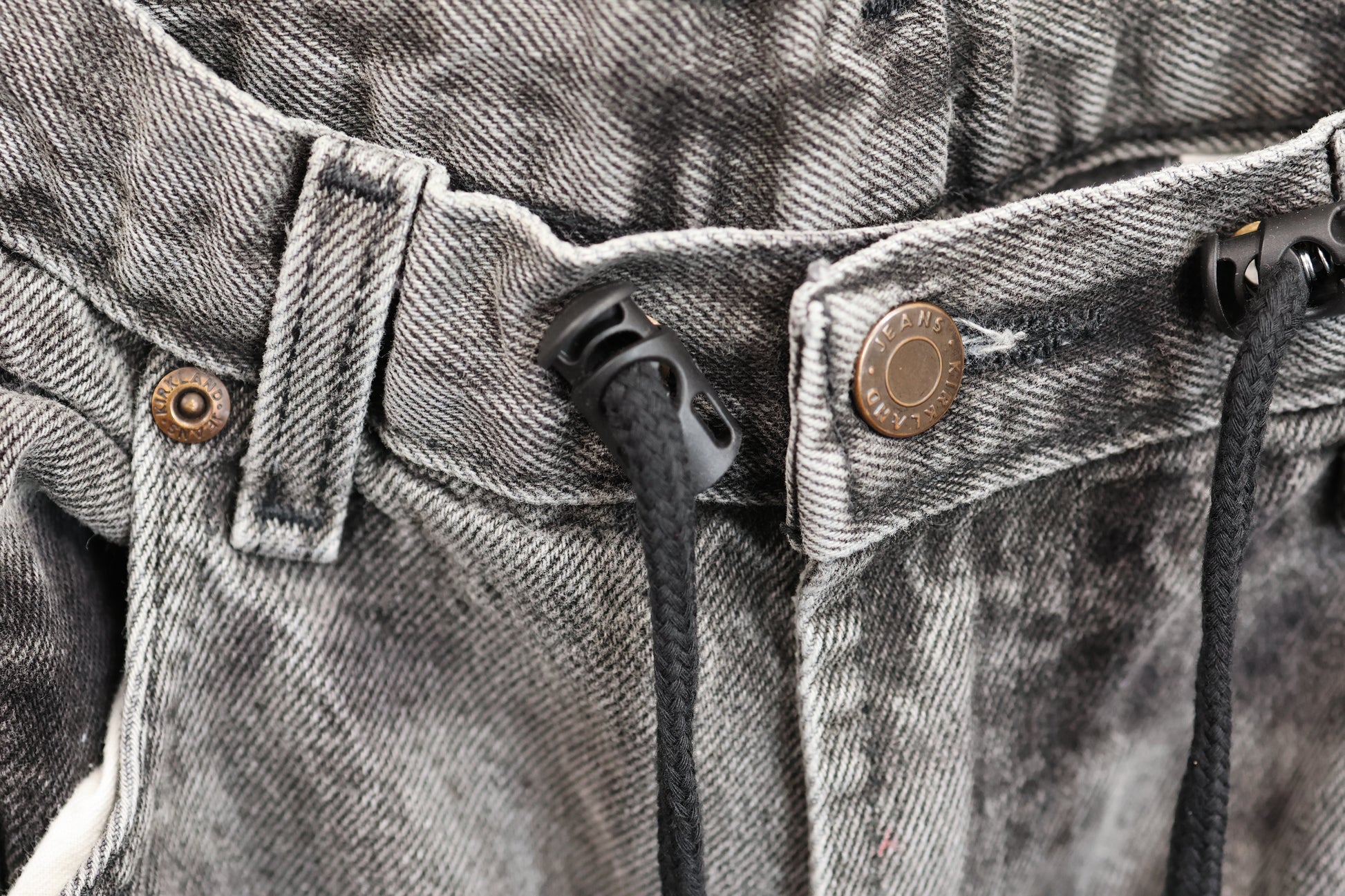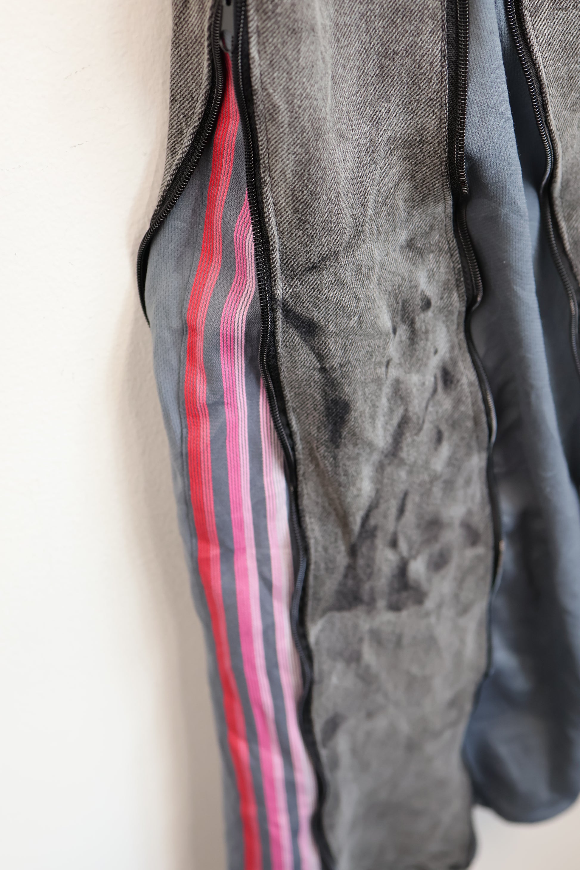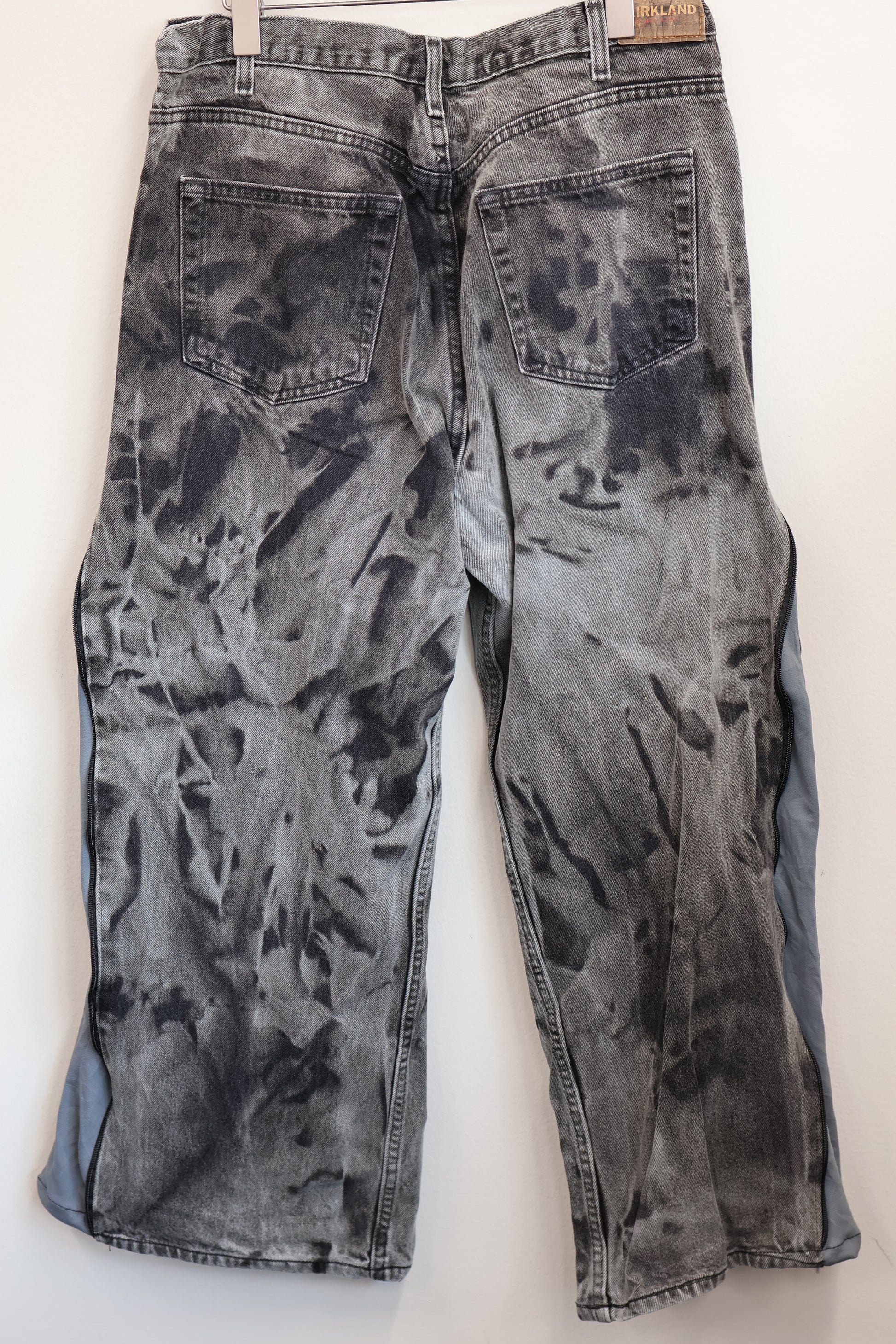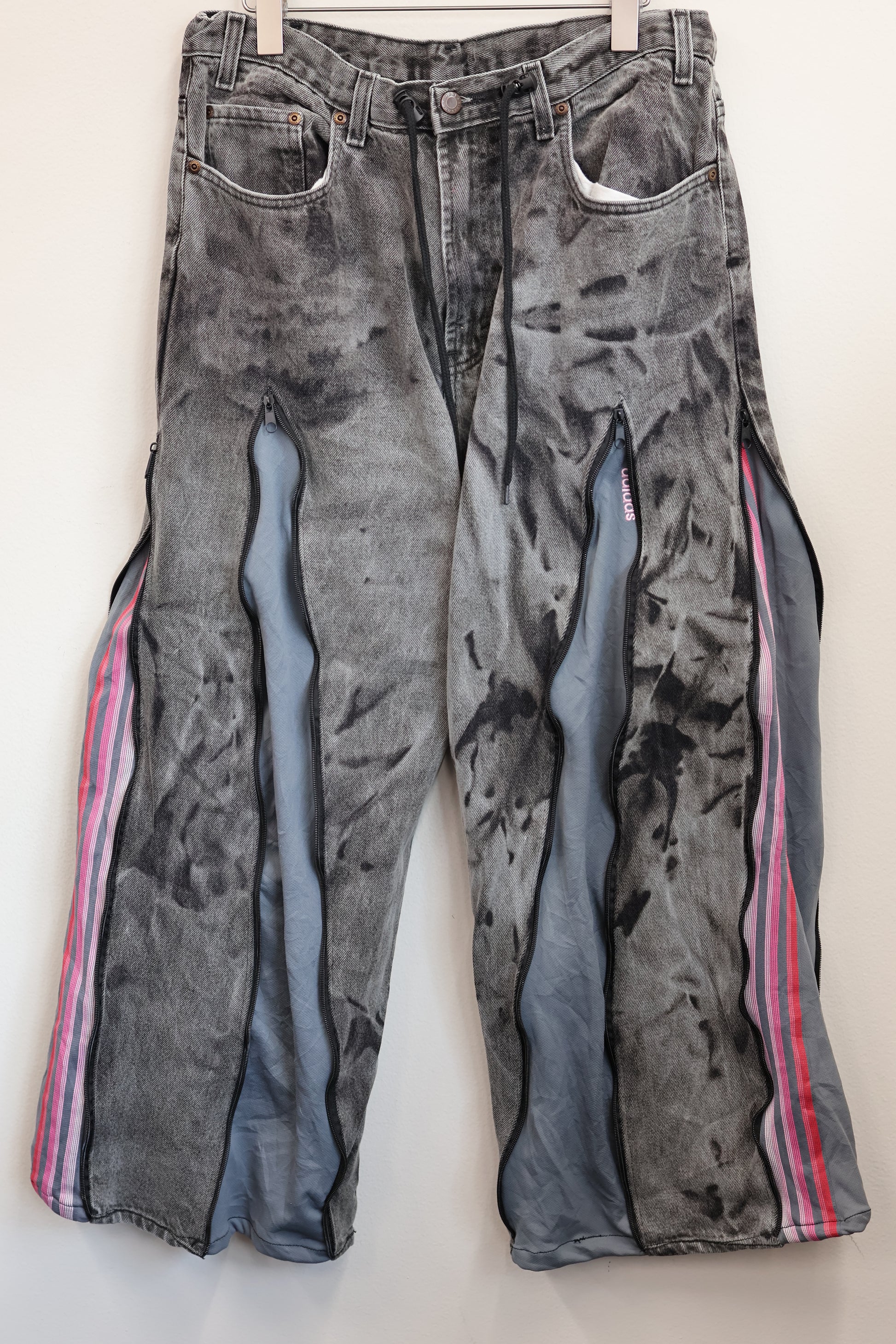 古着のデニムとジャージでリメイクされた1点もののパンツ。