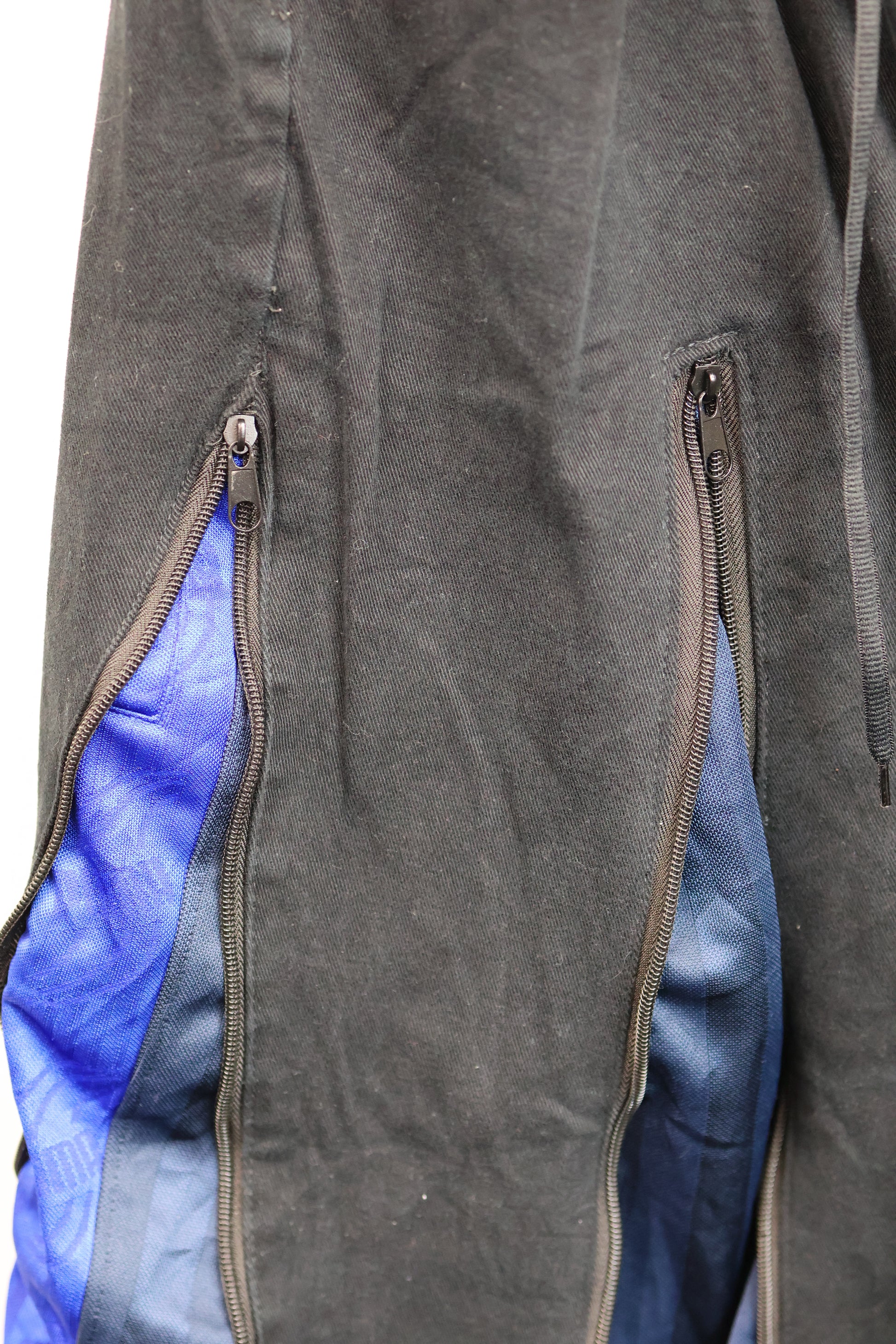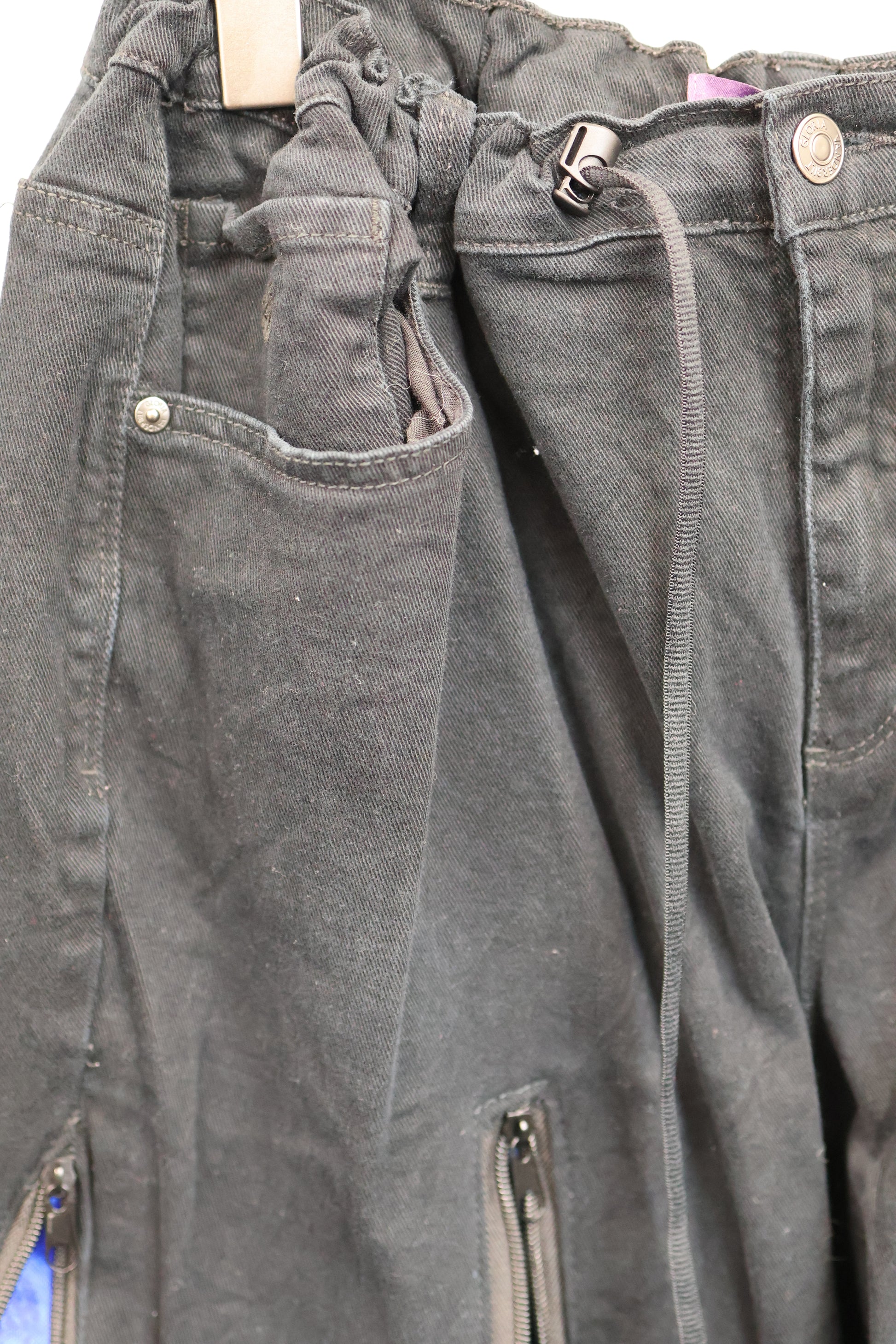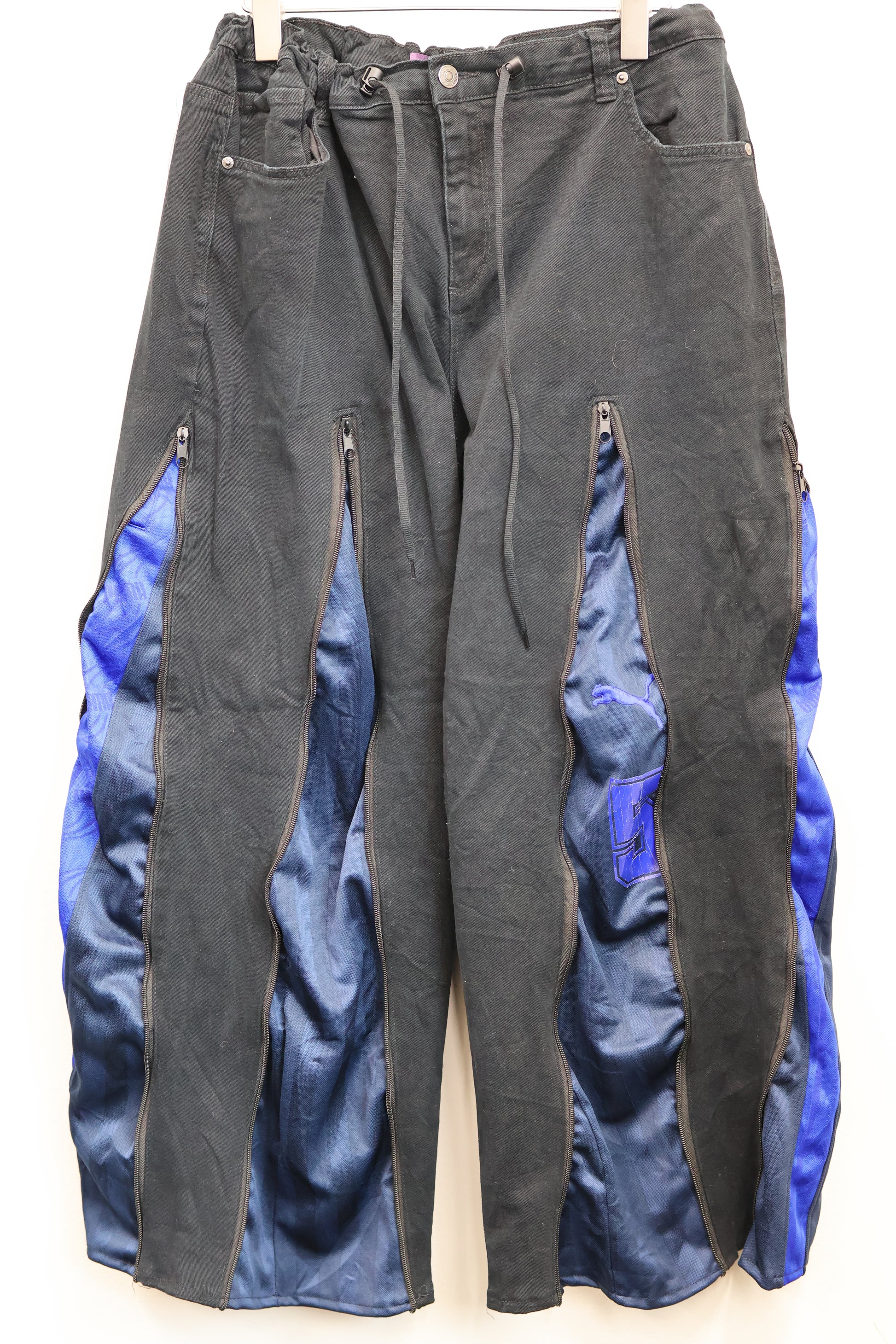 古着のデニムとジャージでリメイクされた1点もののパンツ。