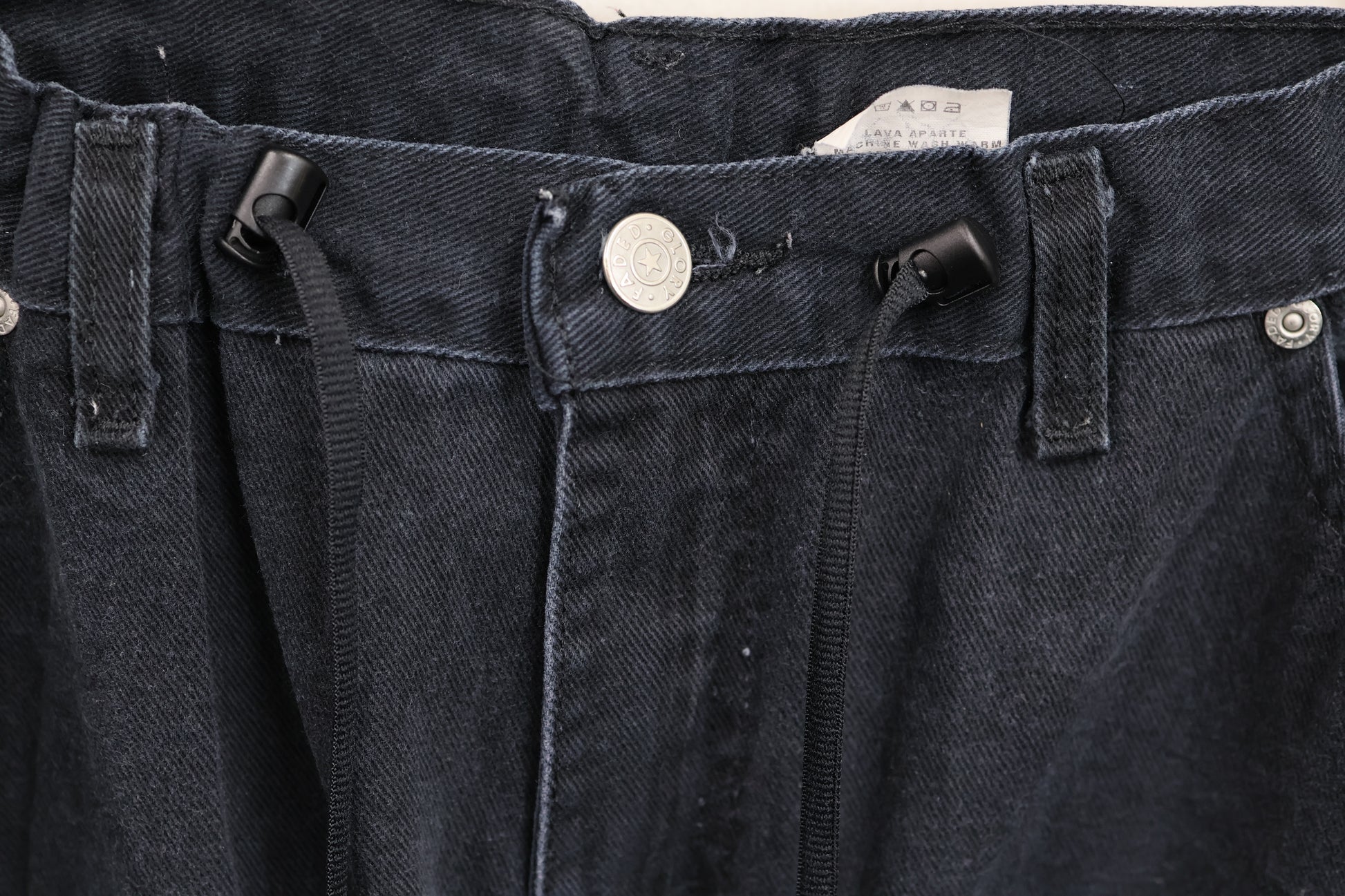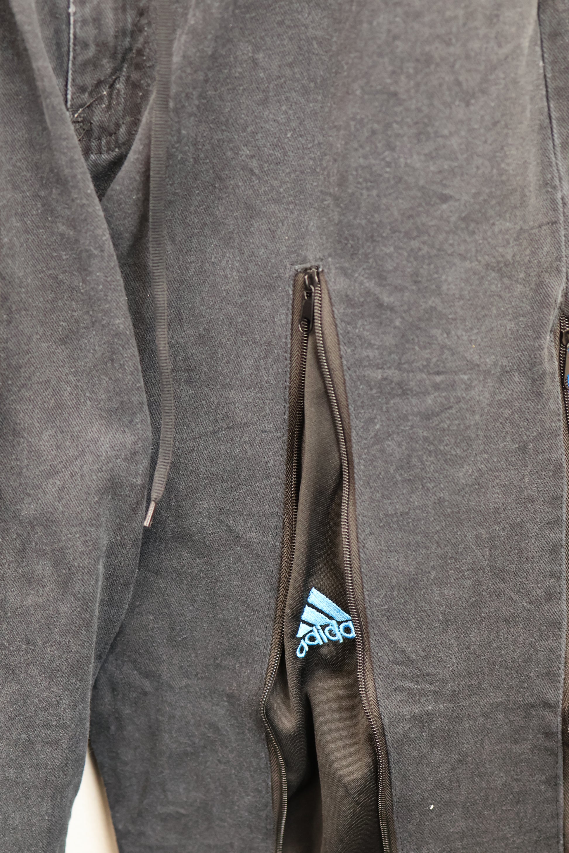 古着のデニムとジャージでリメイクされた1点もののパンツ。