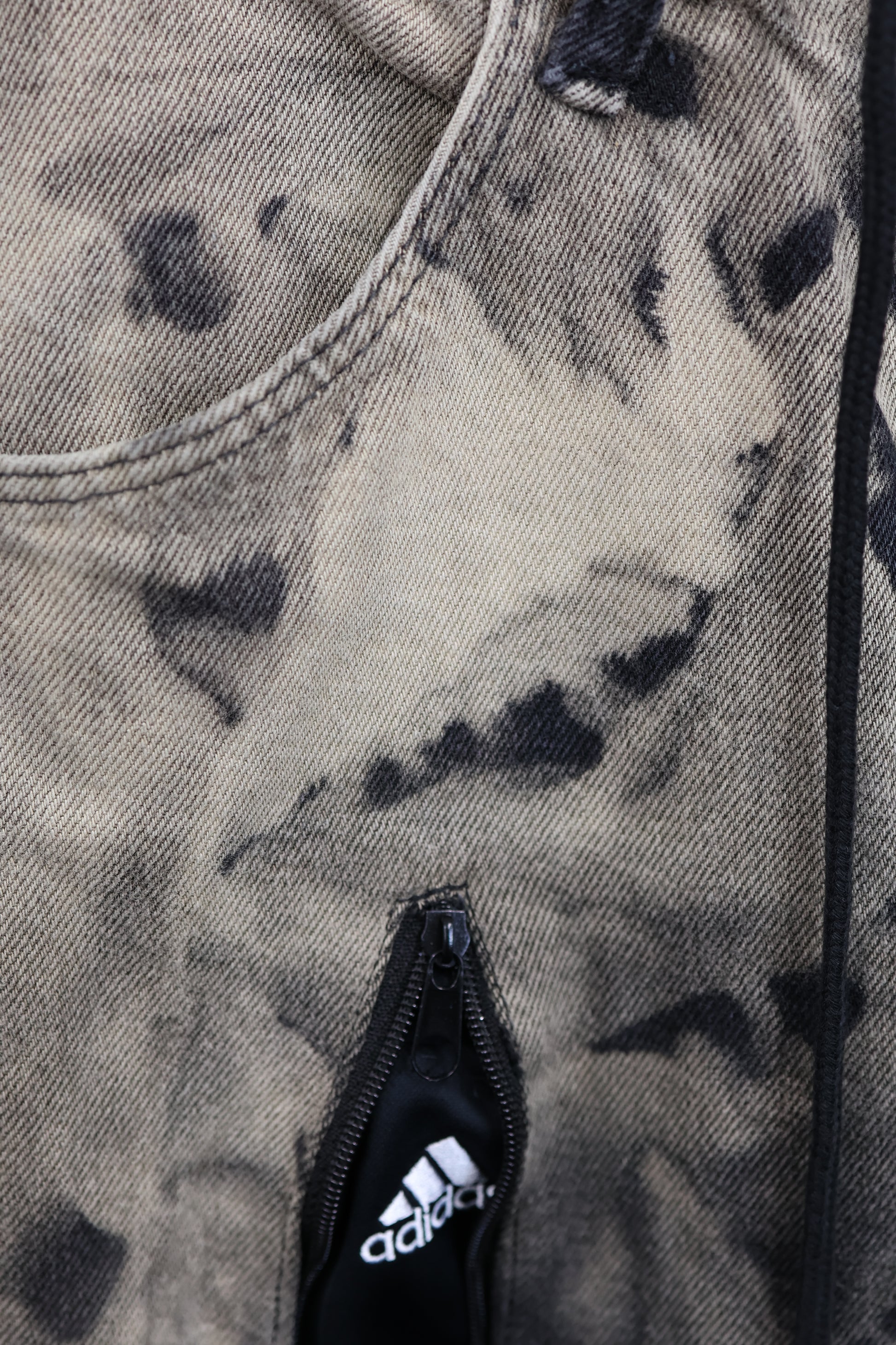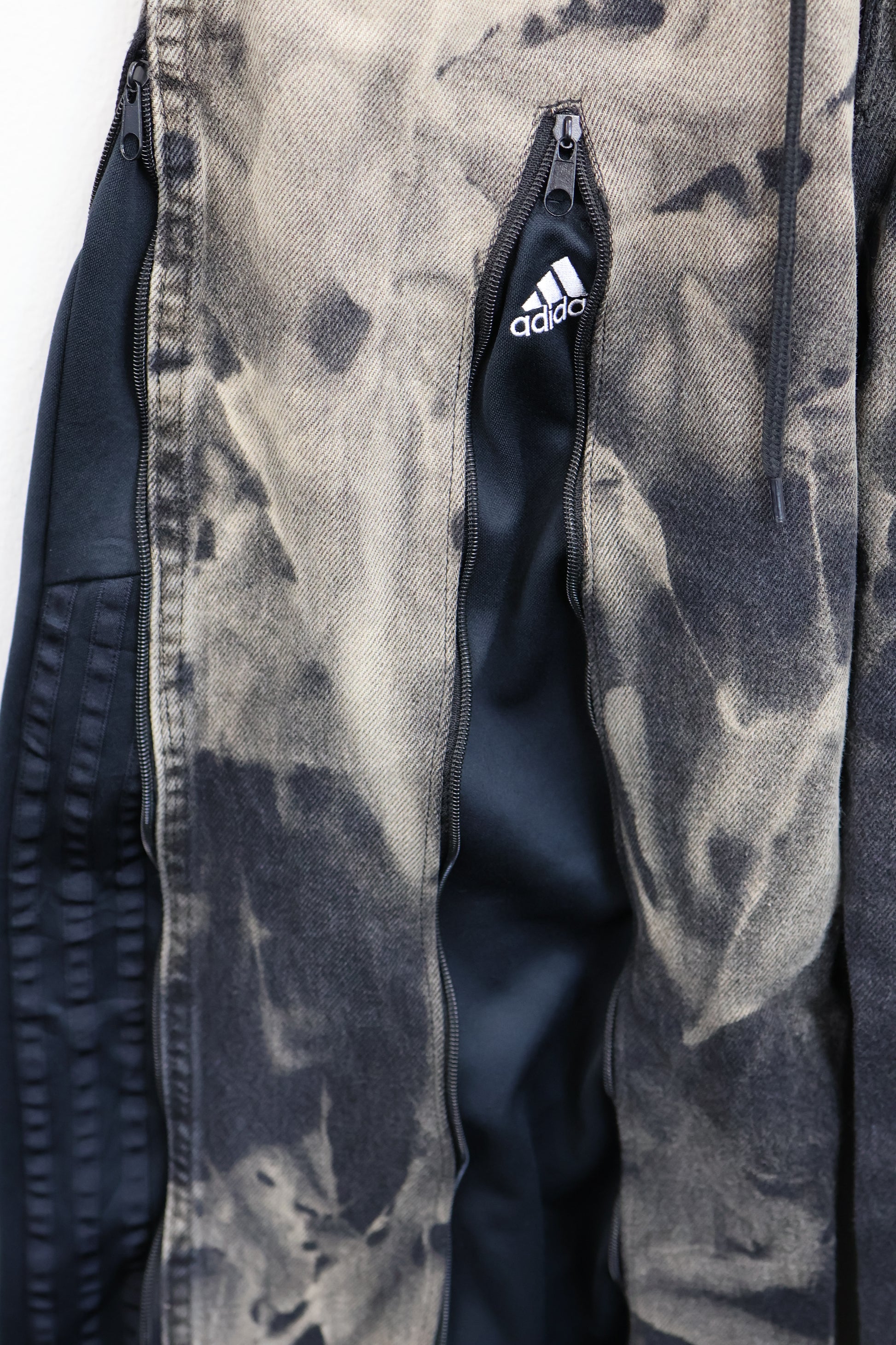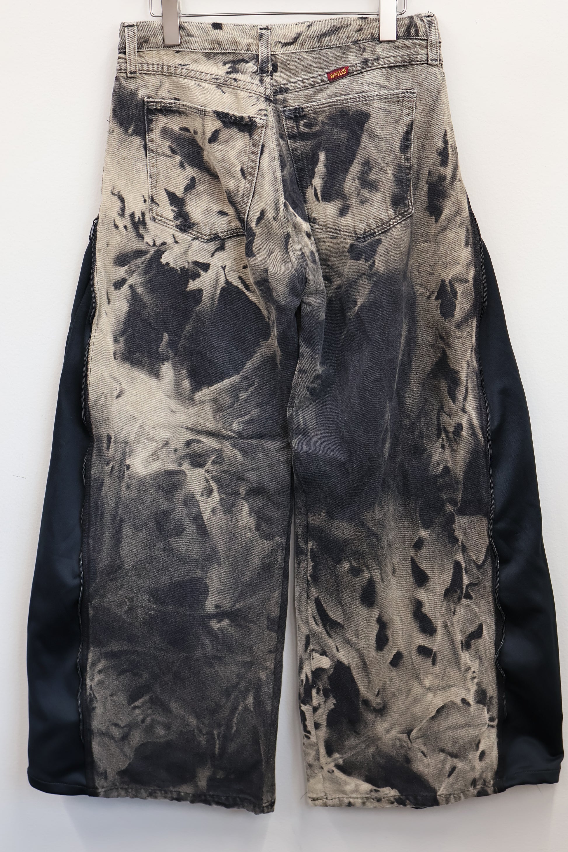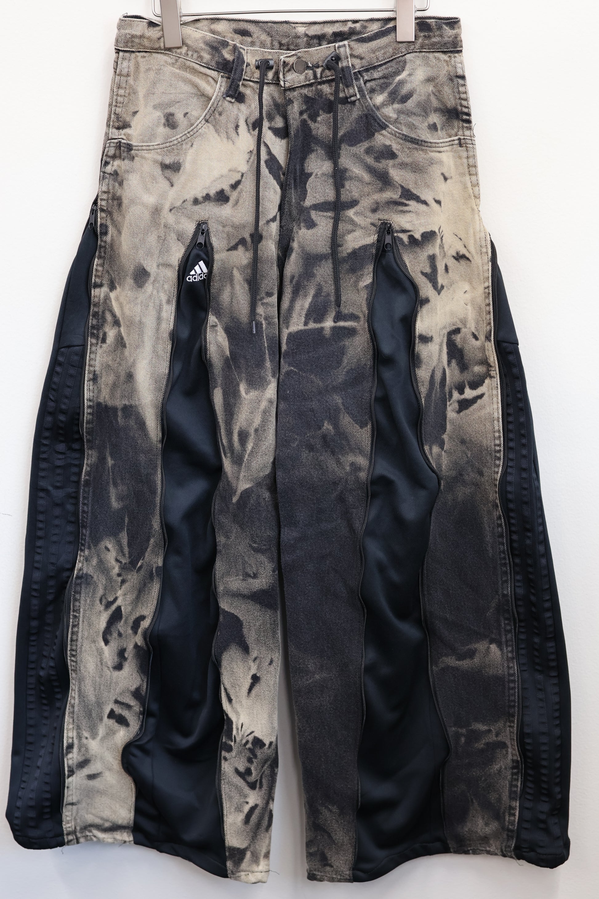 古着のデニムとジャージでリメイクされた1点もののパンツ。