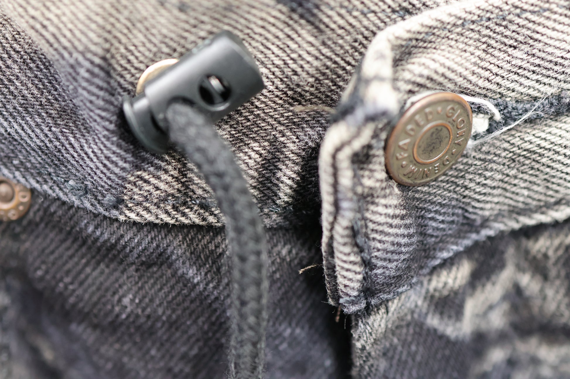 古着のデニムとジャージでリメイクされた1点もののパンツ。