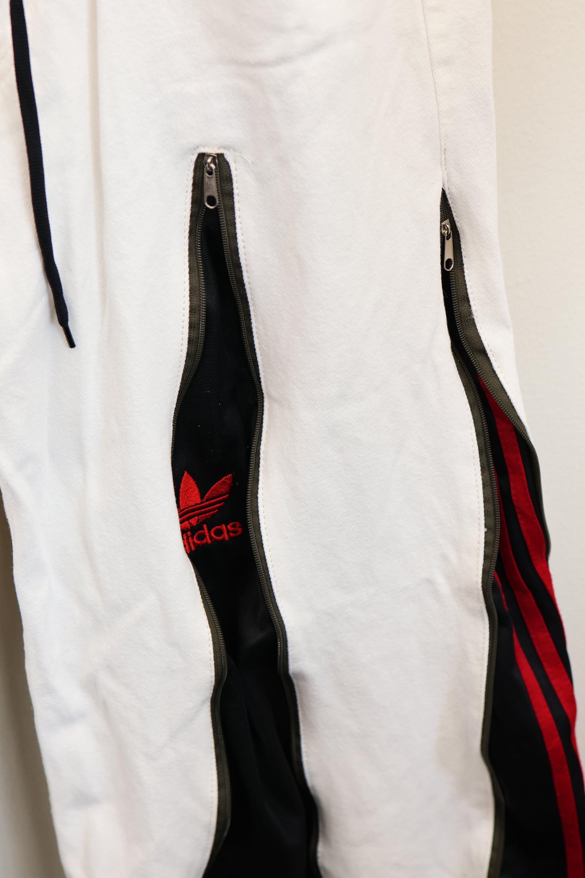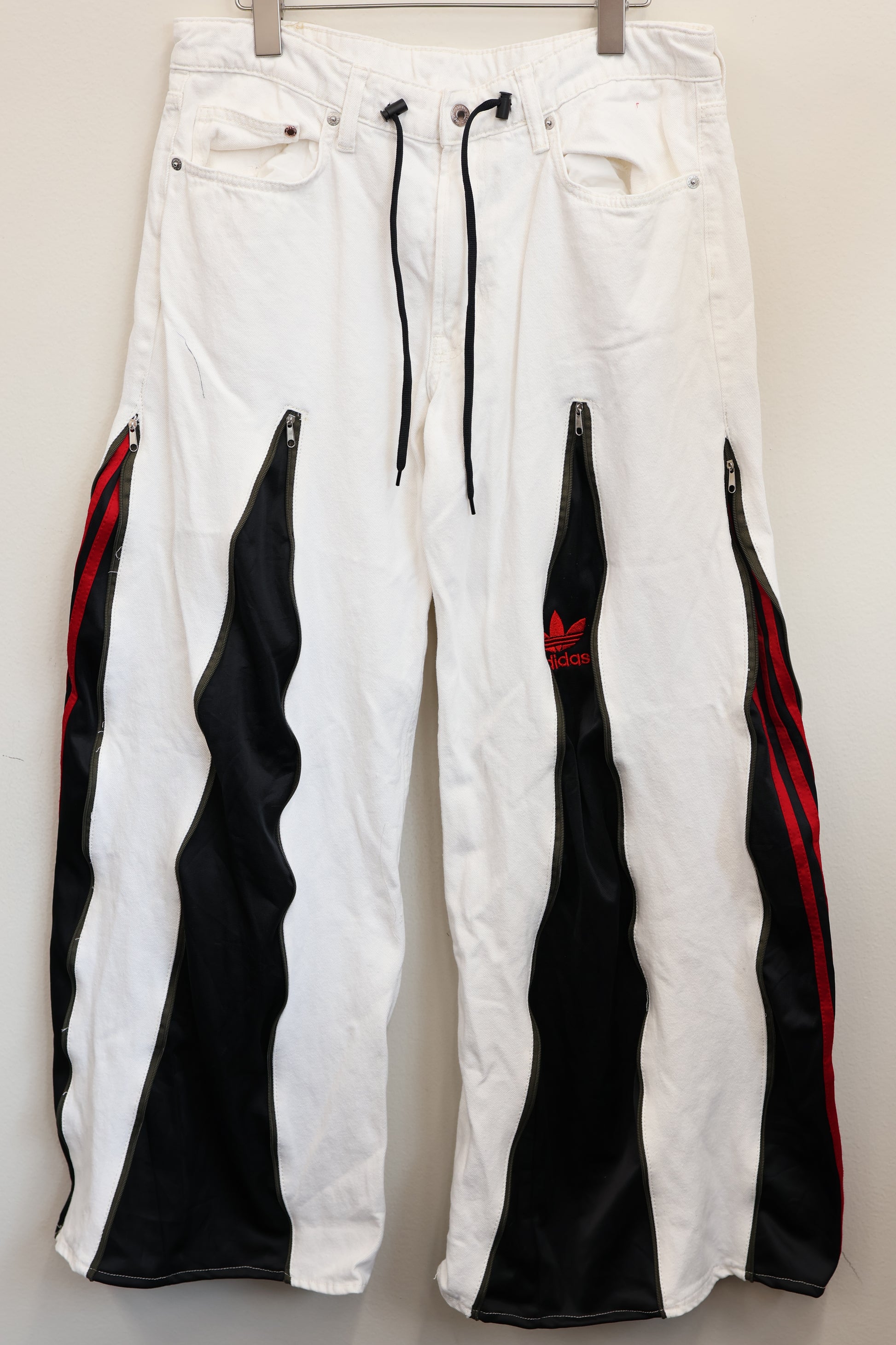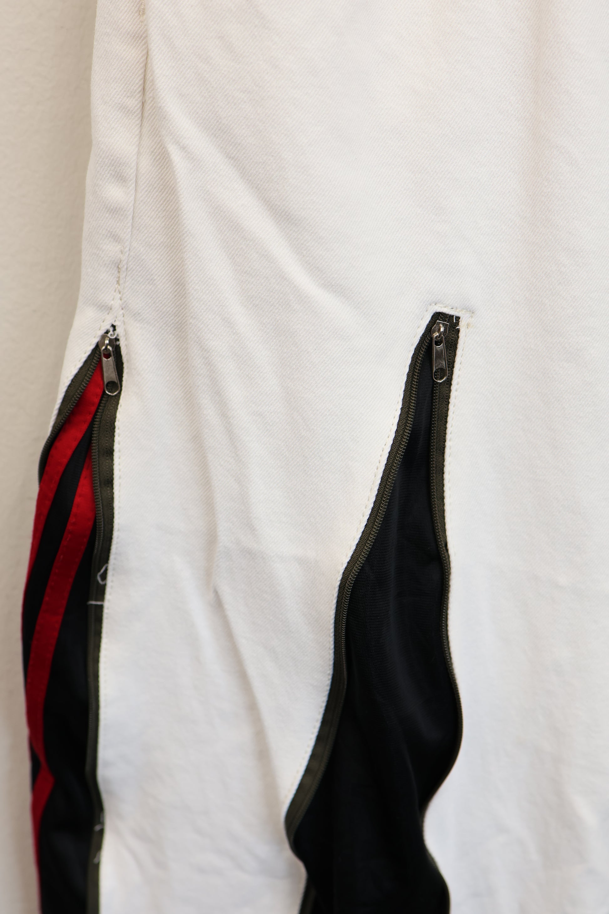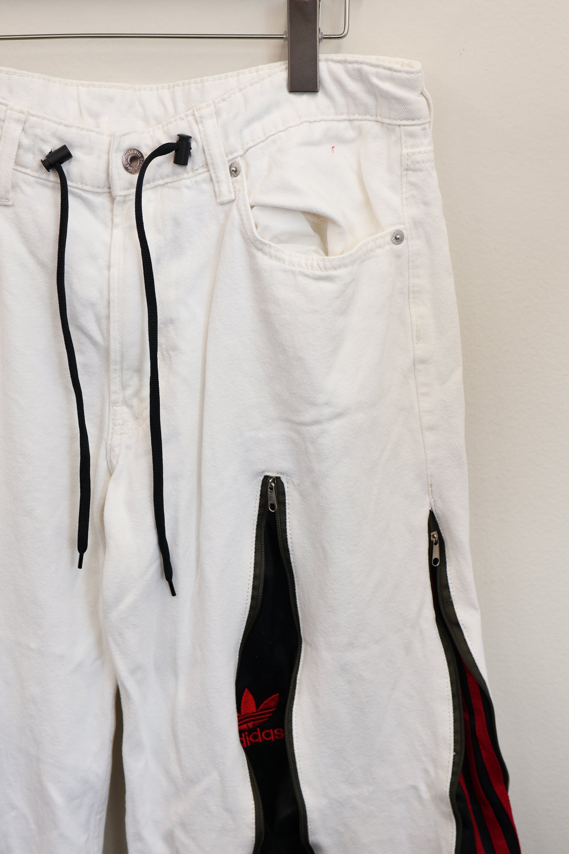 古着のデニムとジャージでリメイクされた1点もののパンツ。