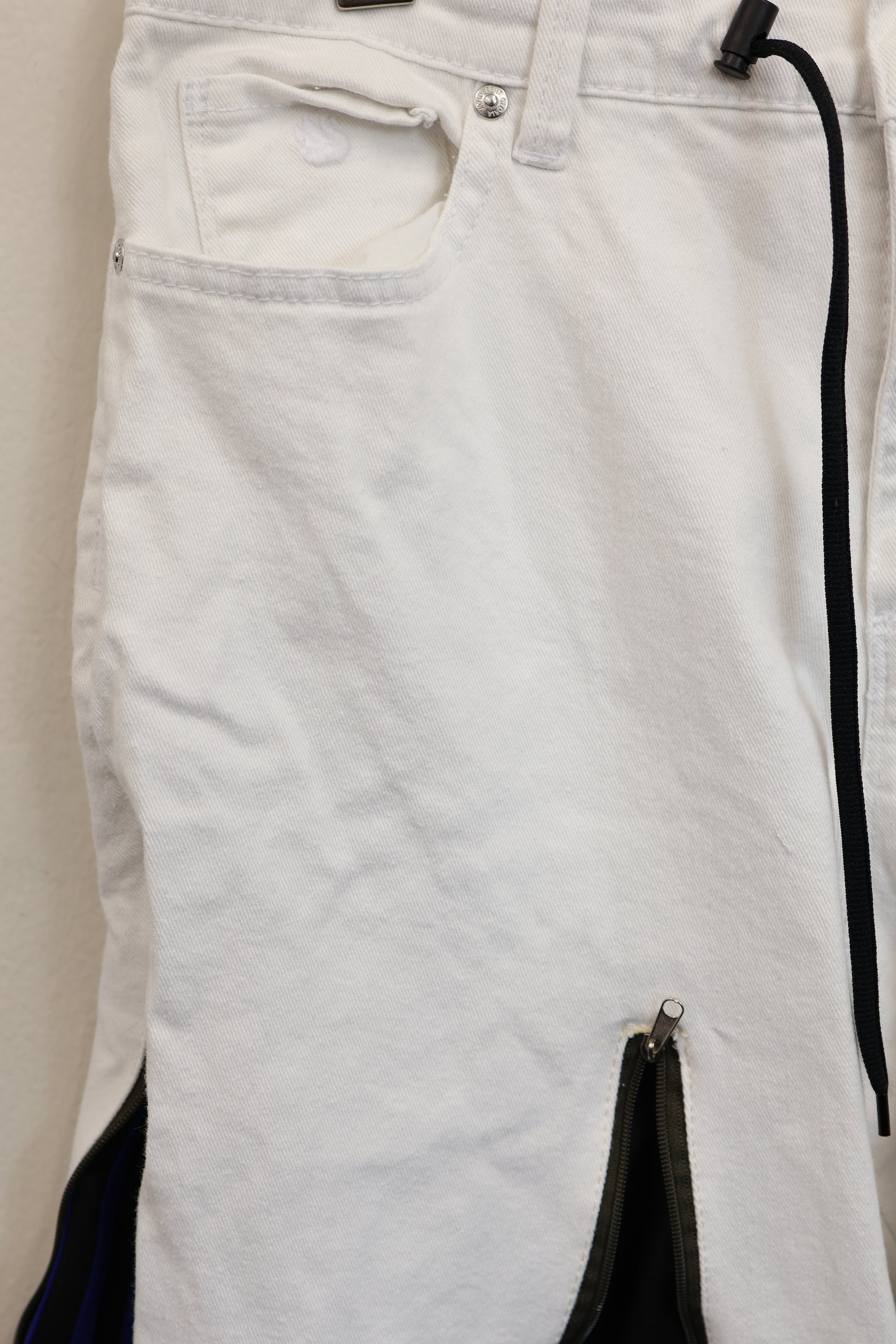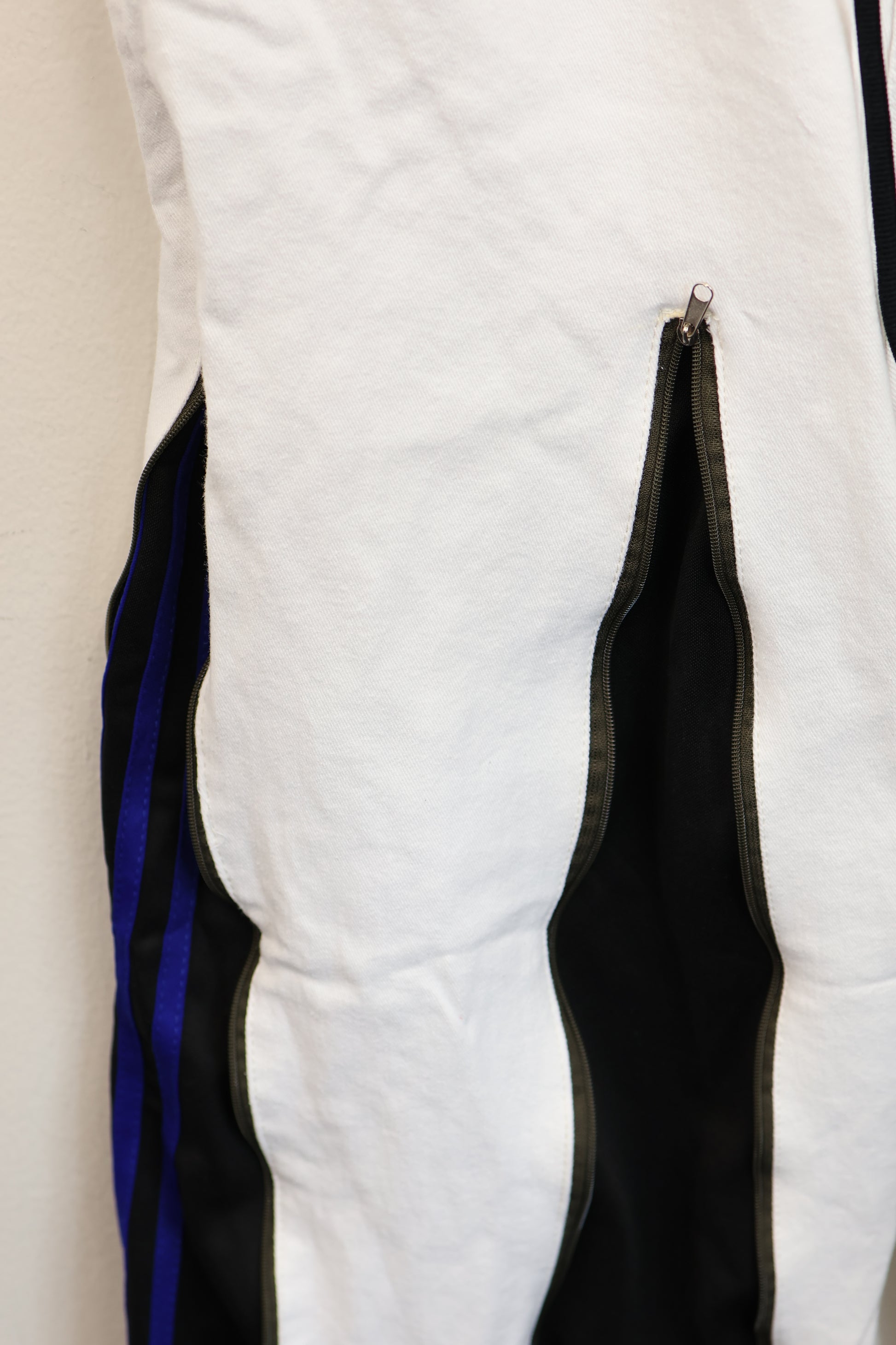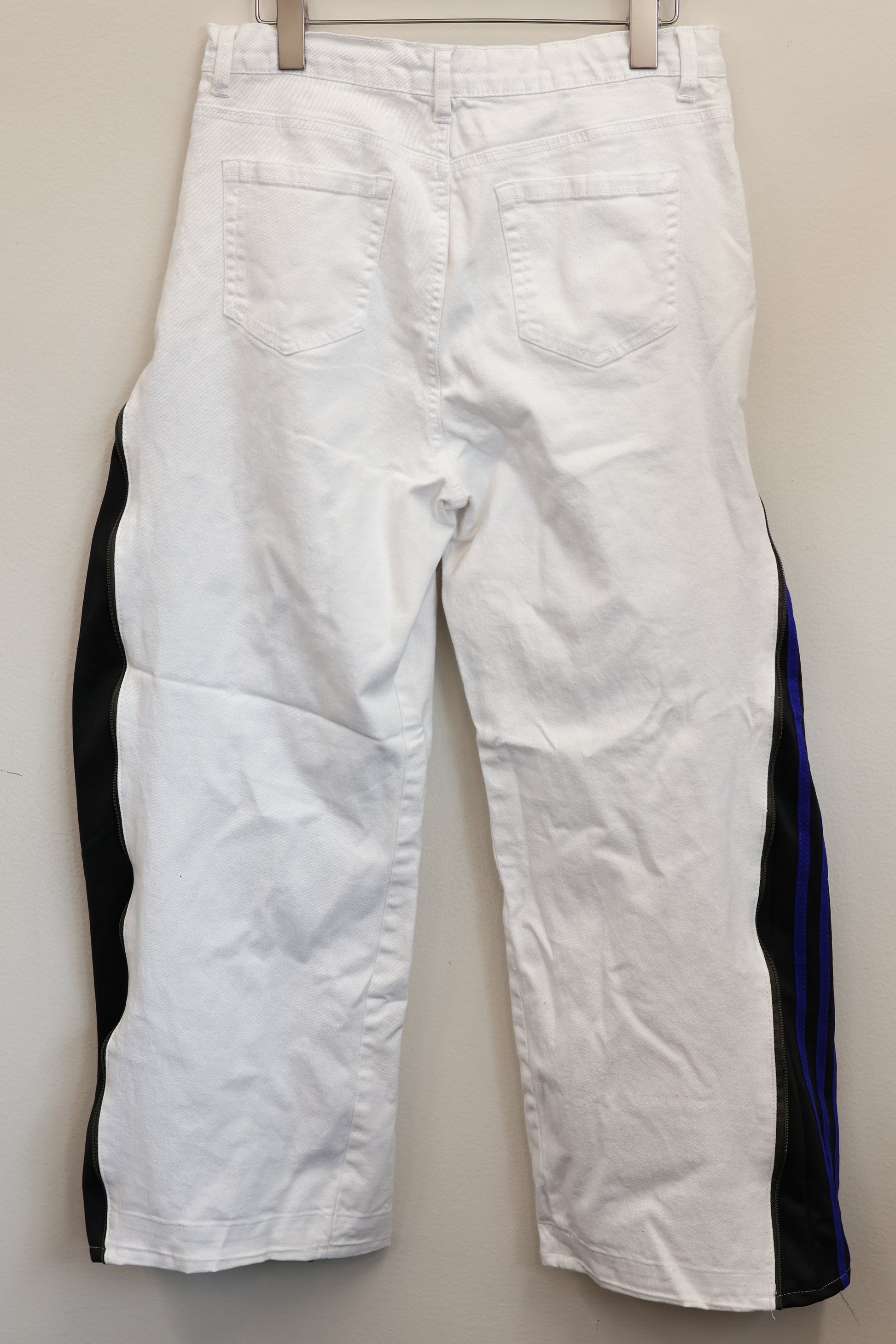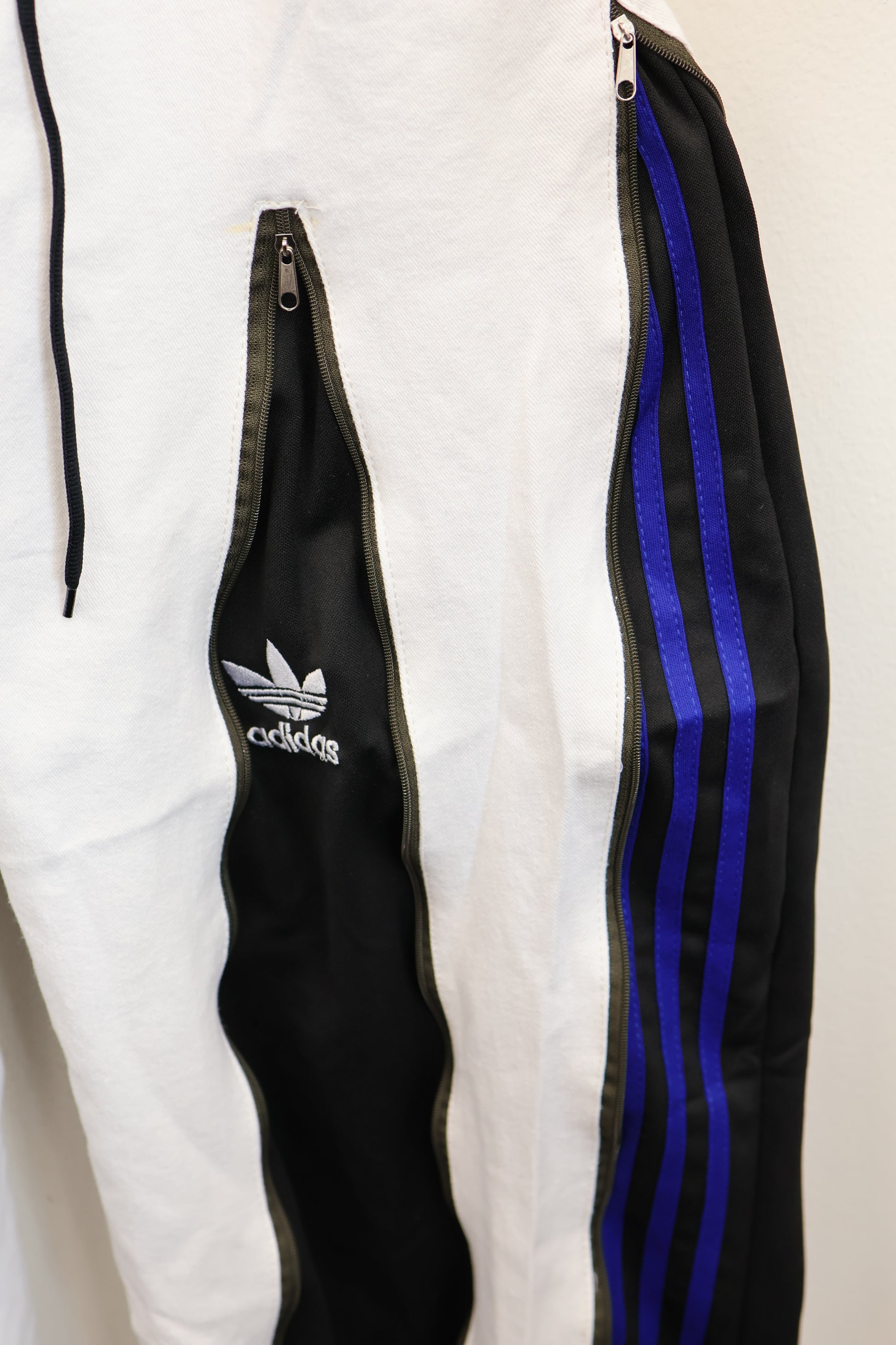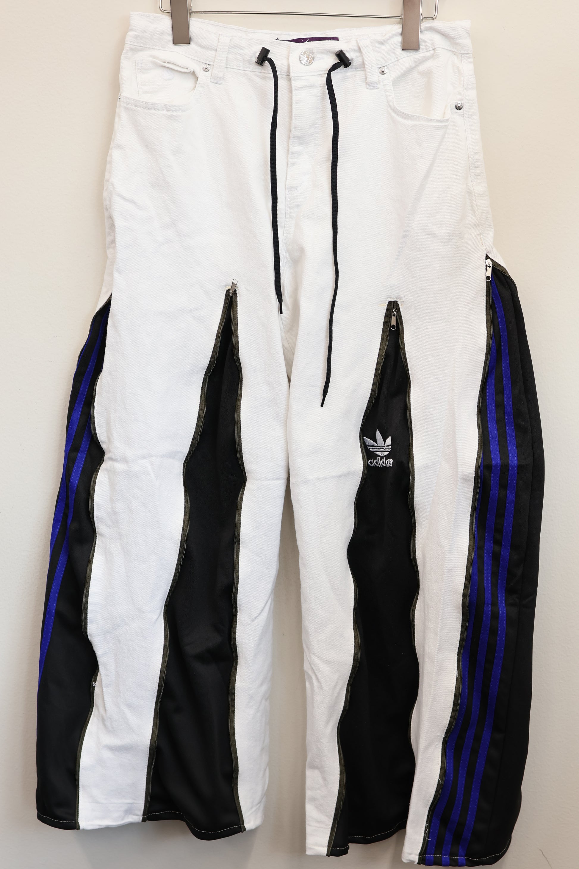 古着のデニムとジャージでリメイクされた1点もののパンツ。