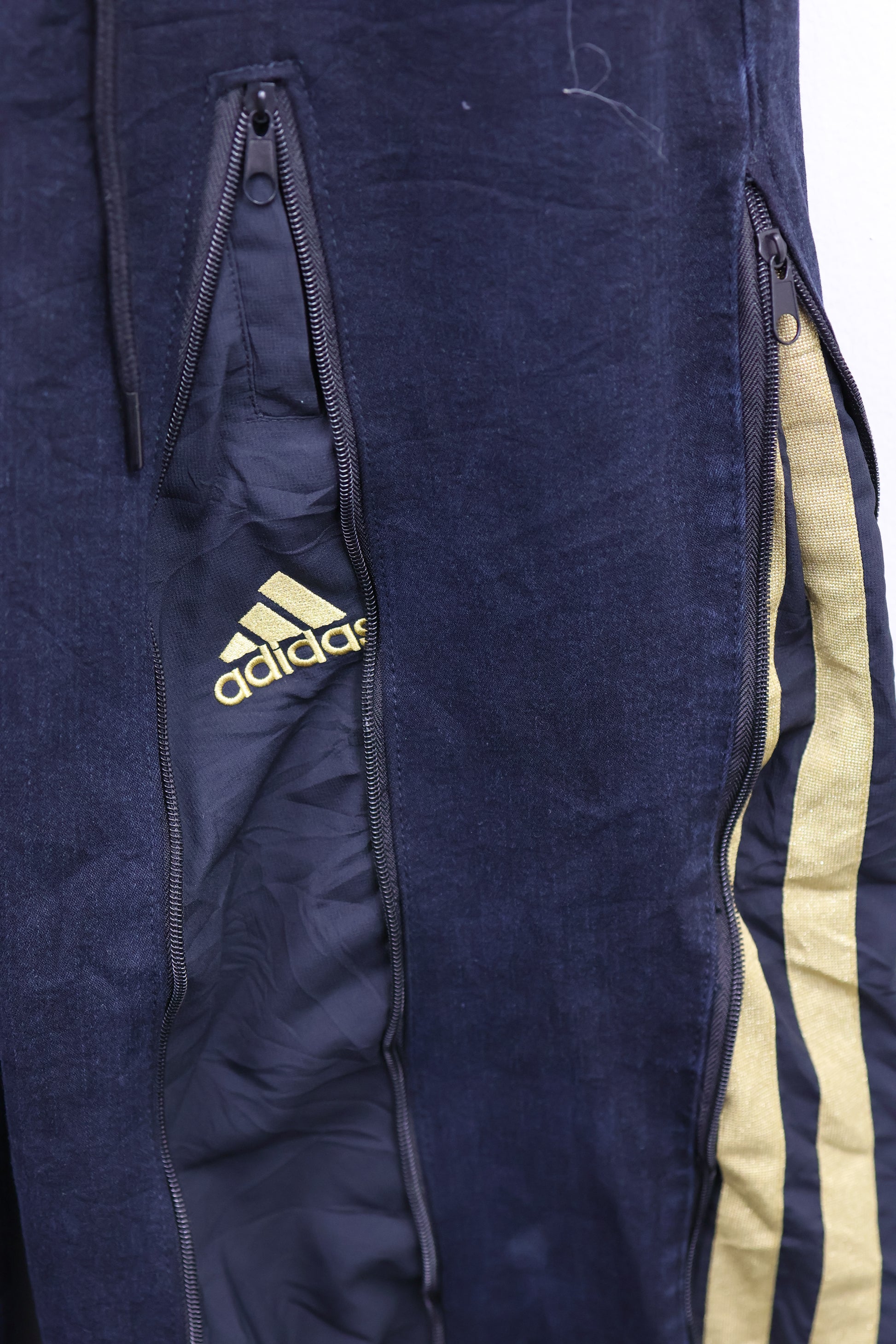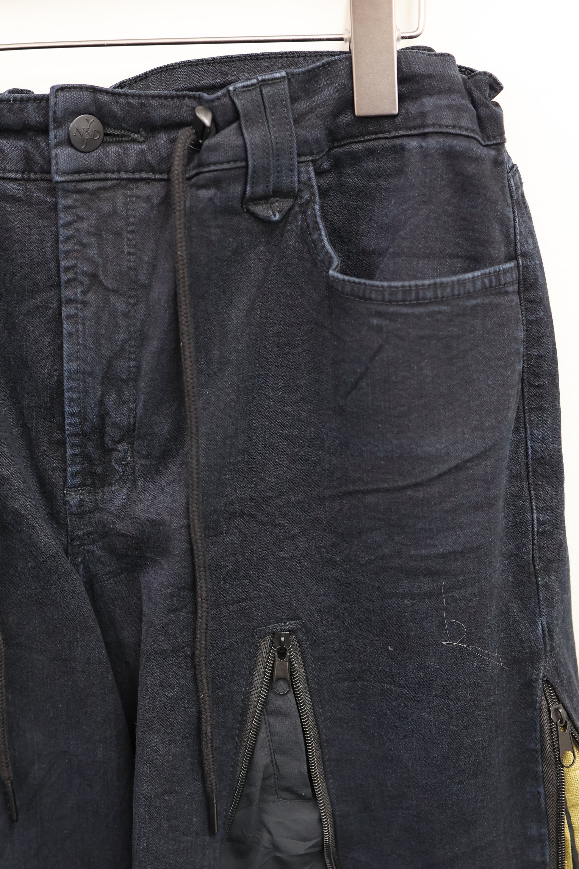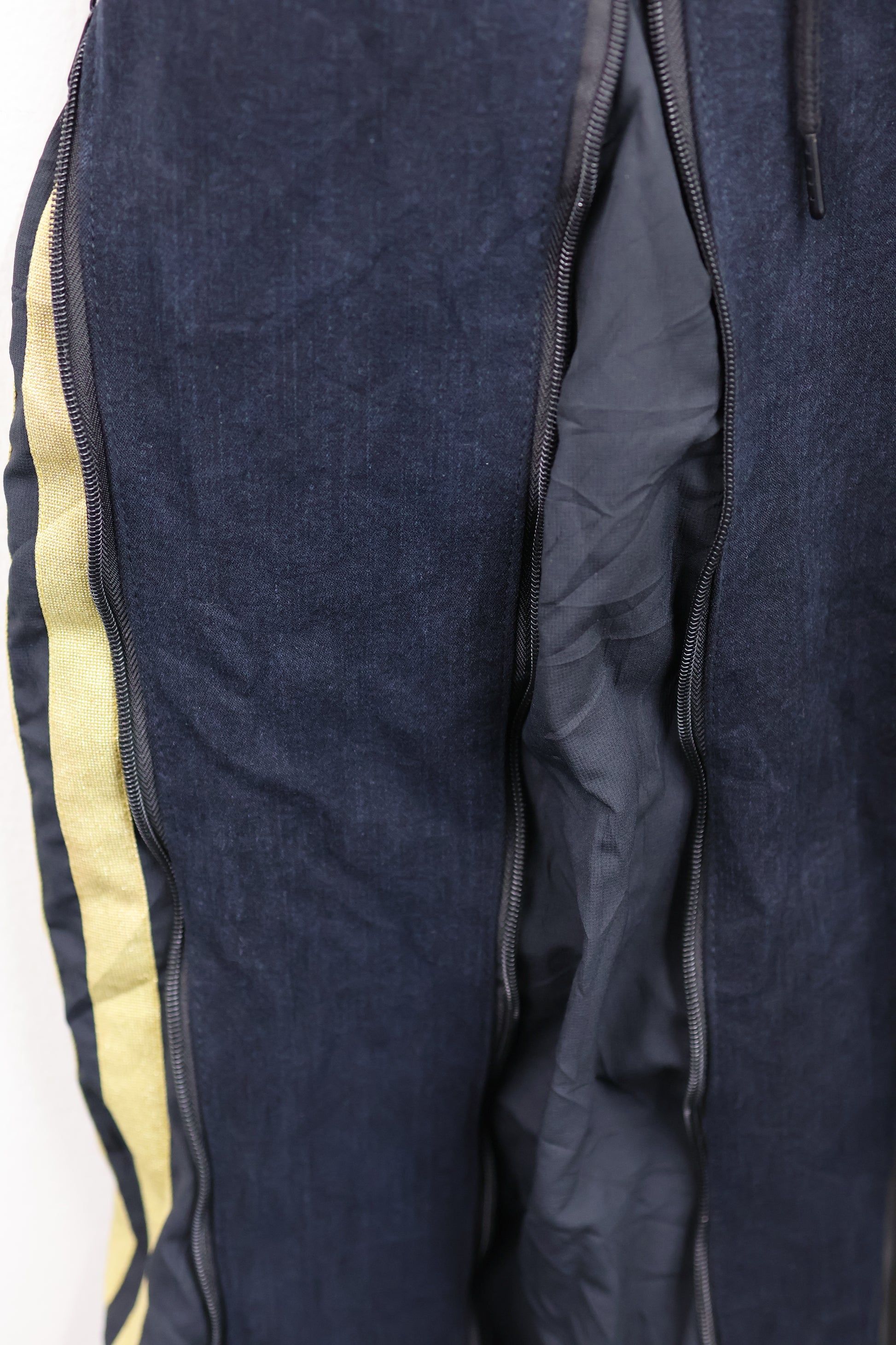 古着のデニムとジャージでリメイクされた1点もののパンツ。