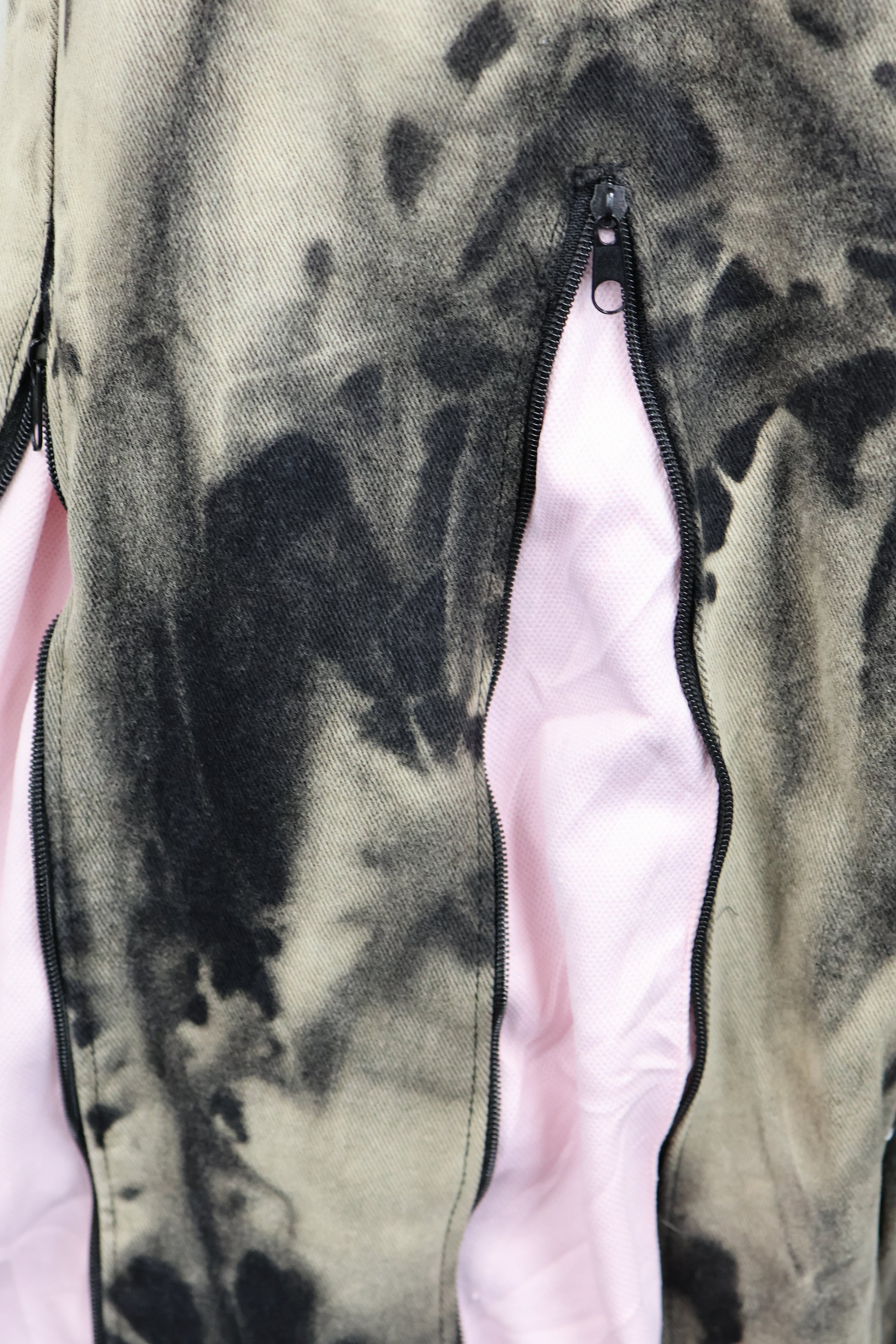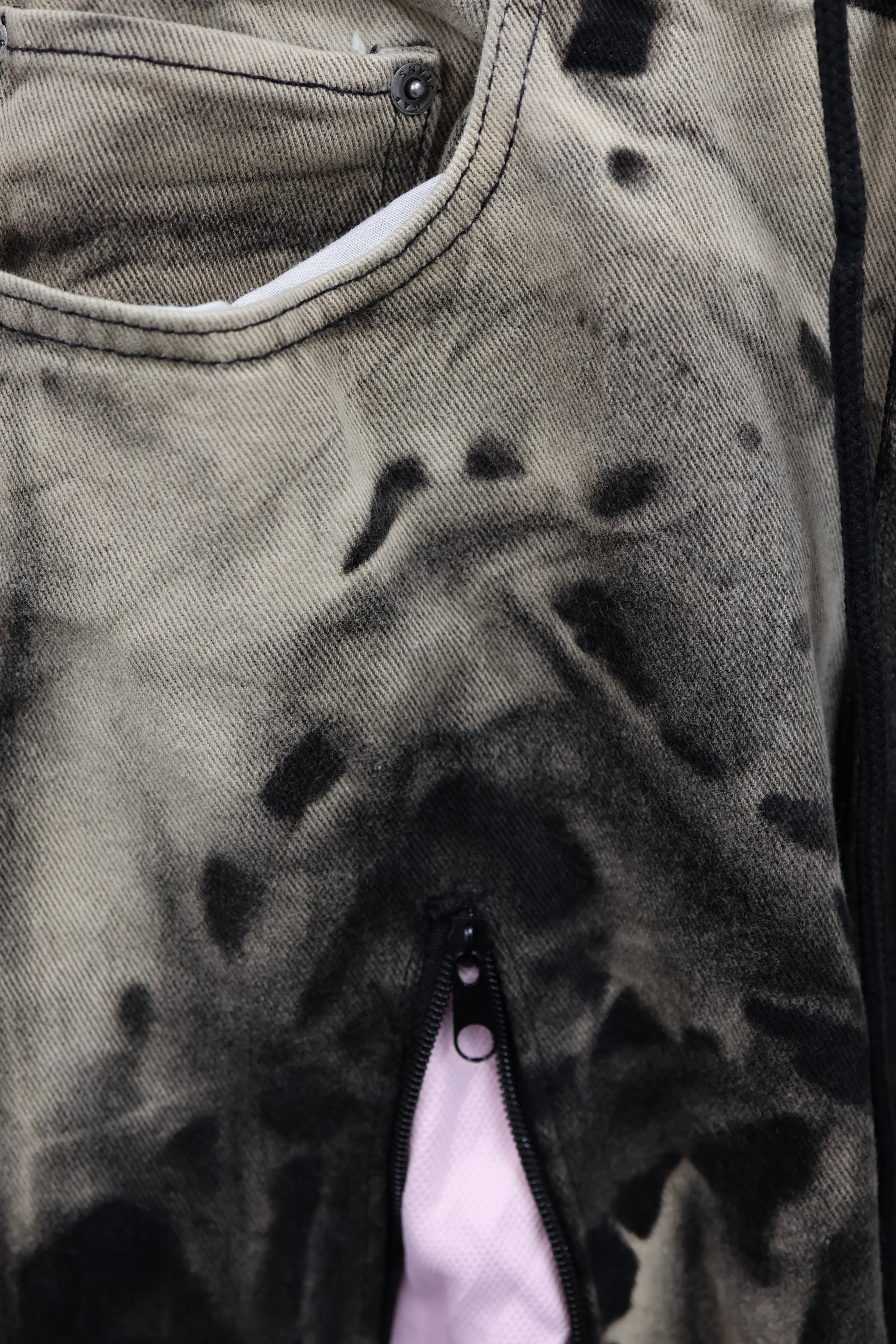 古着のデニムとジャージでリメイクされた1点もののパンツ。