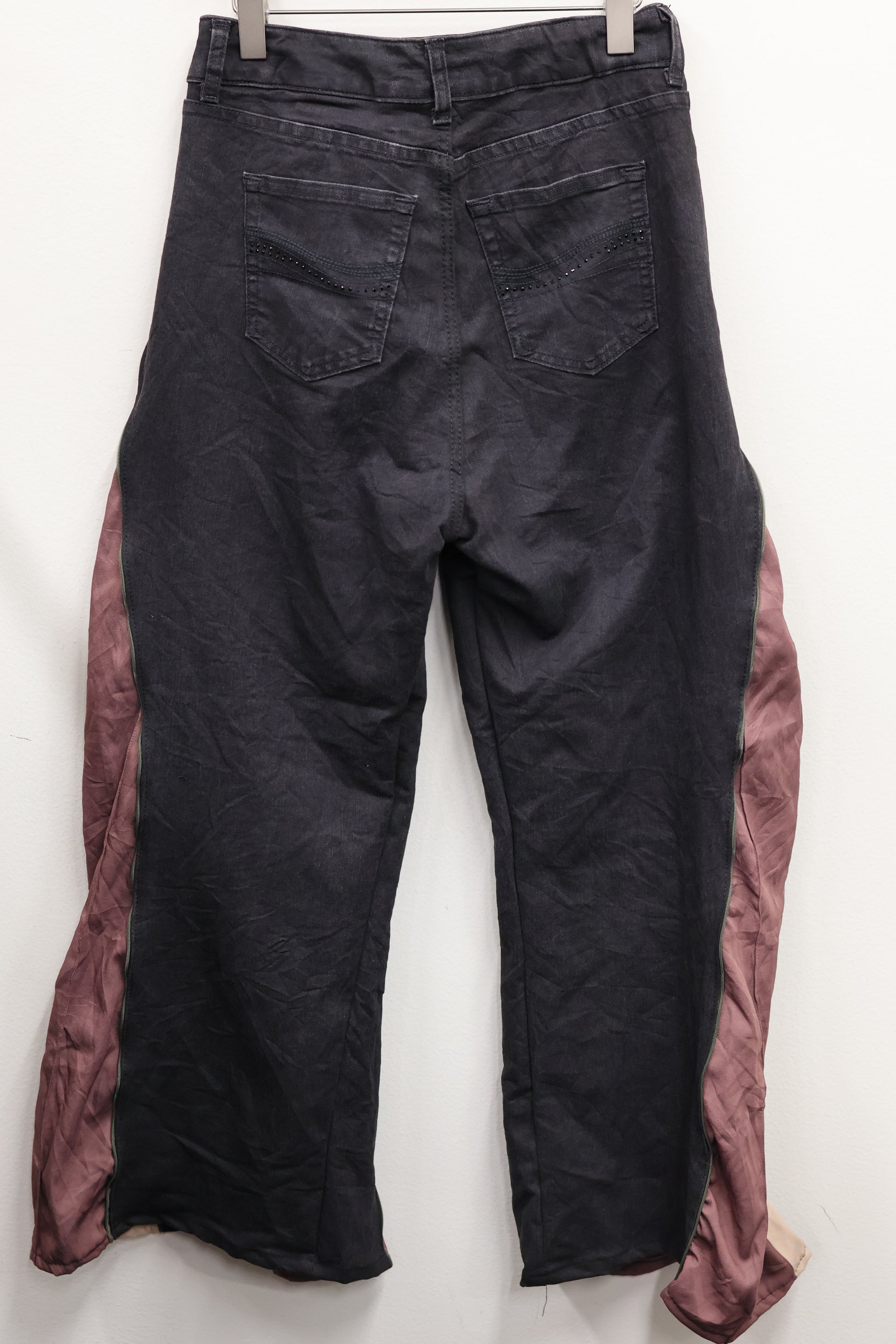 古着のデニムとジャージでリメイクされた1点もののパンツ。