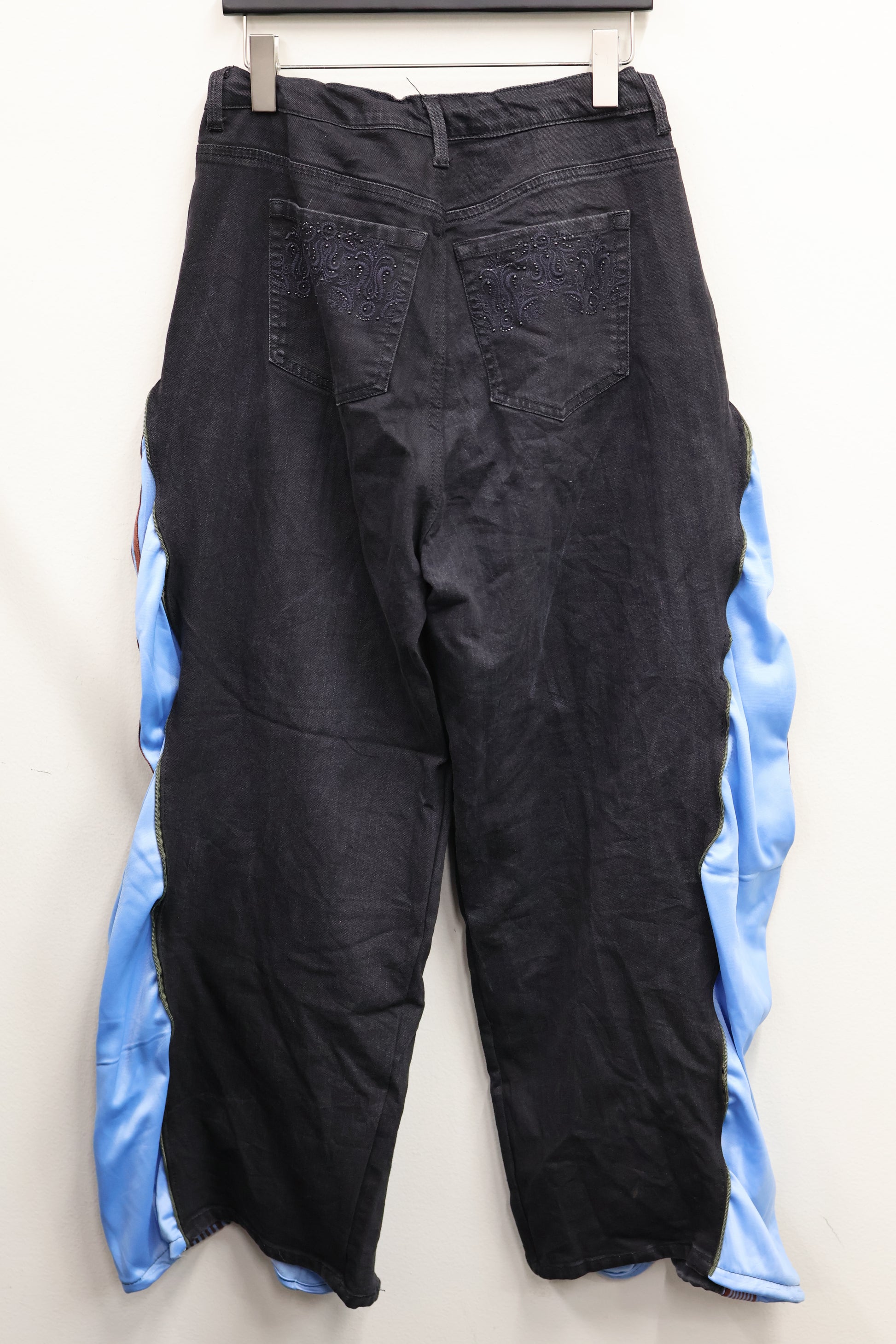 古着のデニムとジャージでリメイクされた1点もののパンツ。