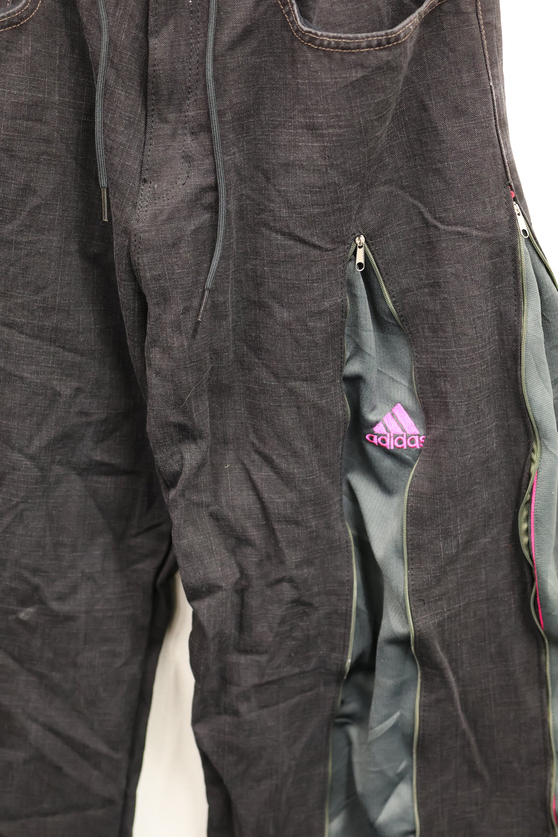 古着のデニムとジャージでリメイクされた1点もののパンツ。