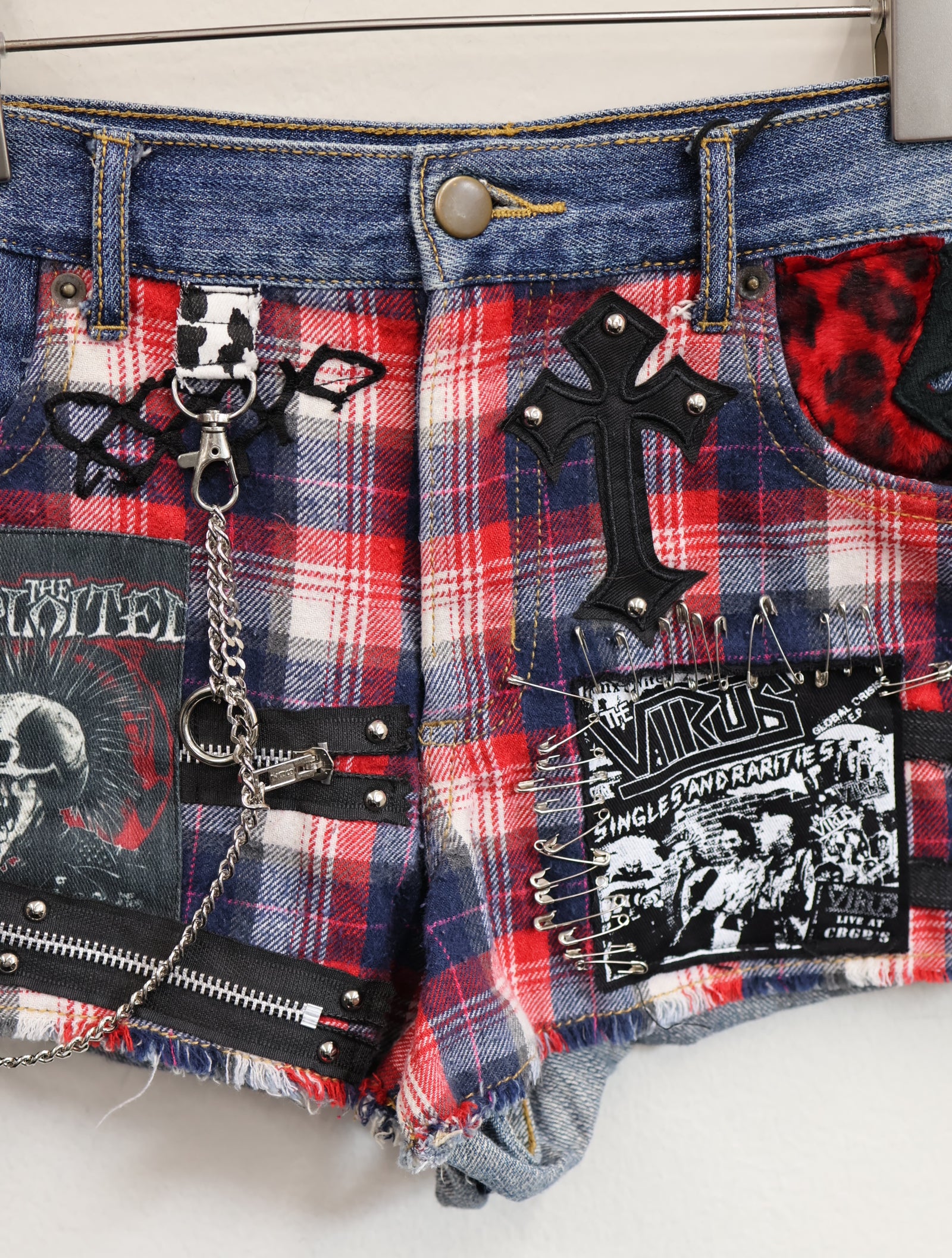 一点一点表情が違うリメイクデザインで、履くだけでY2K感が完成するショートパンツ/ミニスカート。ローウエストでもハイウエストでも映えるバランスで、甘辛ミックスが一気に仕上がる主役ボトム。
