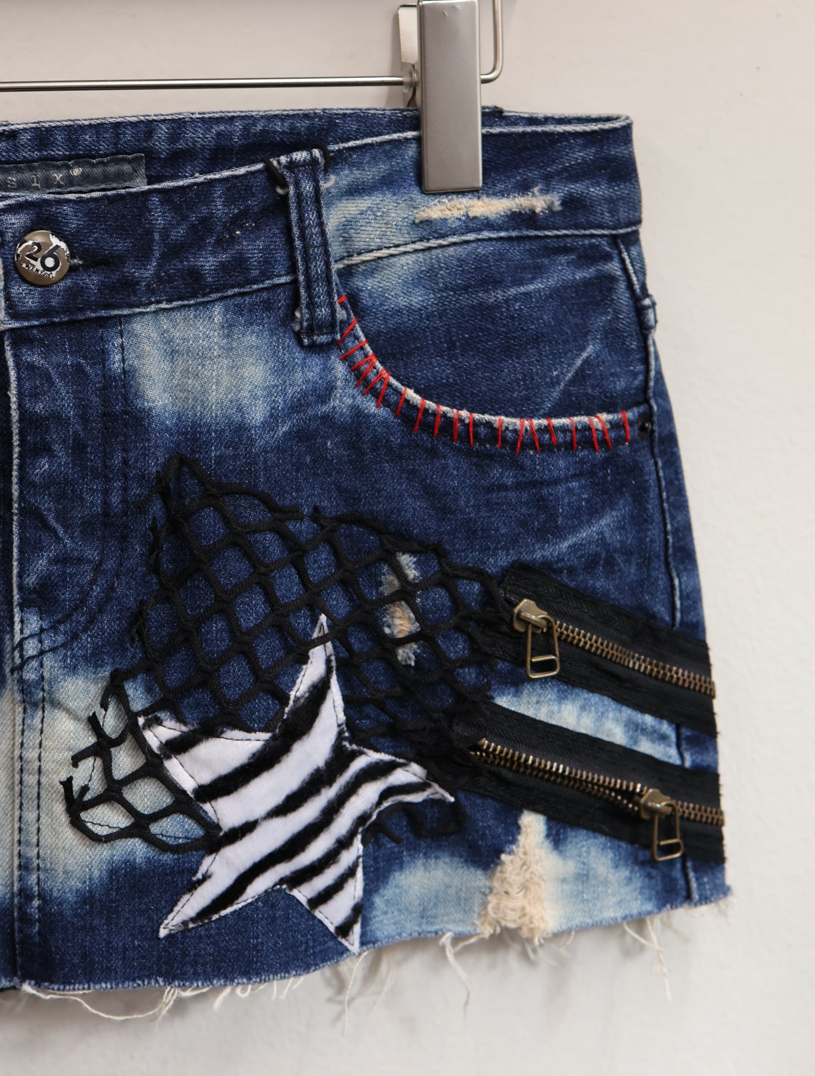 一点一点表情が違うリメイクデザインで、履くだけでY2K感が完成するショートパンツ/ミニスカート。ローウエストでもハイウエストでも映えるバランスで、甘辛ミックスが一気に仕上がる主役ボトム。