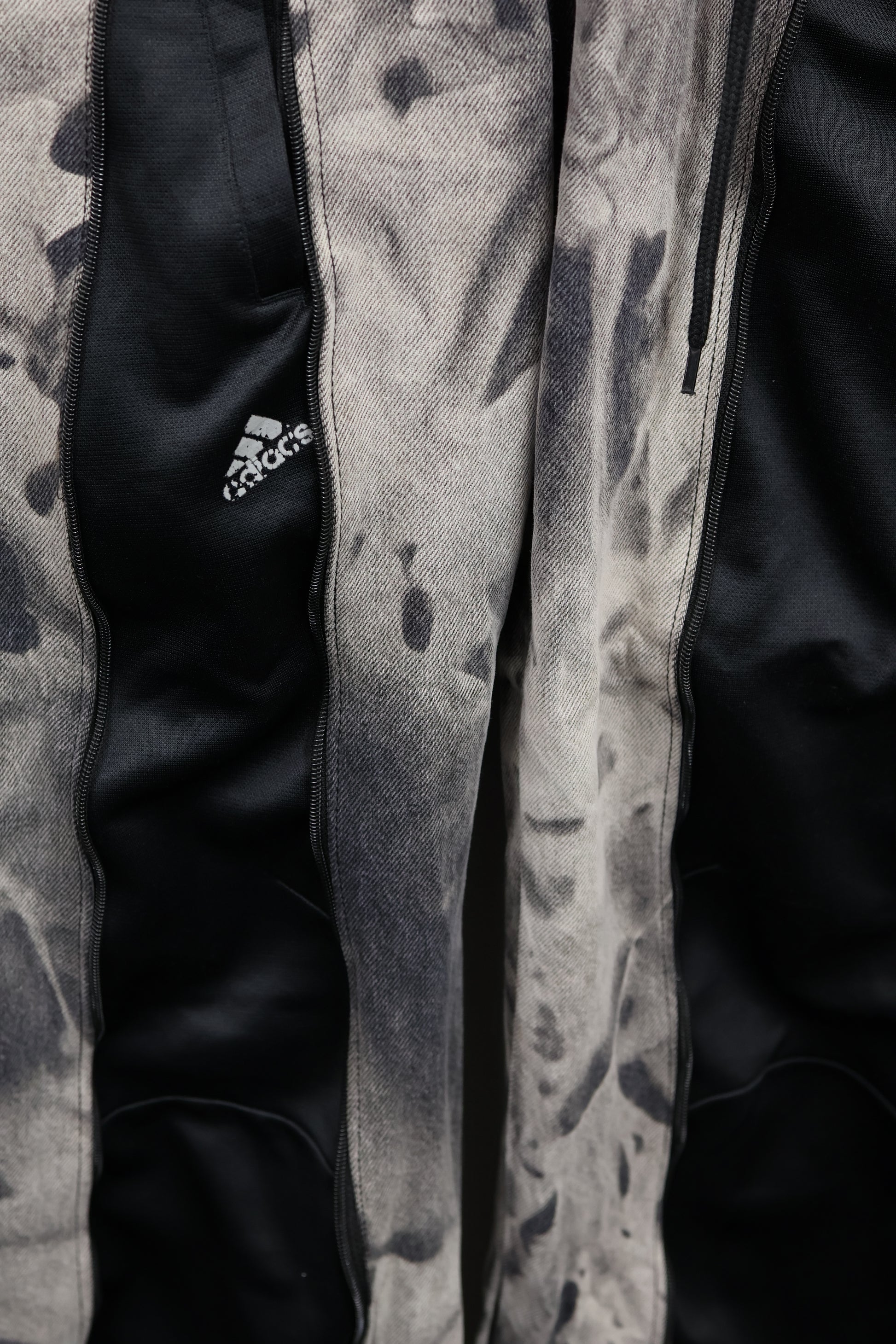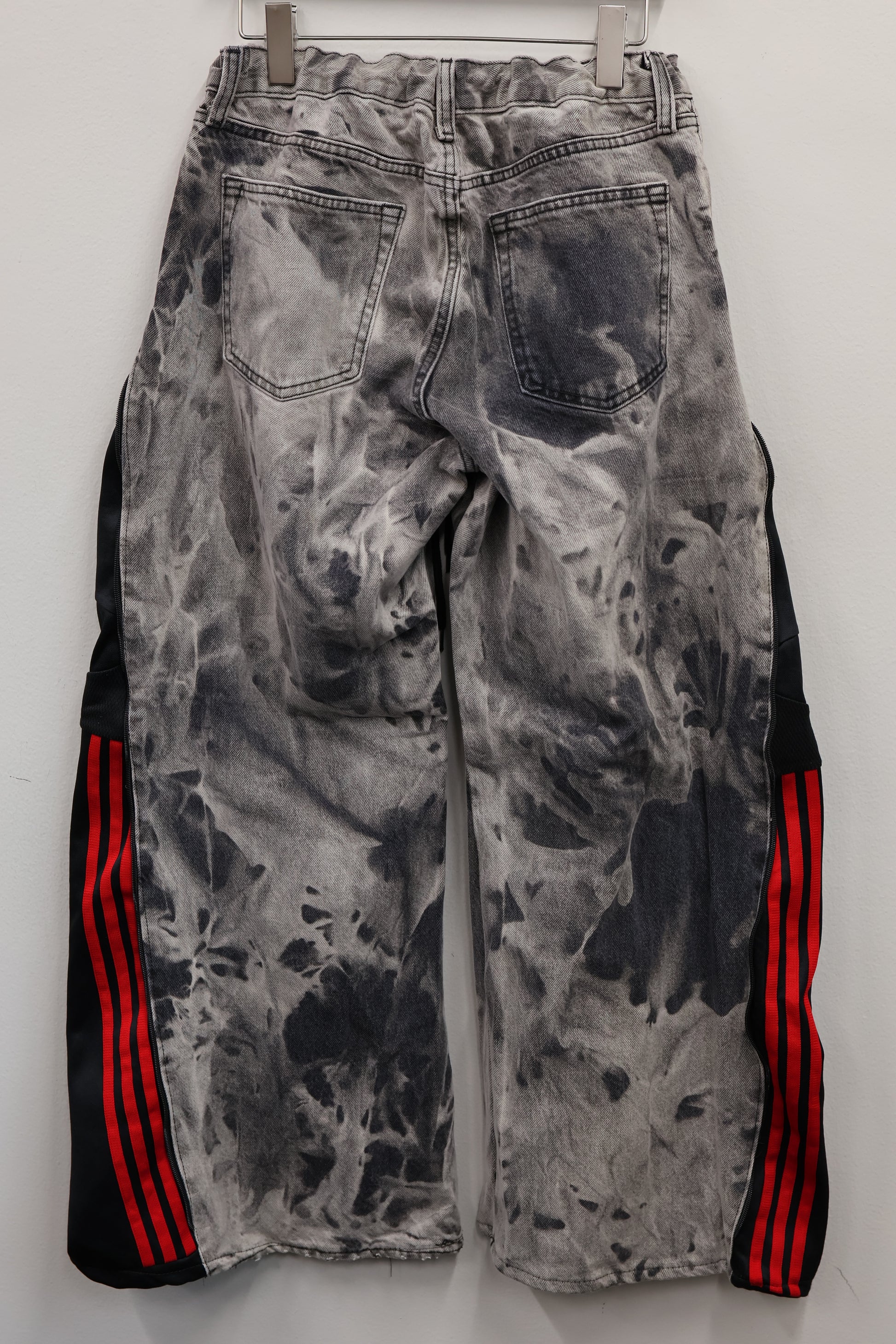 古着のデニムとジャージでリメイクされた1点もののパンツ。