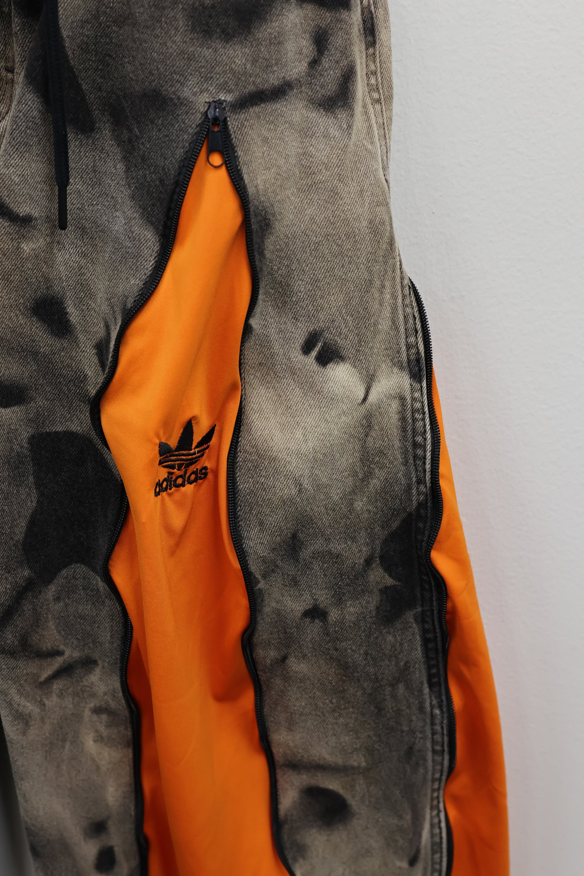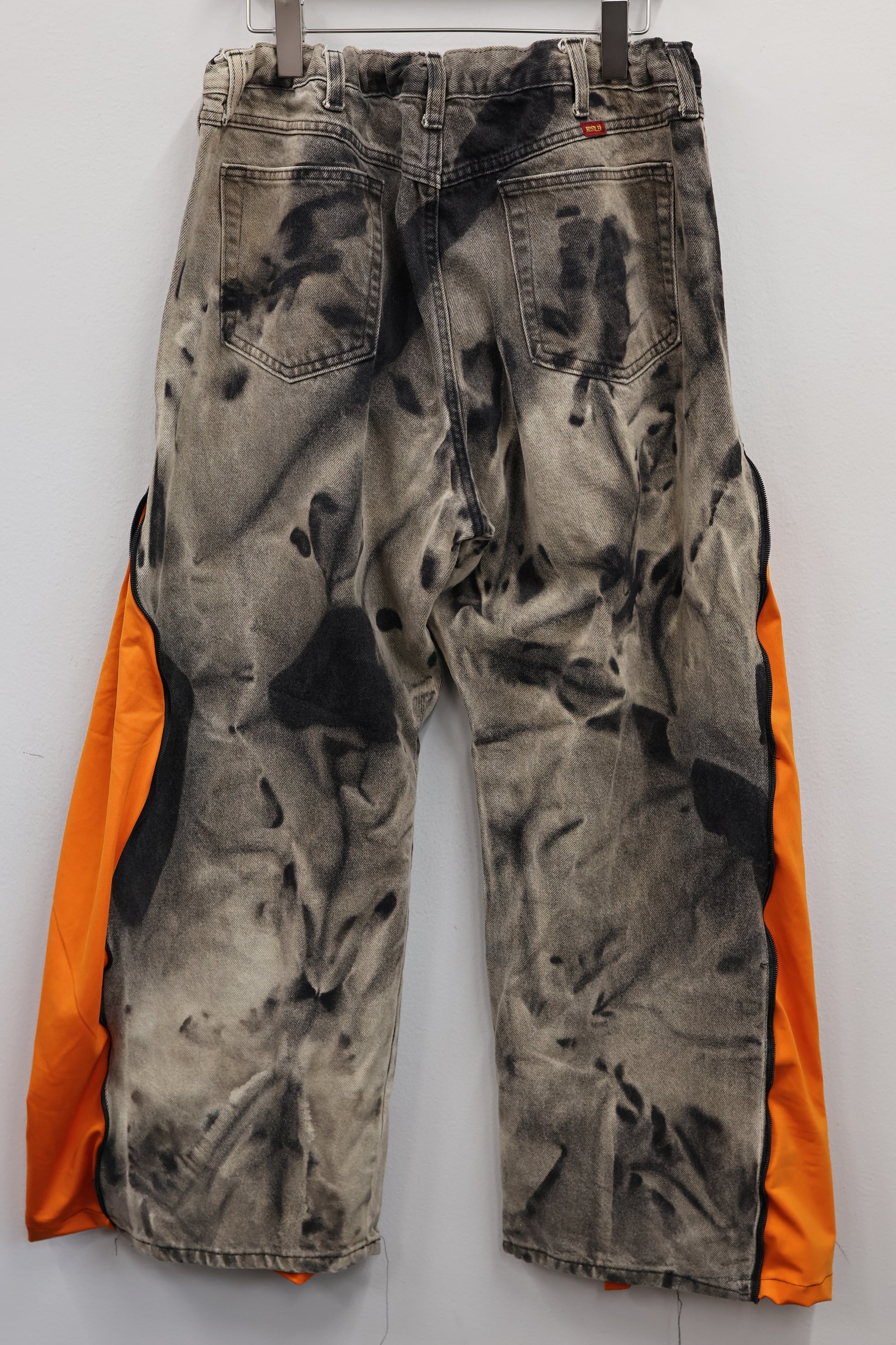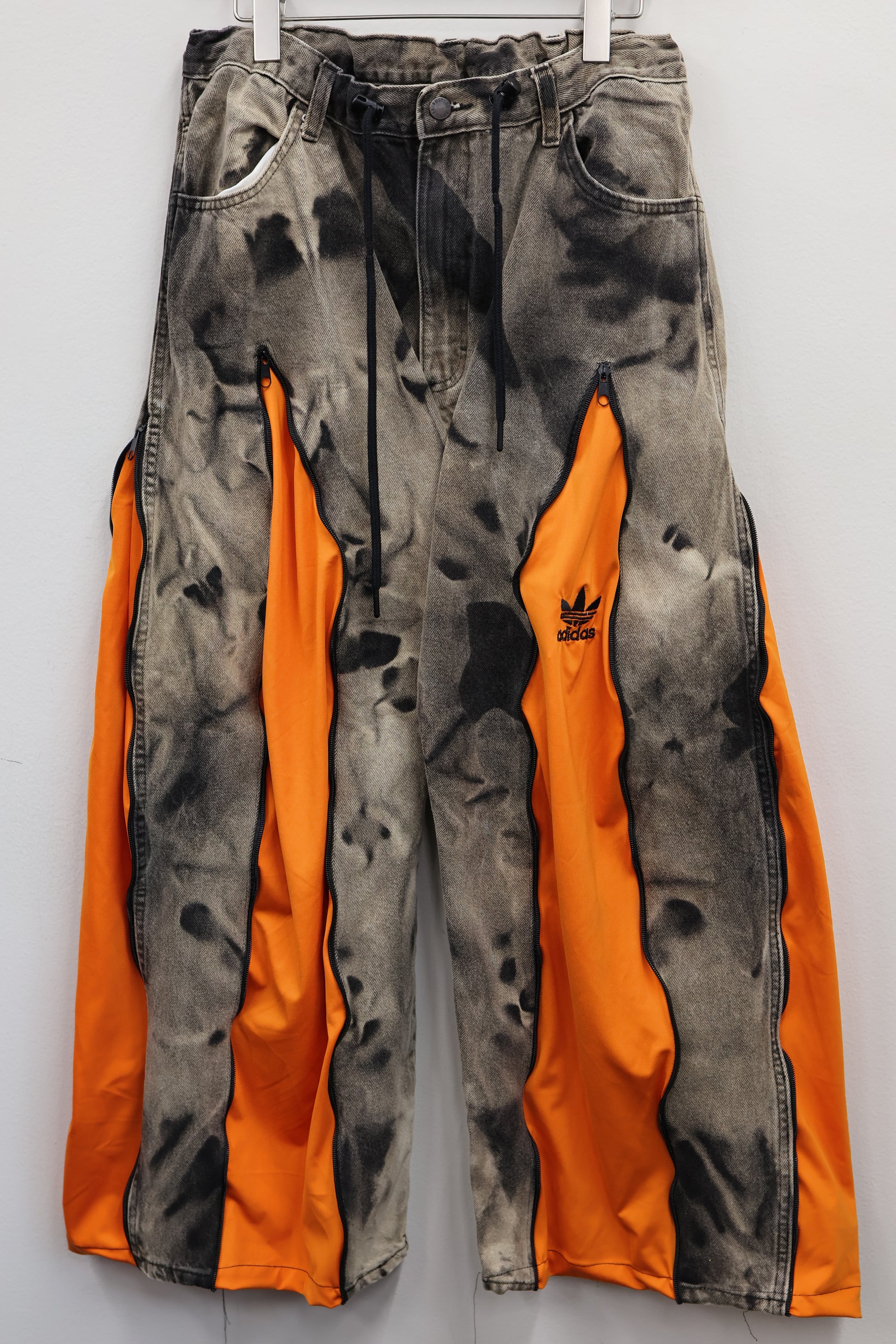 古着のデニムとジャージでリメイクされた1点もののパンツ。