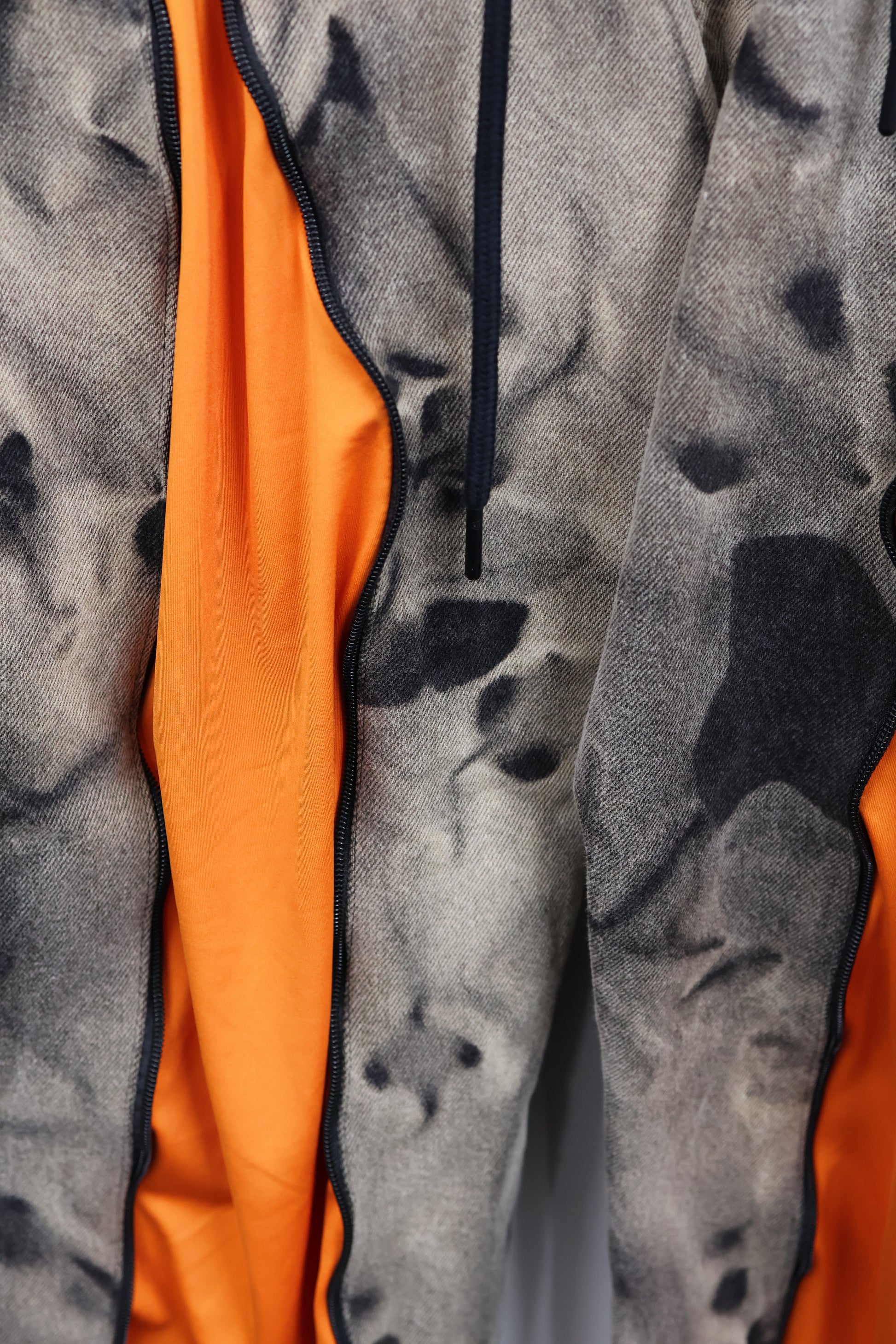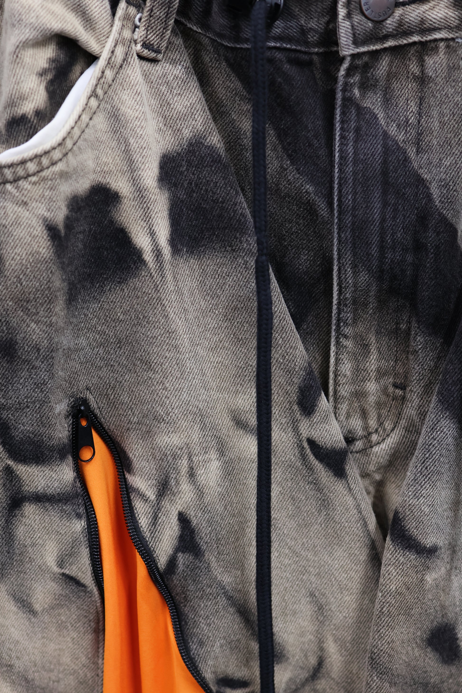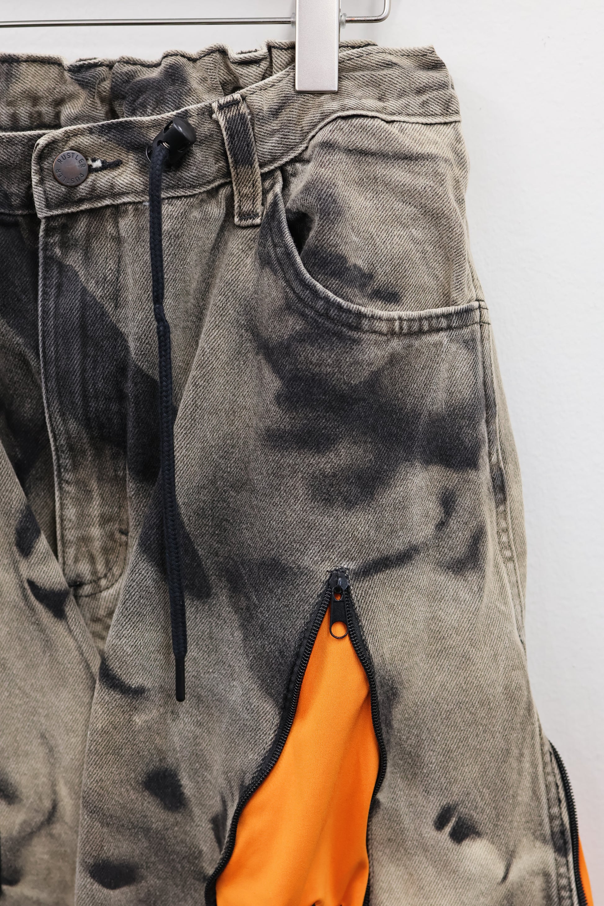 古着のデニムとジャージでリメイクされた1点もののパンツ。