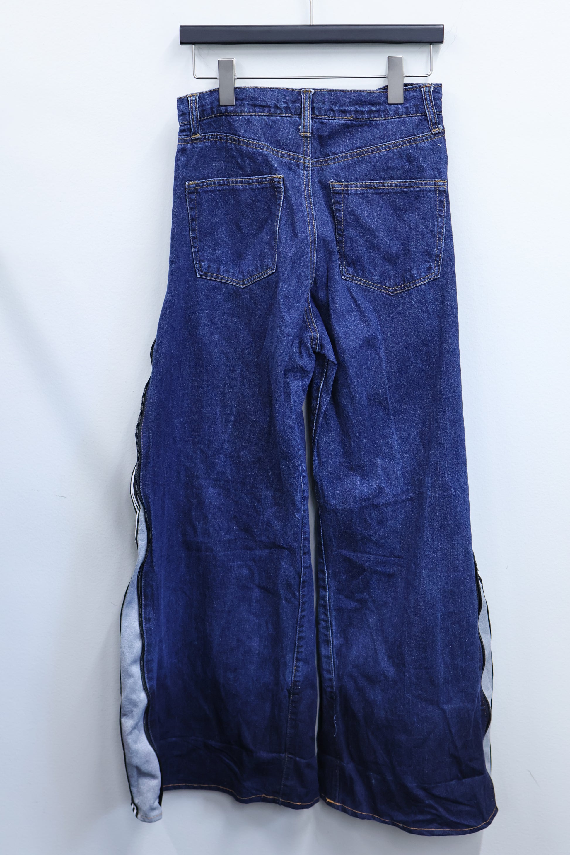 古着のデニムとジャージでリメイクされた1点もののパンツ。