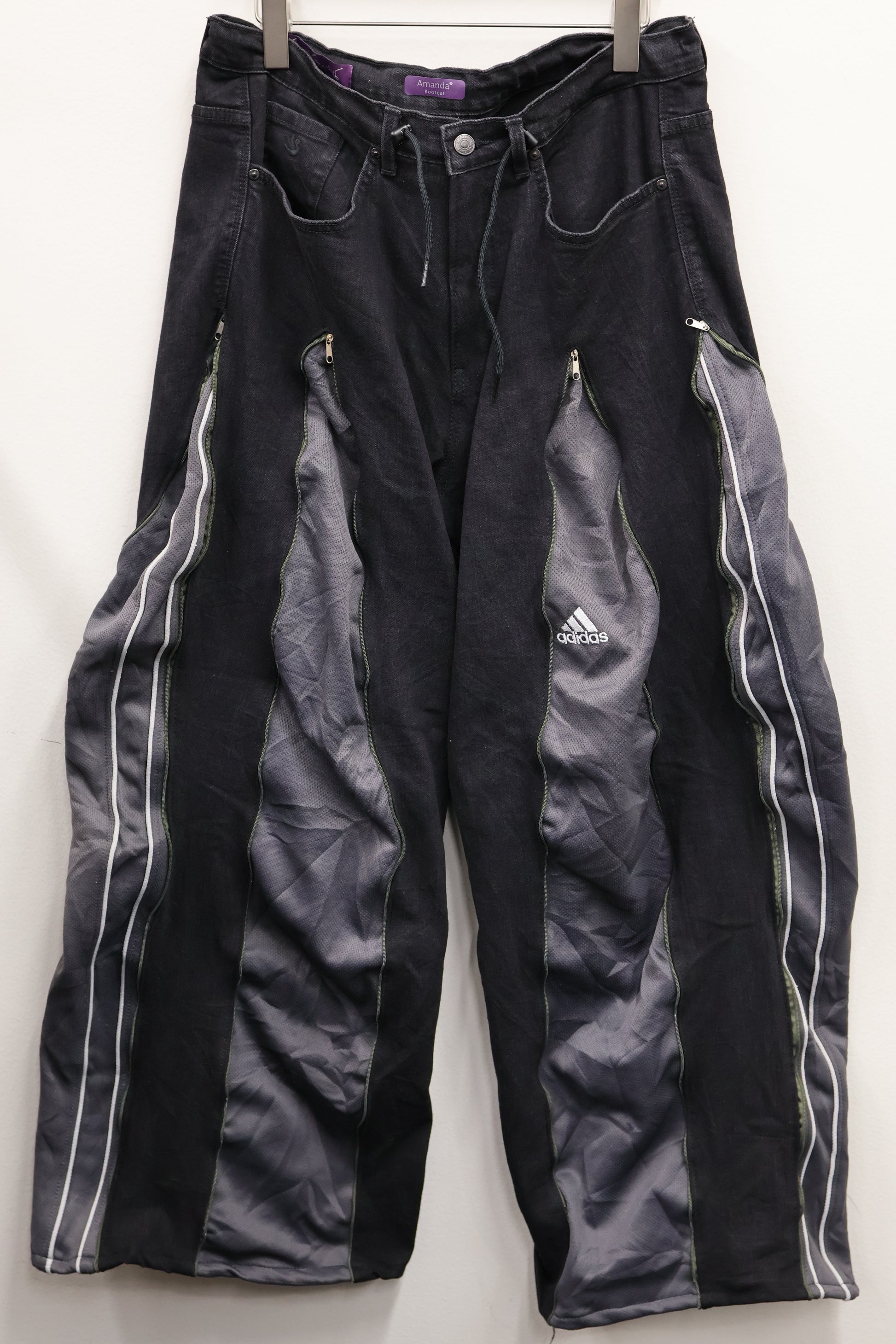 古着のデニムとジャージでリメイクされた1点もののパンツ。