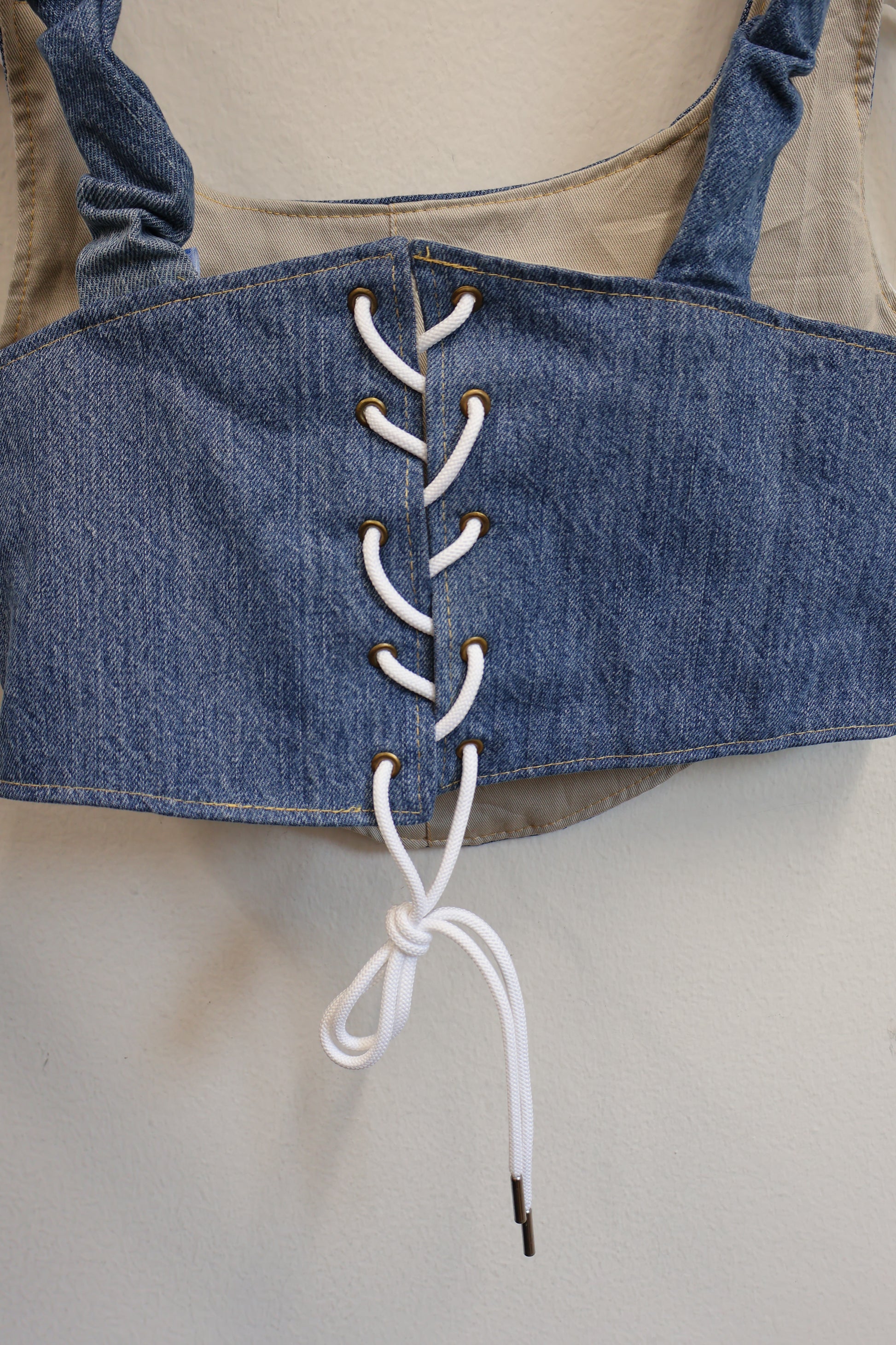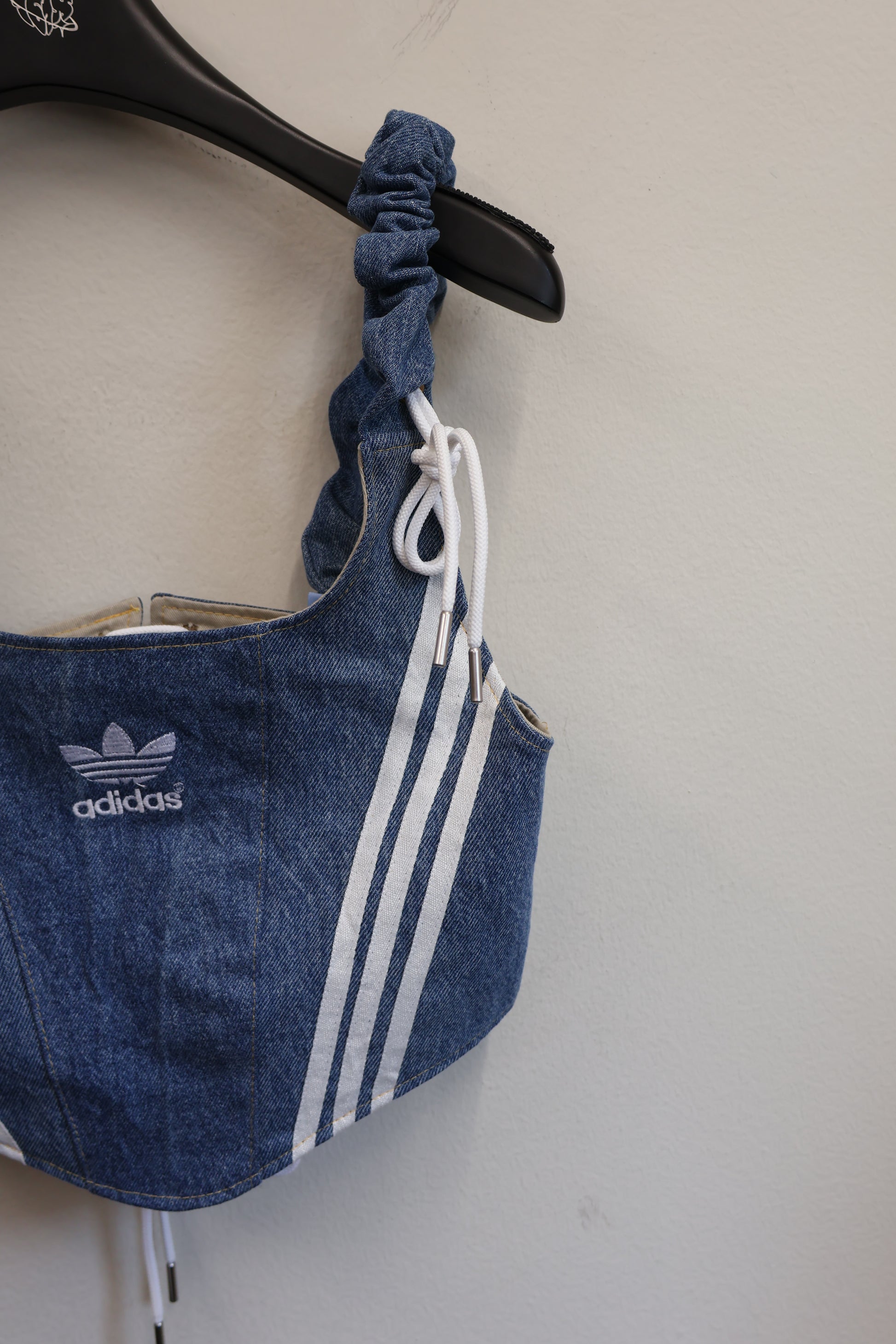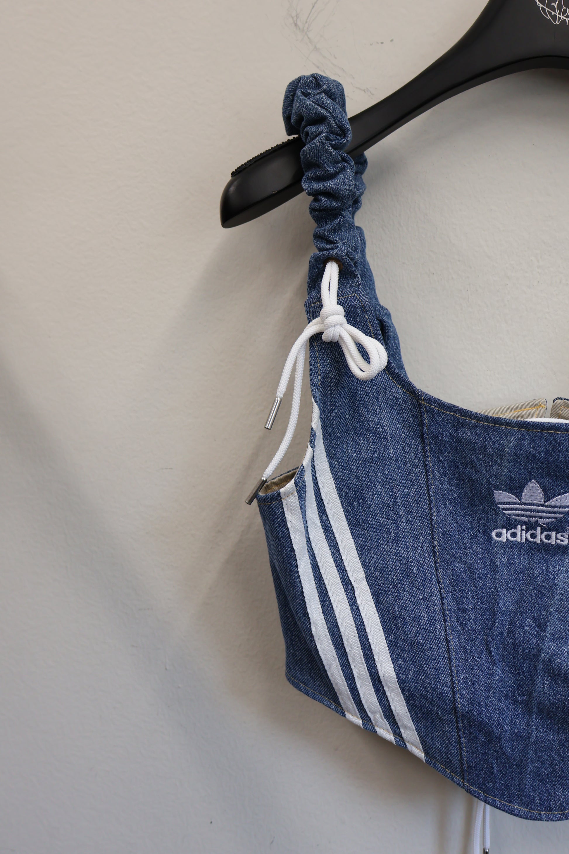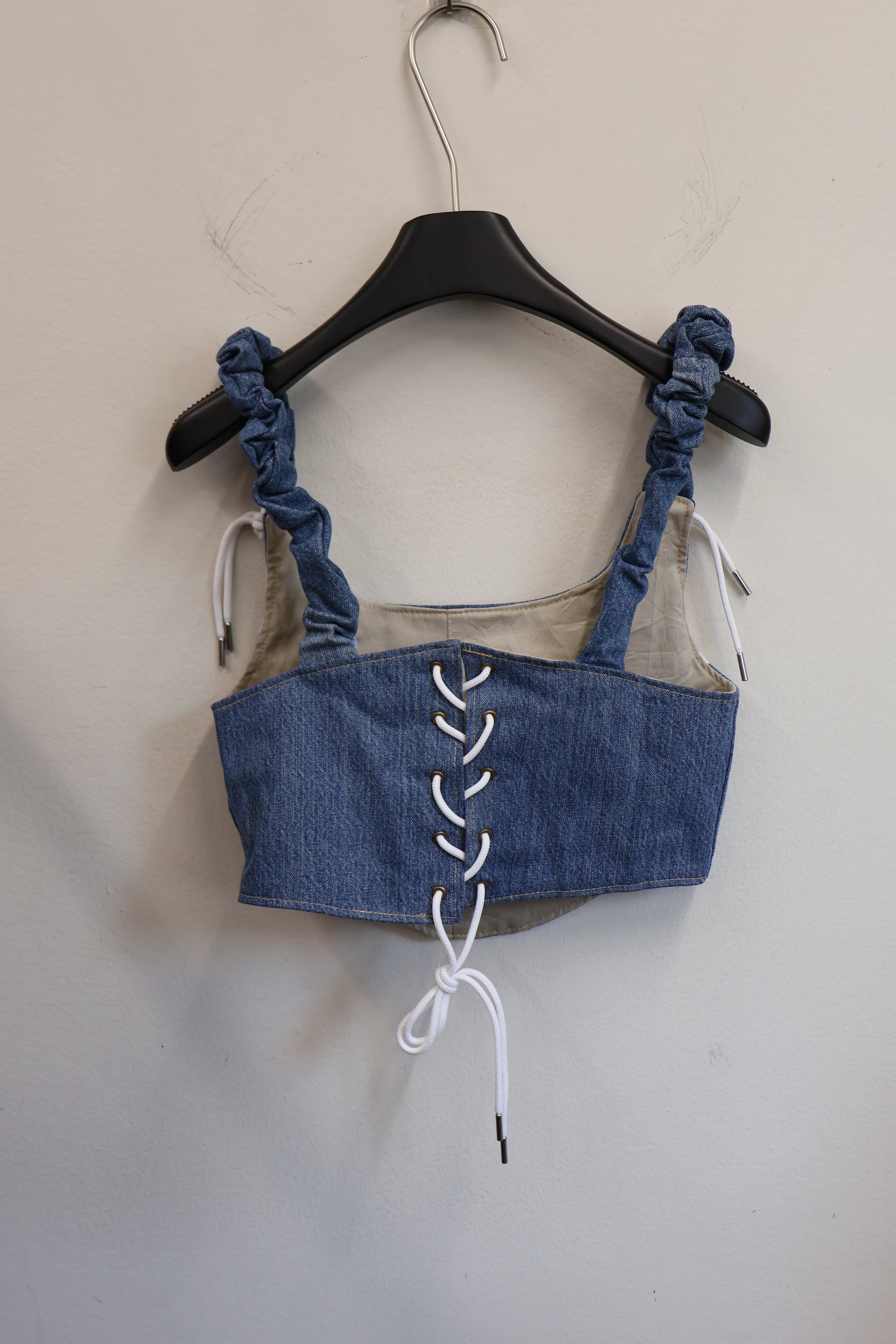 デニムとスポーツラインを掛け合わせた、Y2Kムード全開のビスチェトップ。