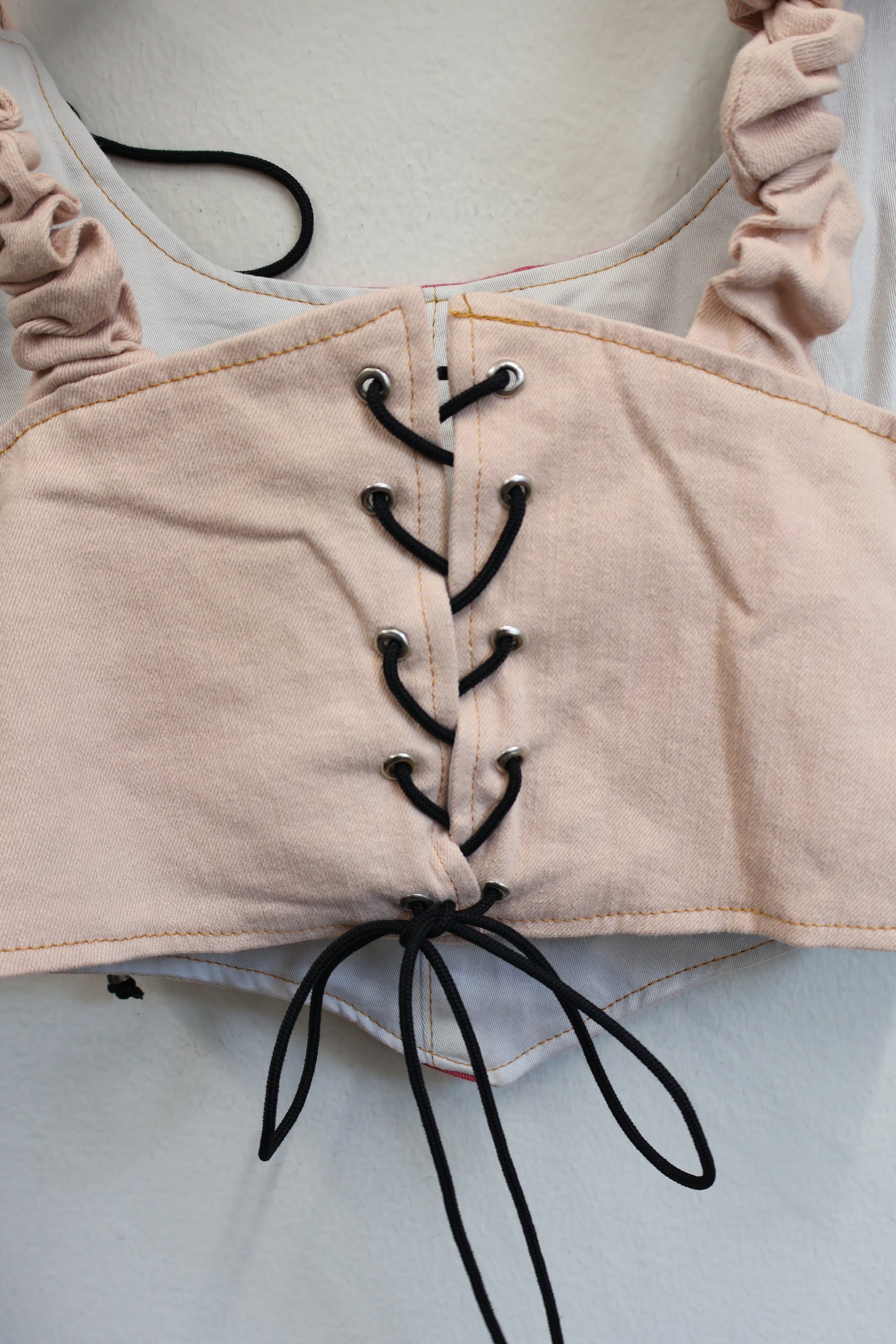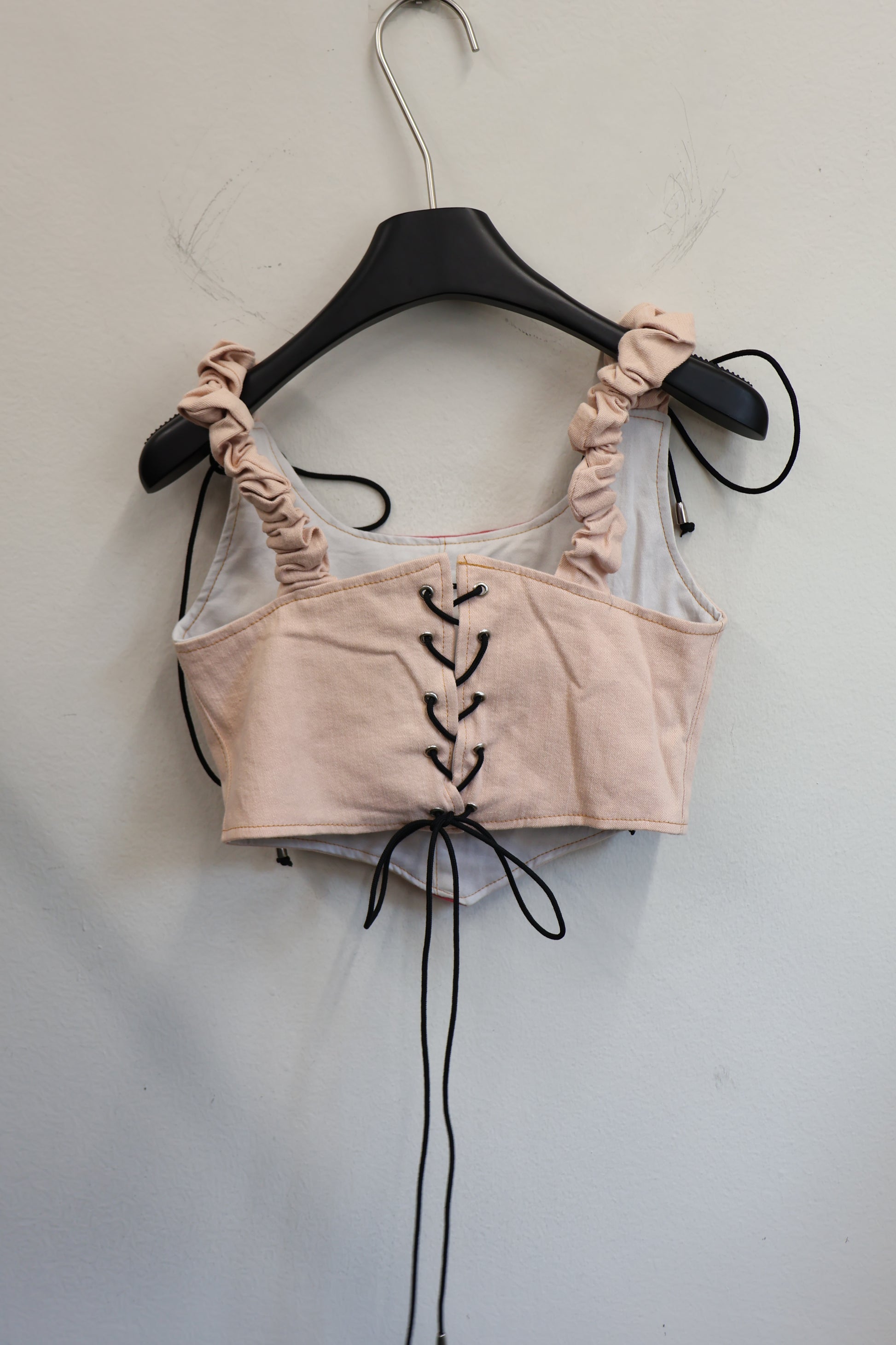 デニムとスポーツラインを掛け合わせた、Y2Kムード全開のビスチェトップ。