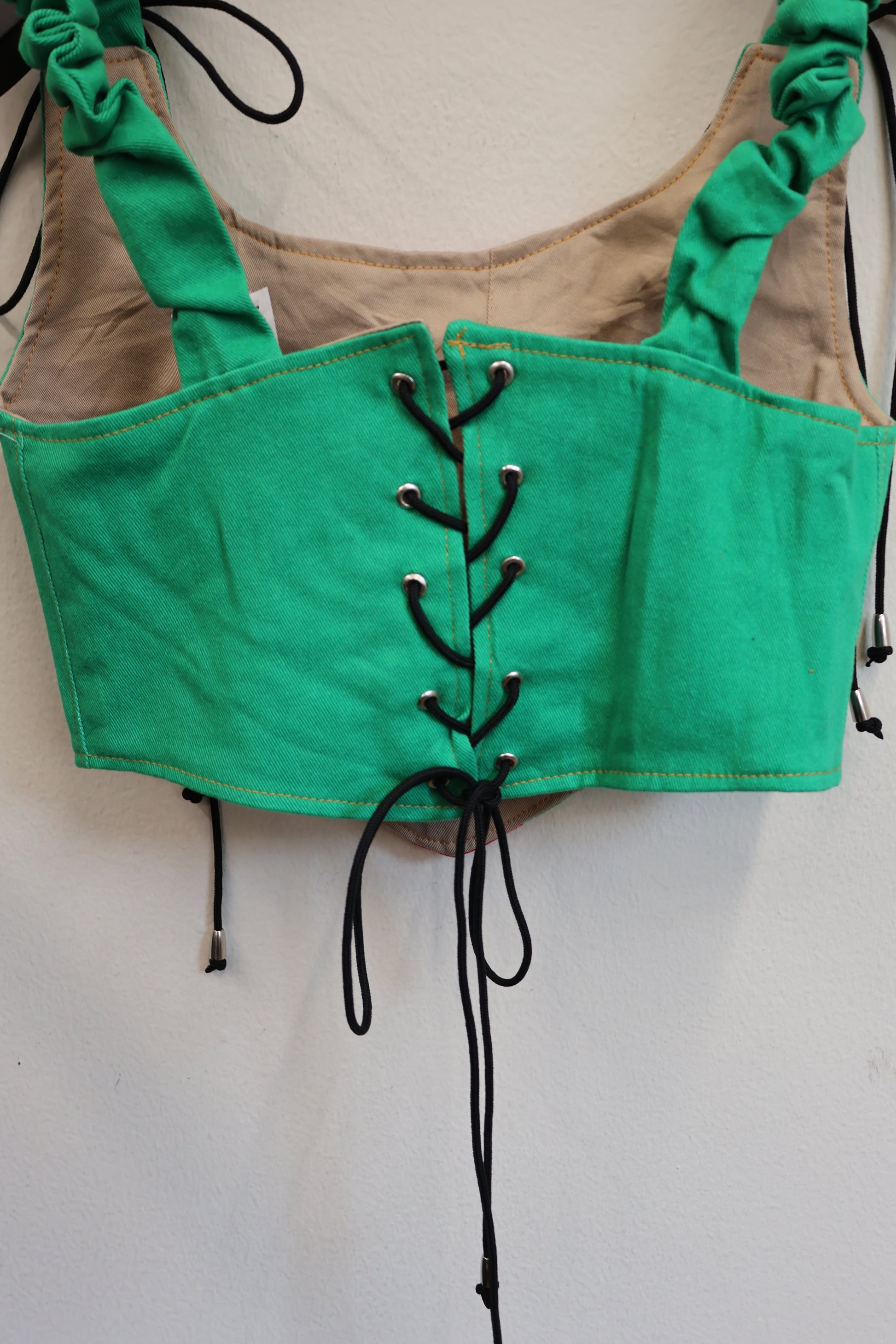デニムとスポーツラインを掛け合わせた、Y2Kムード全開のビスチェトップ。