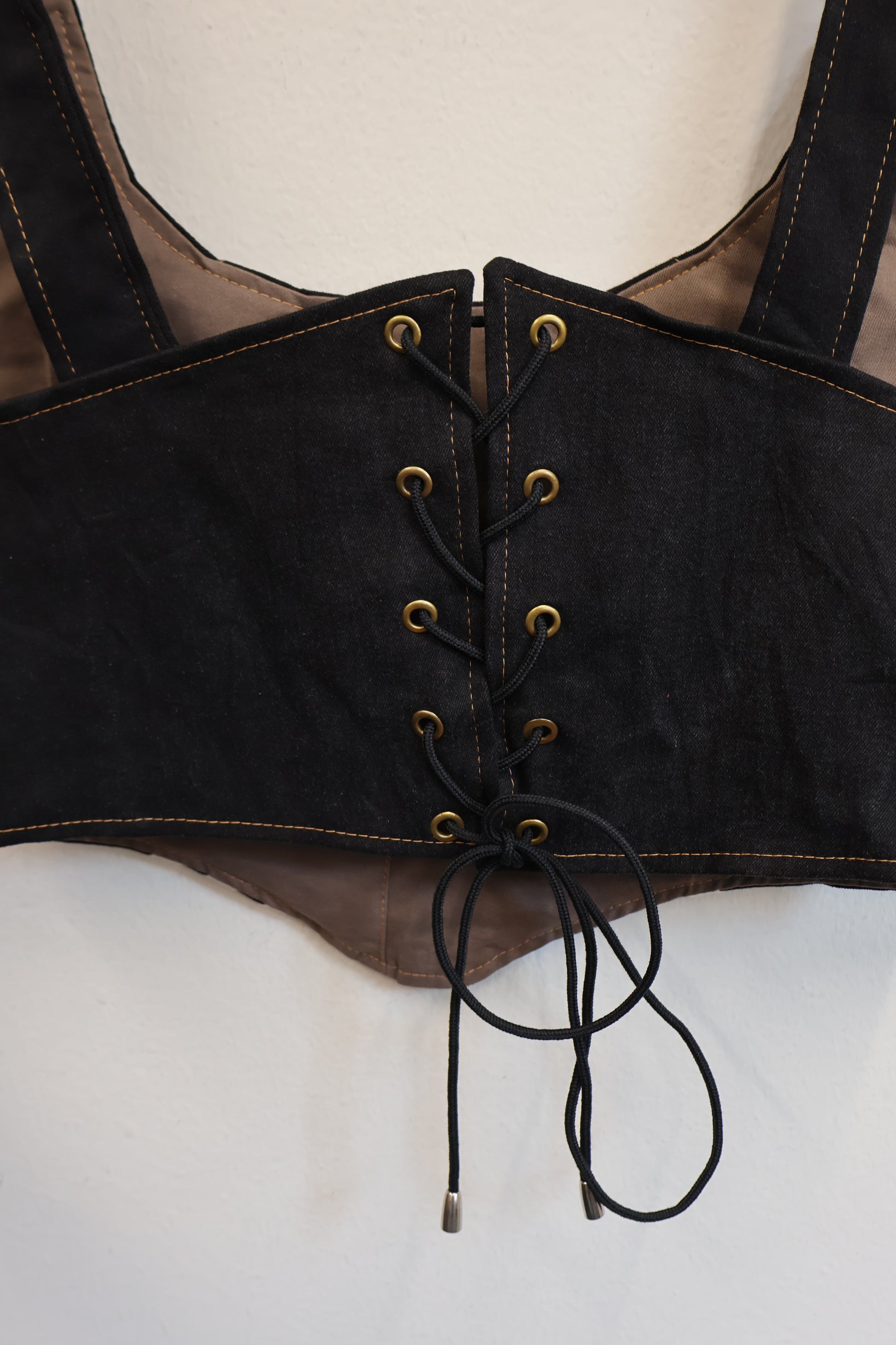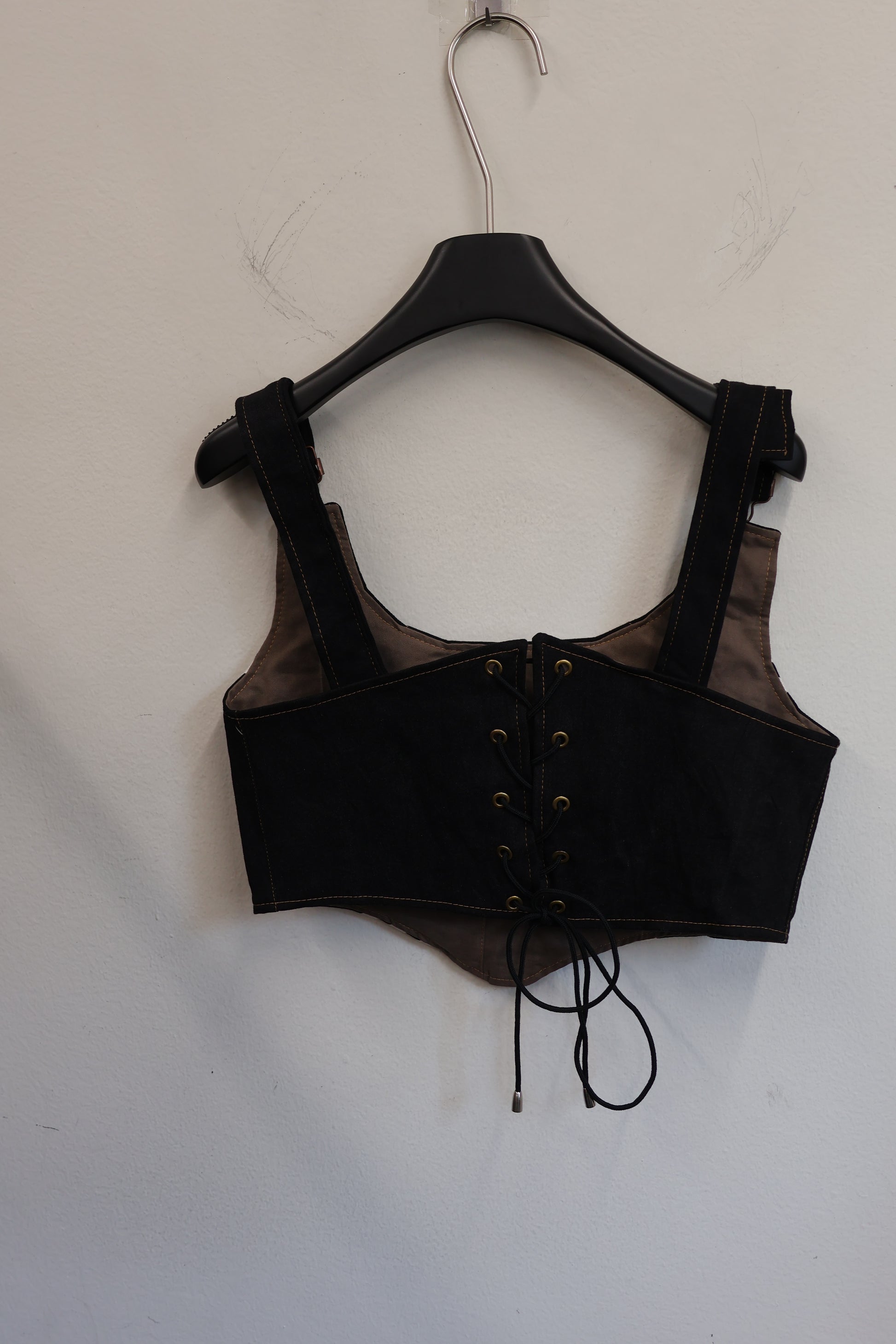 デニムとスポーツラインを掛け合わせた、Y2Kムード全開のビスチェトップ。
