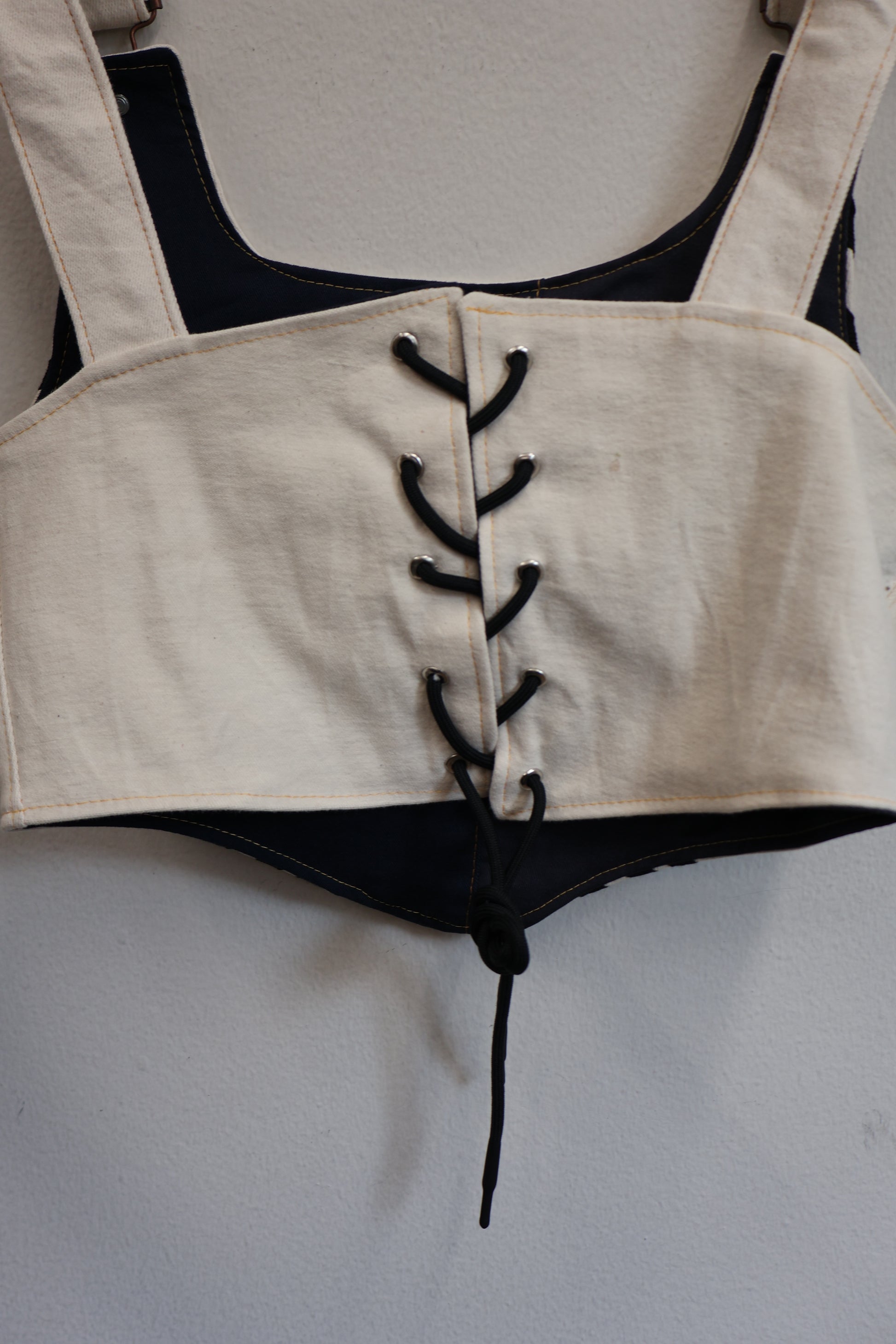 デニムとスポーツラインを掛け合わせた、Y2Kムード全開のビスチェトップ。