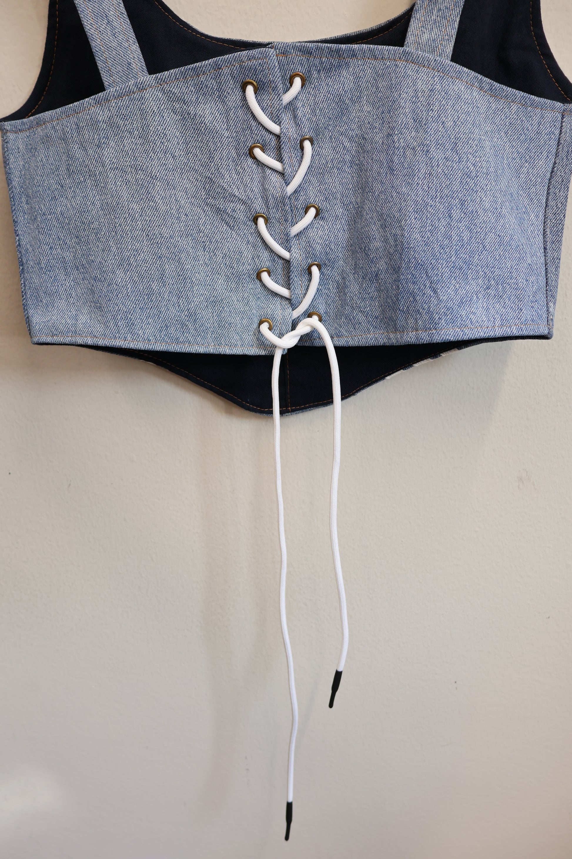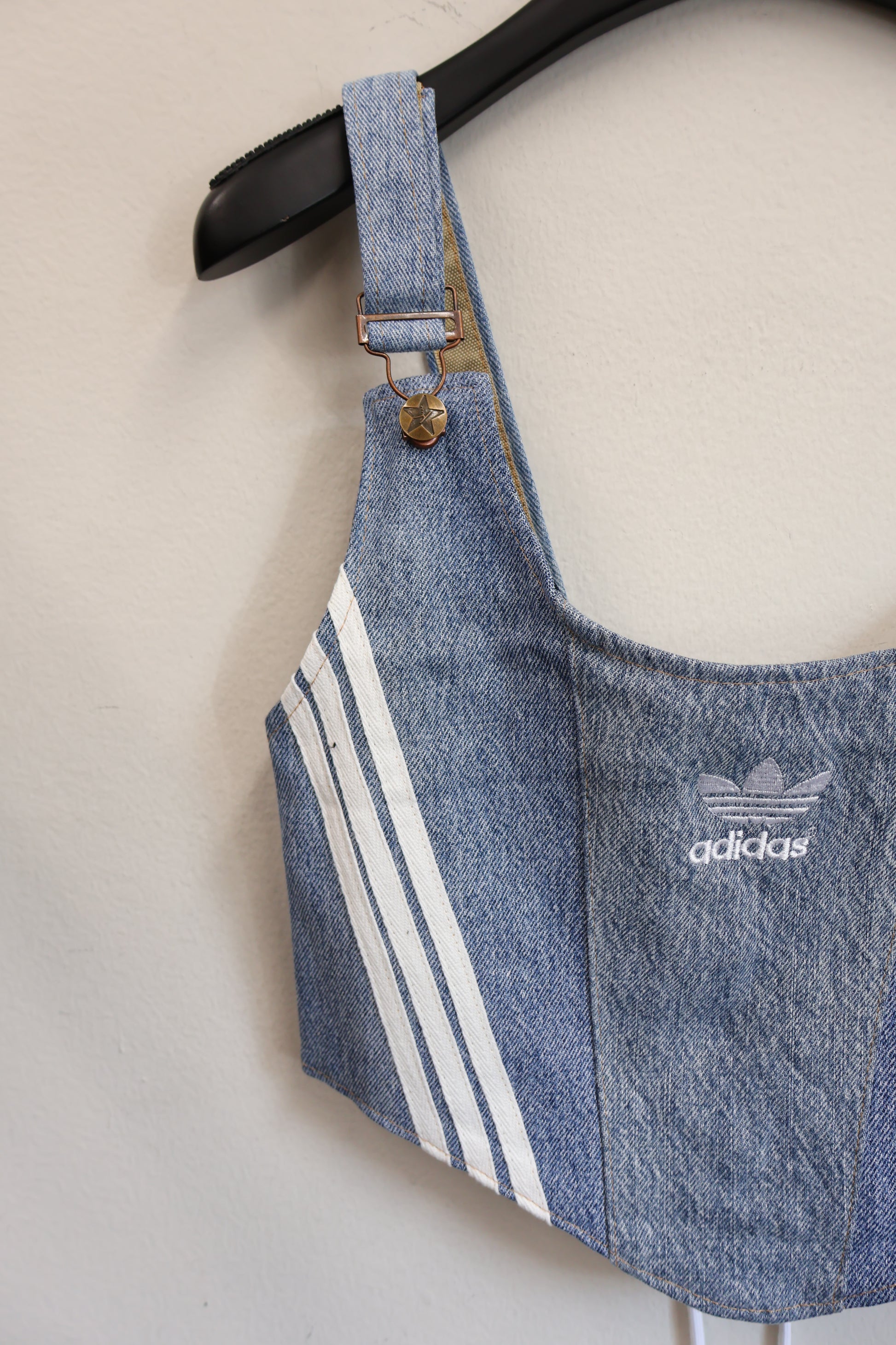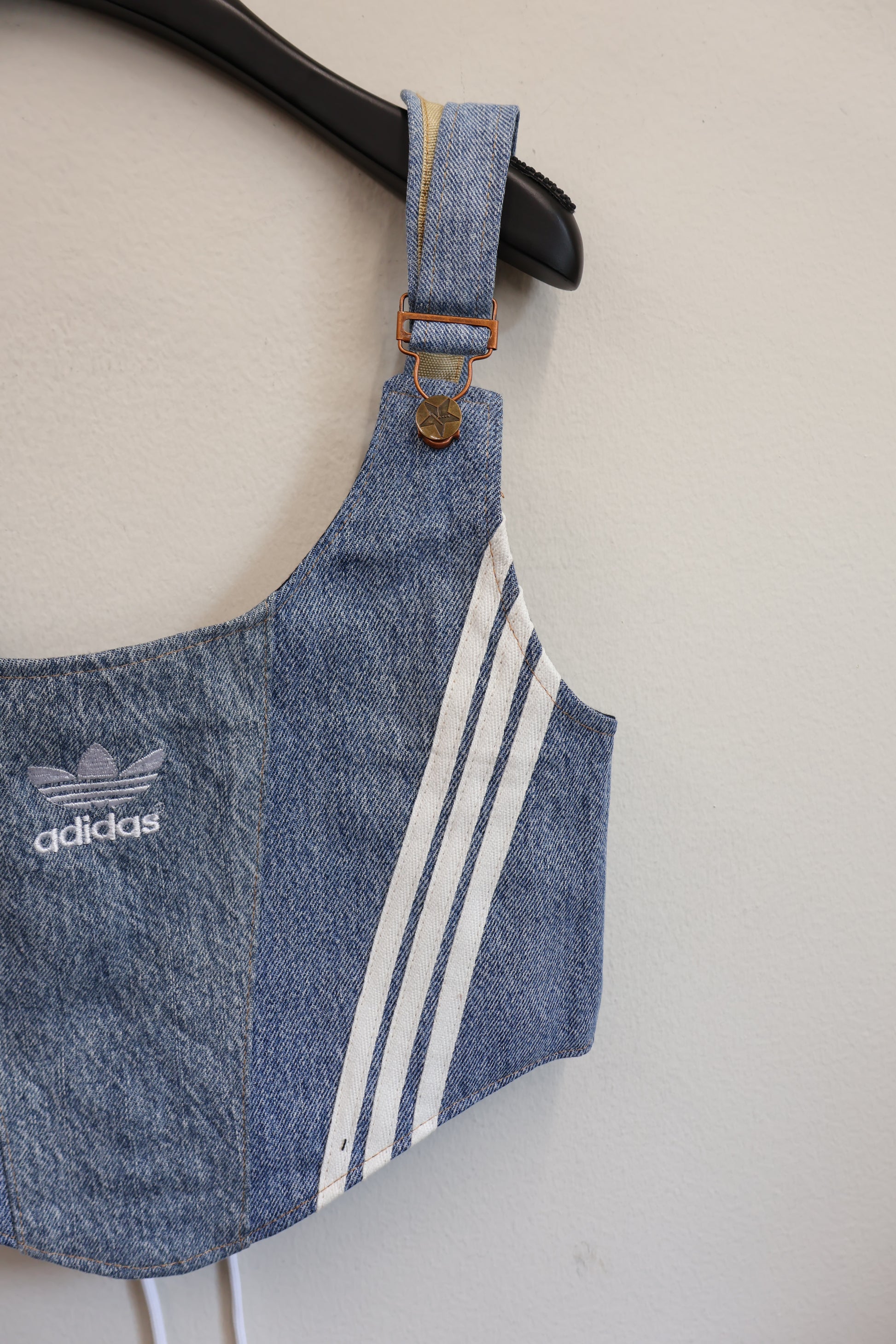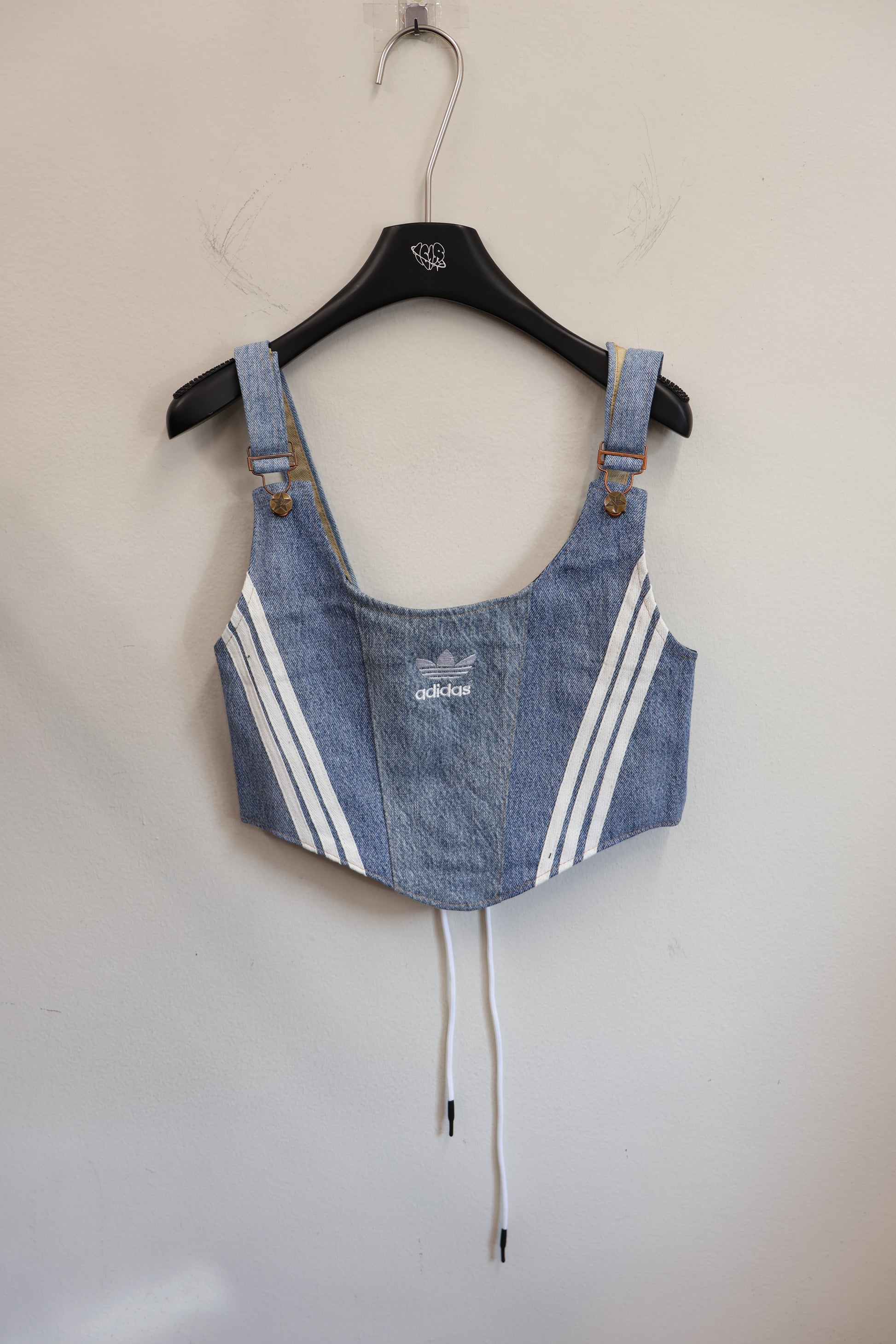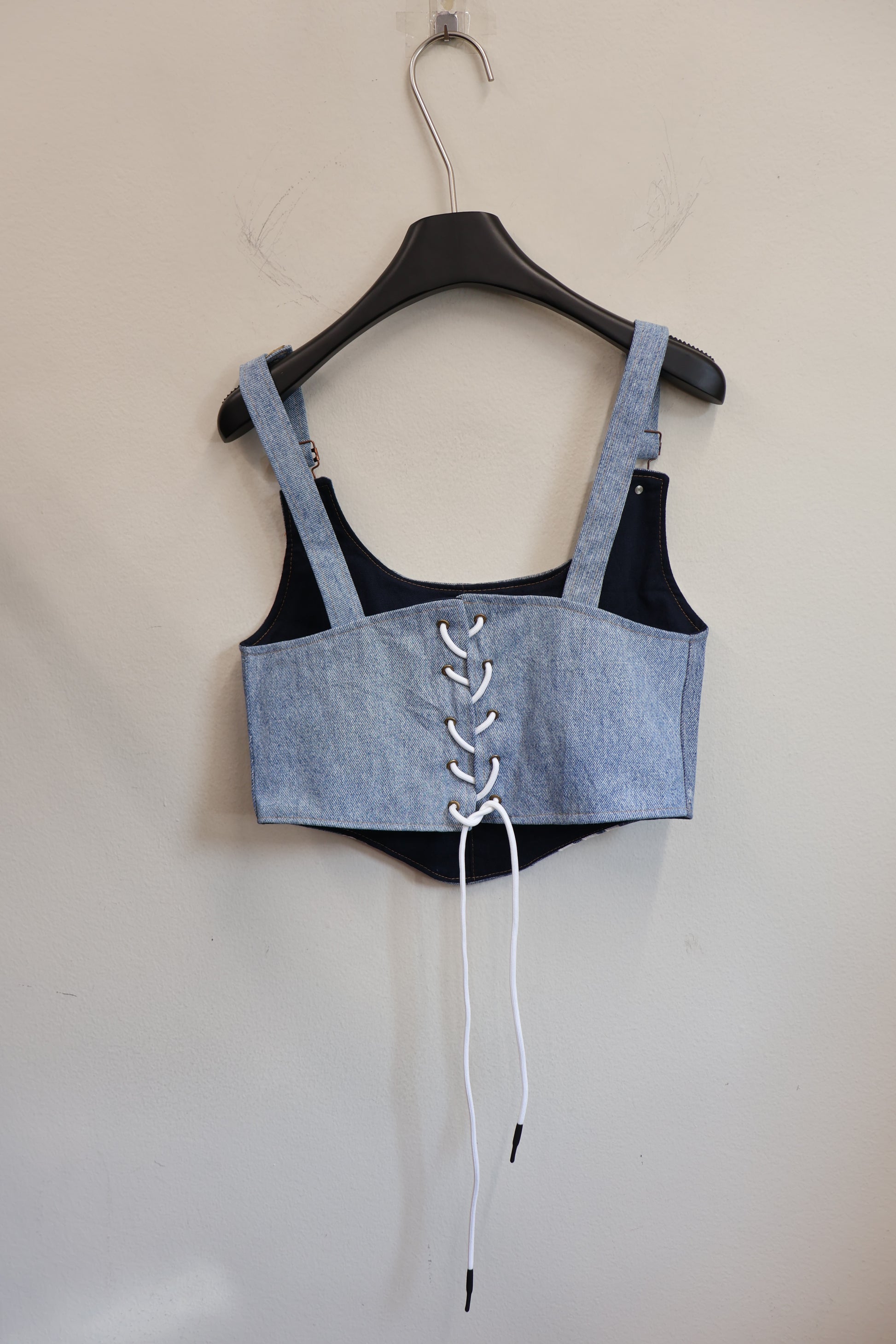 デニムとスポーツラインを掛け合わせた、Y2Kムード全開のビスチェトップ。
