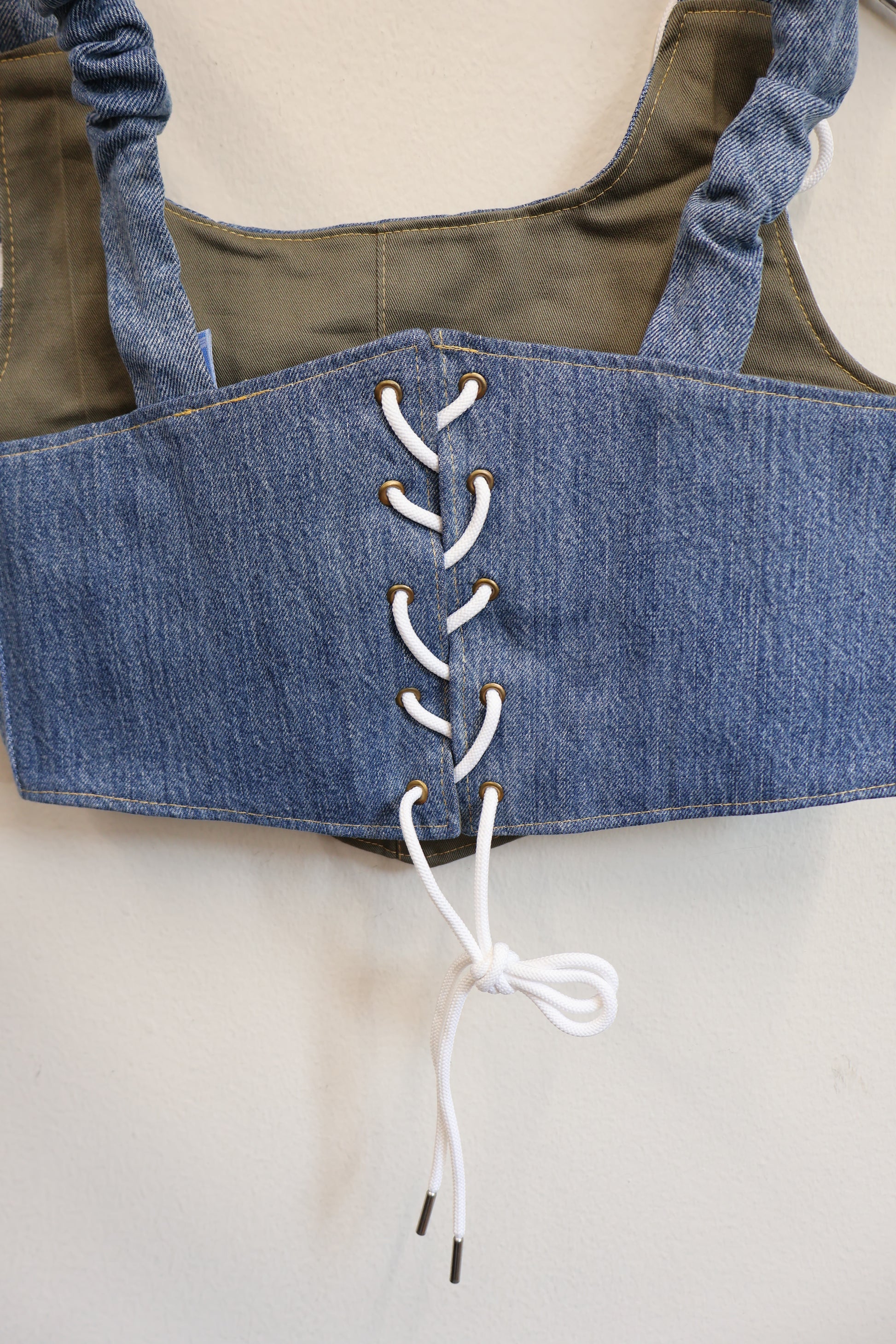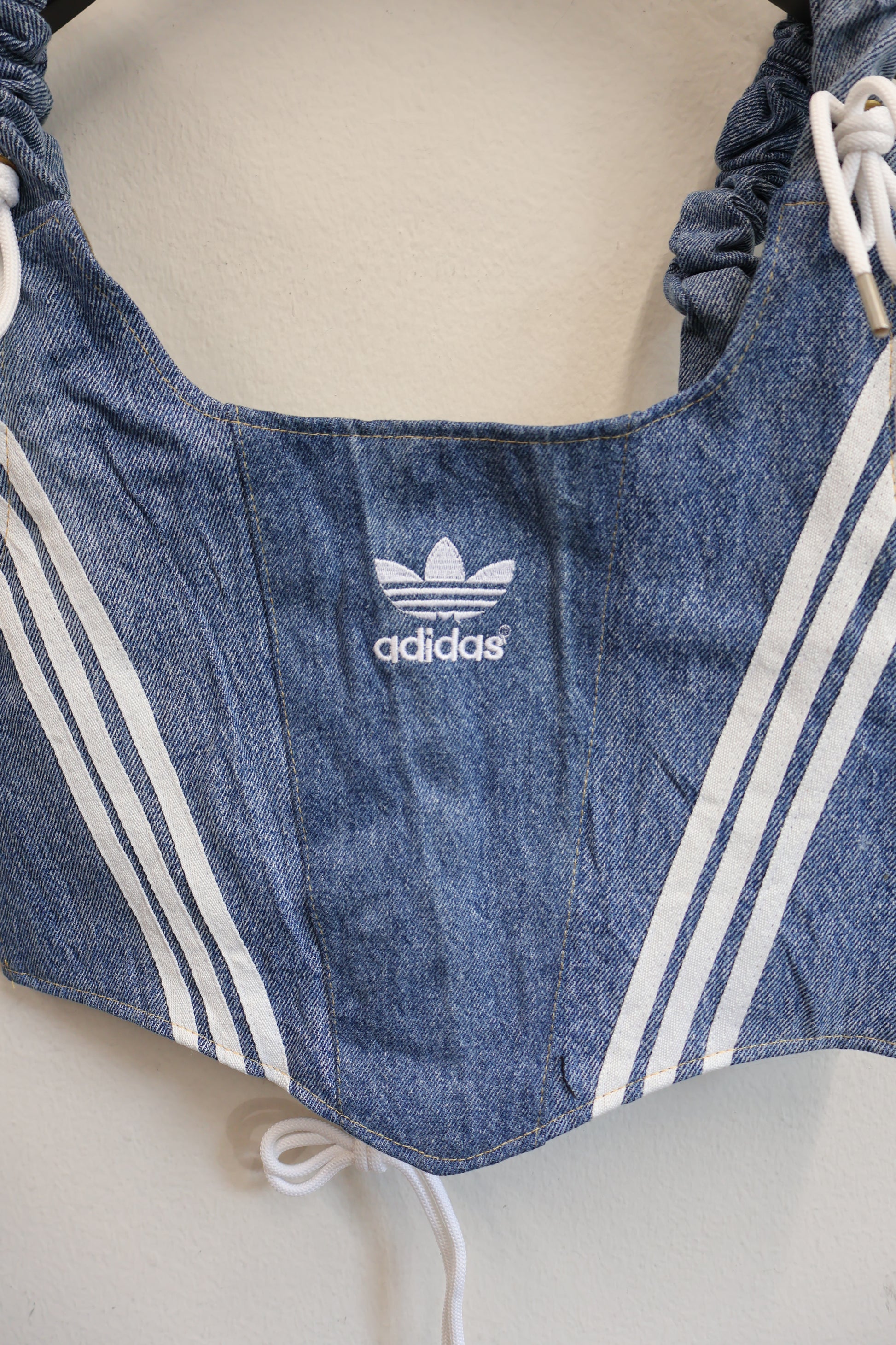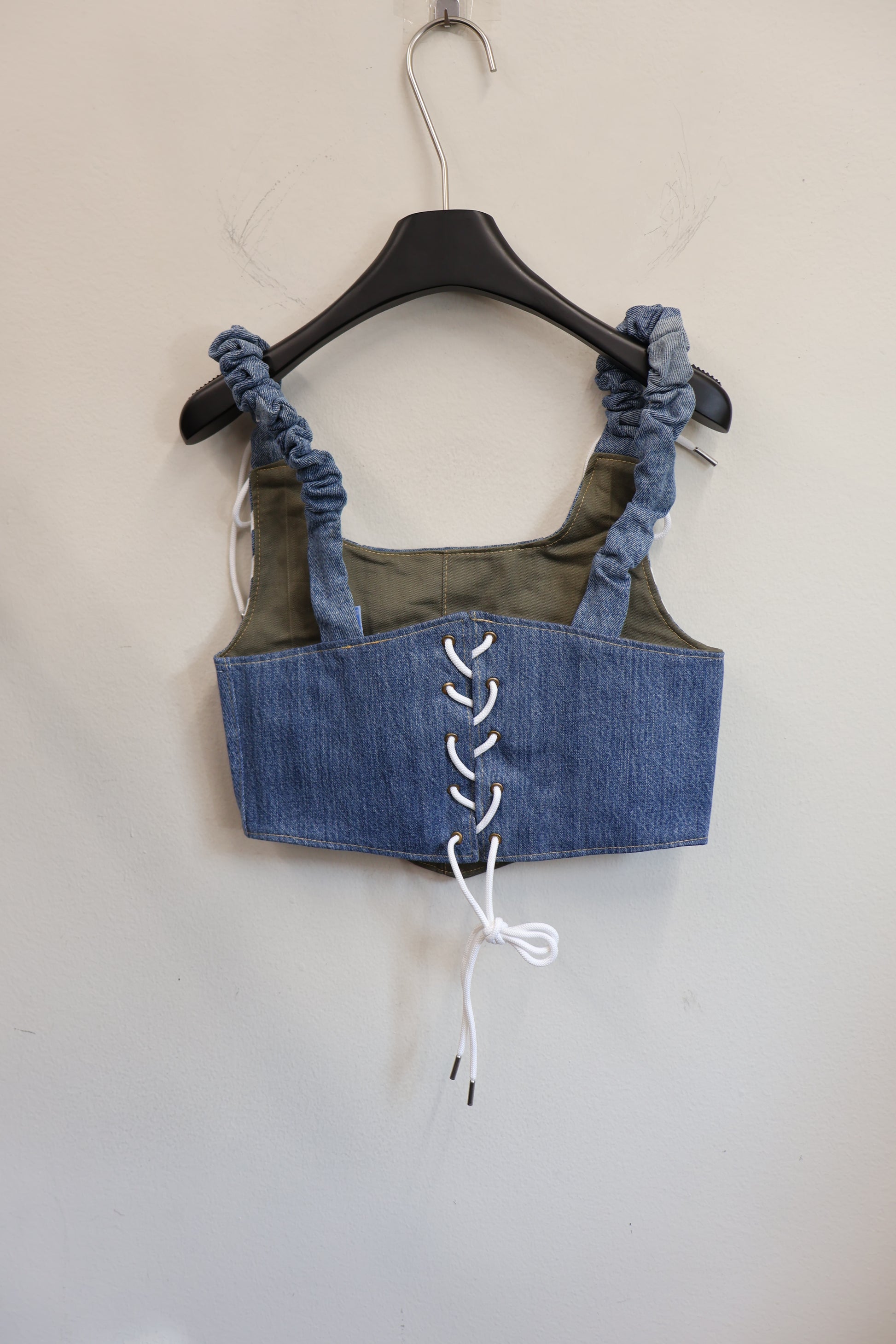 デニムとスポーツラインを掛け合わせた、Y2Kムード全開のビスチェトップ。