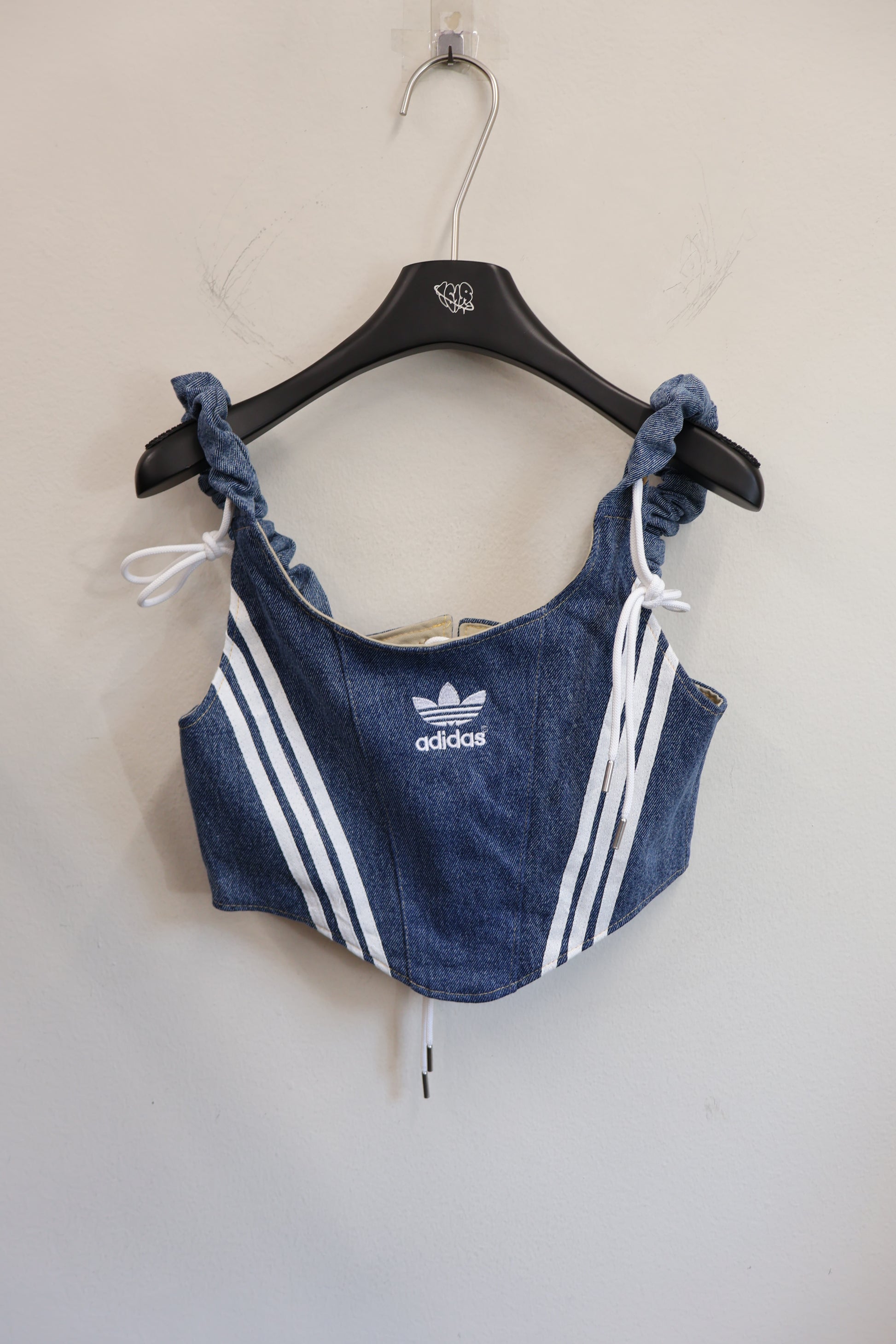 デニムとスポーツラインを掛け合わせた、Y2Kムード全開のビスチェトップ。
