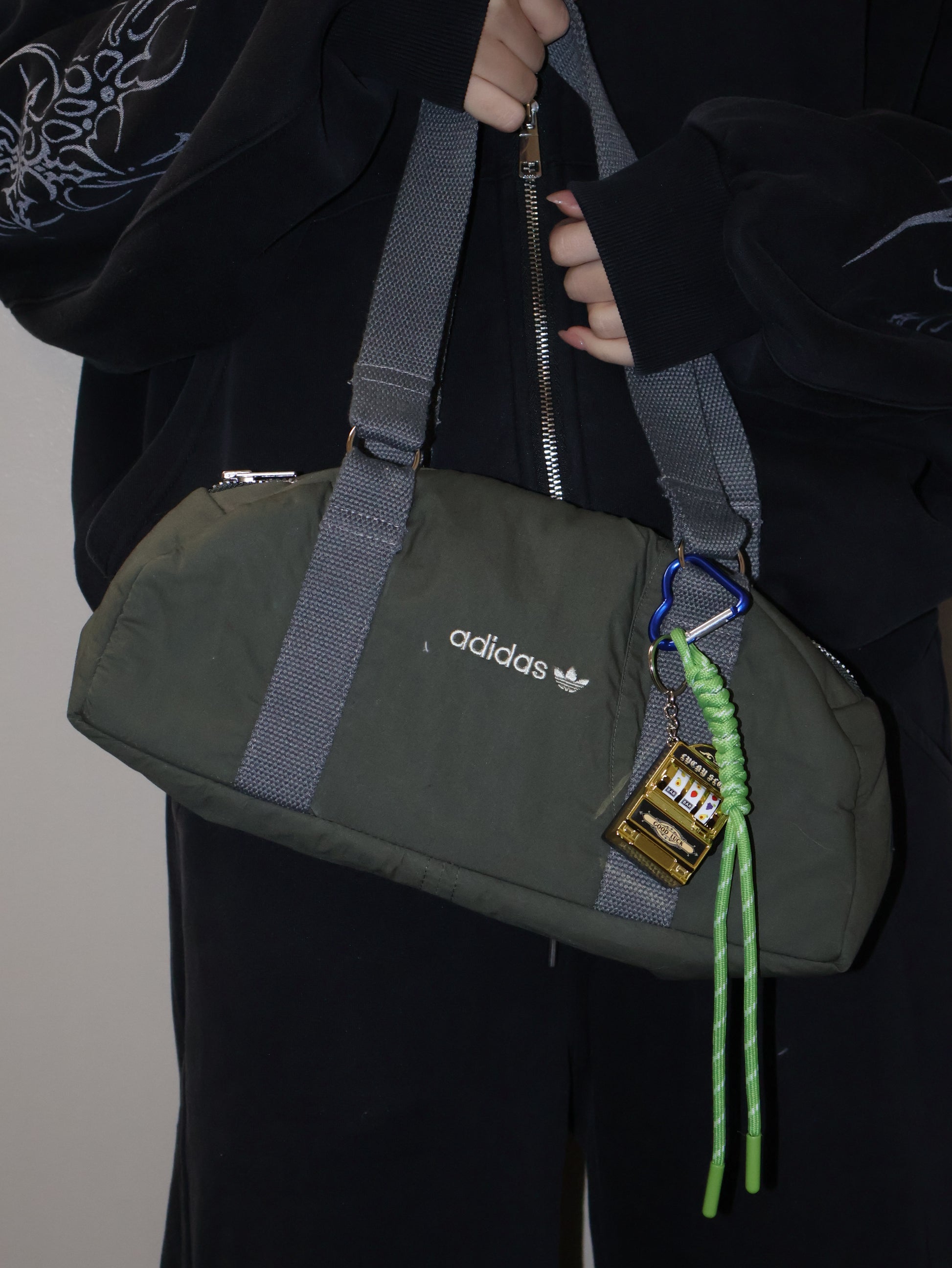 ヴィンテージ素材を使用した一点物リメイクバッグ。配置や表情がすべて異なり、同じものは存在しません。持つだけでコーデにエッジが出て、Y2K・韓国ストリート・平成ギャルのスタイルに相性◎。デイリー使いしやすく、スタイリングのアクセントとして活躍します。