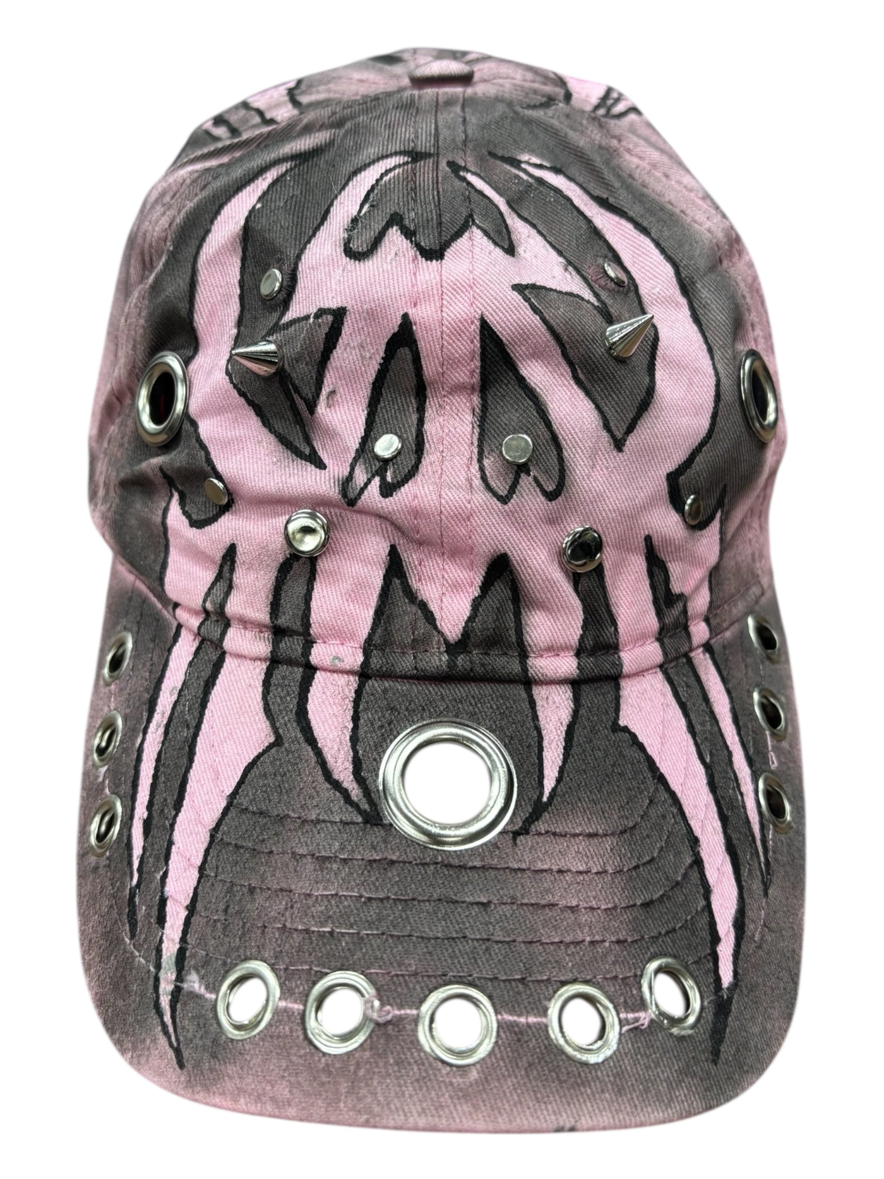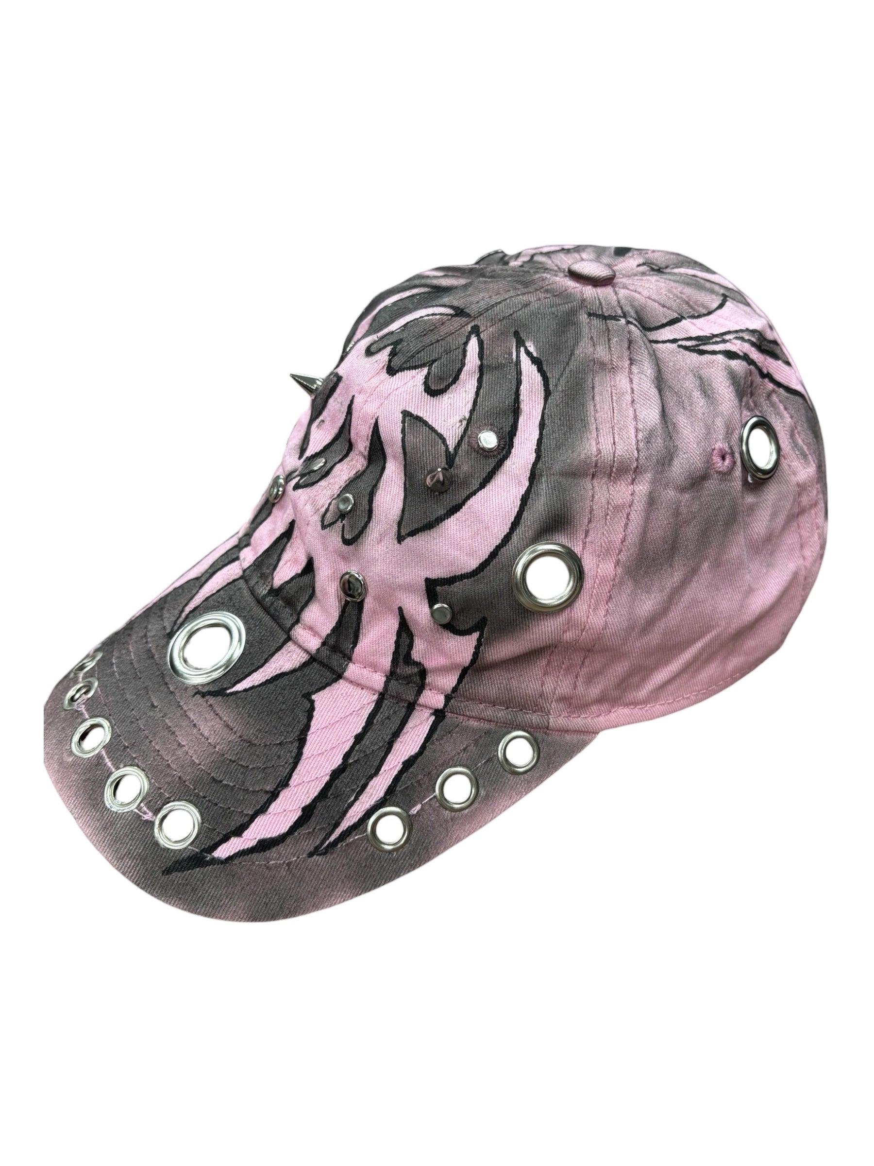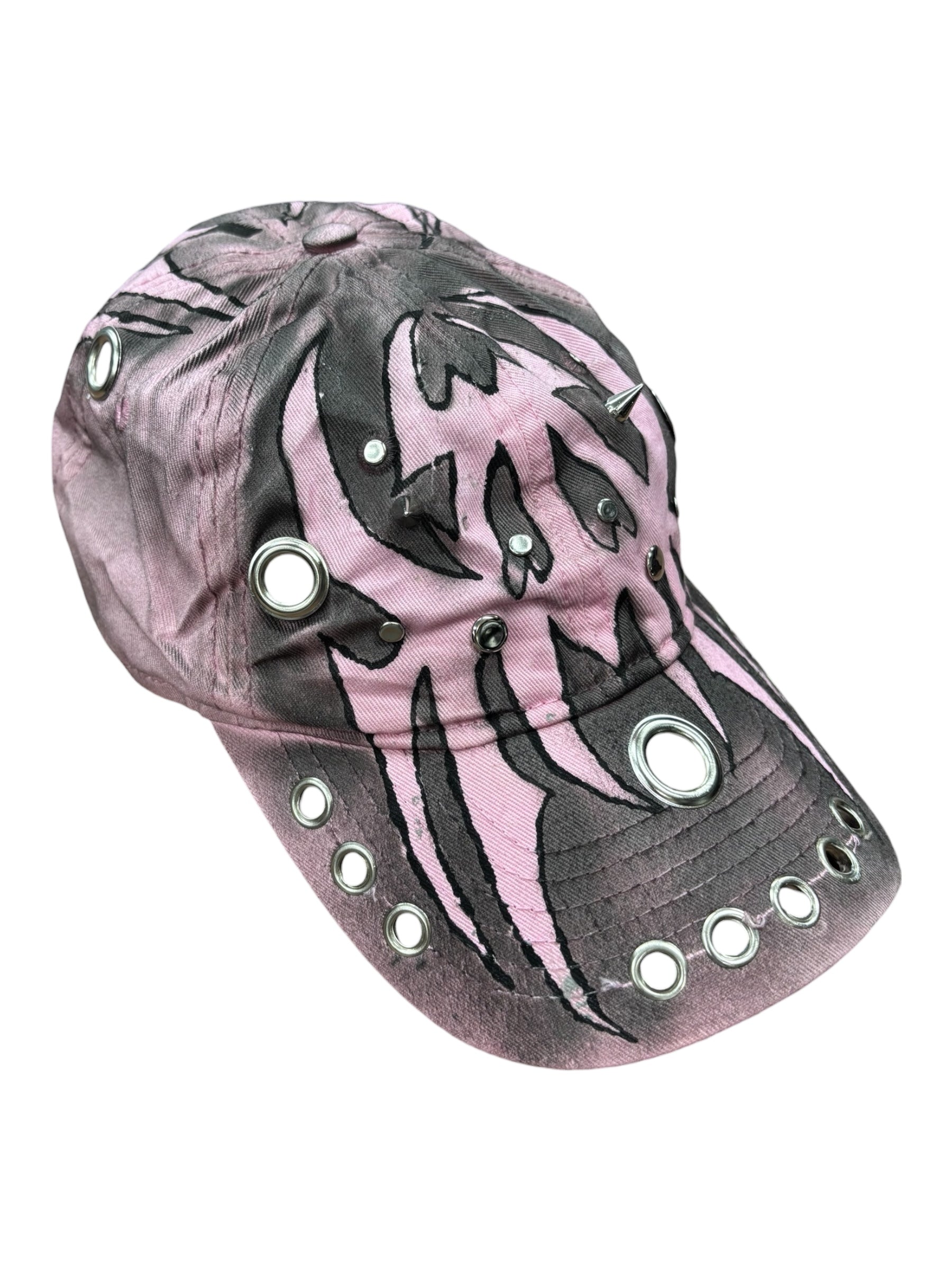 ハンドペイント×アイレット装飾で、被るだけでコーデにエッジと盛れ感をプラス。甘さも強さも振れる万能アクセ。