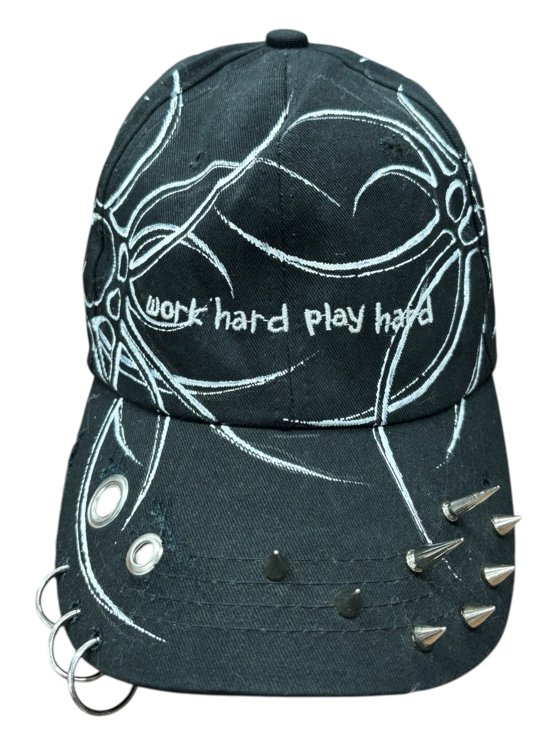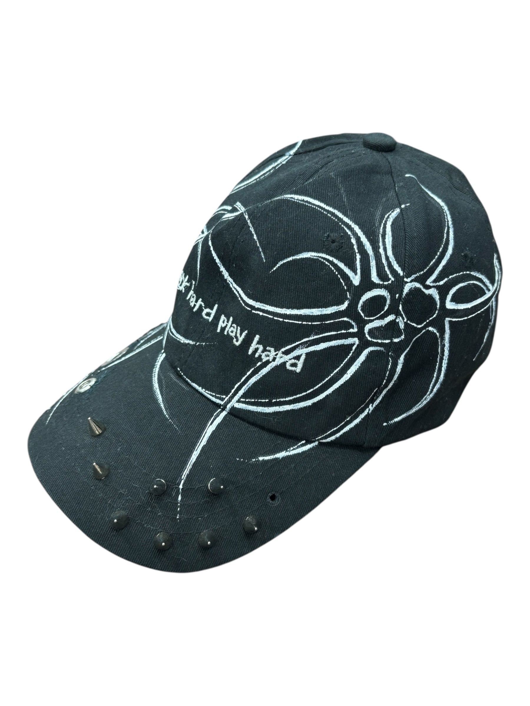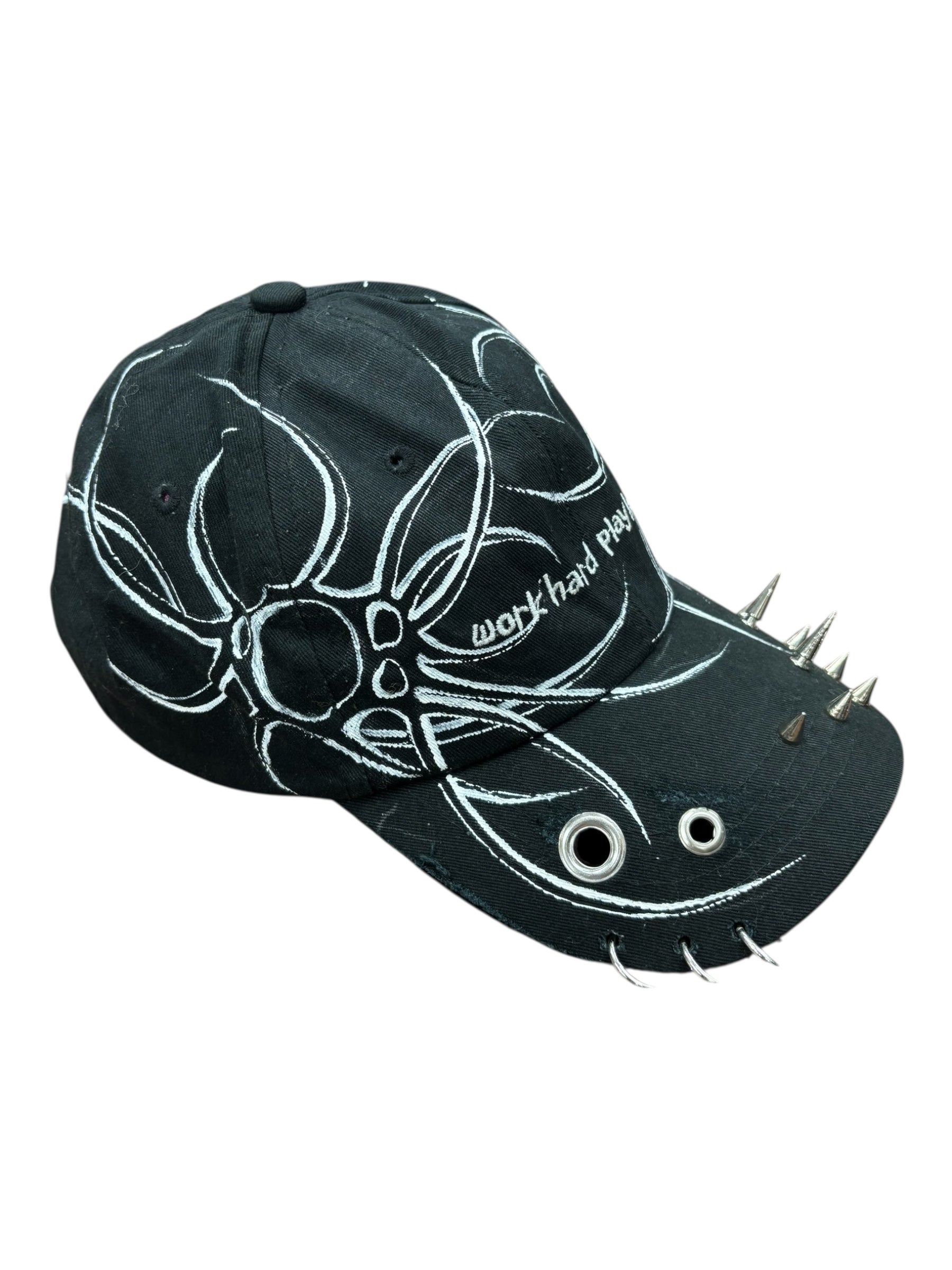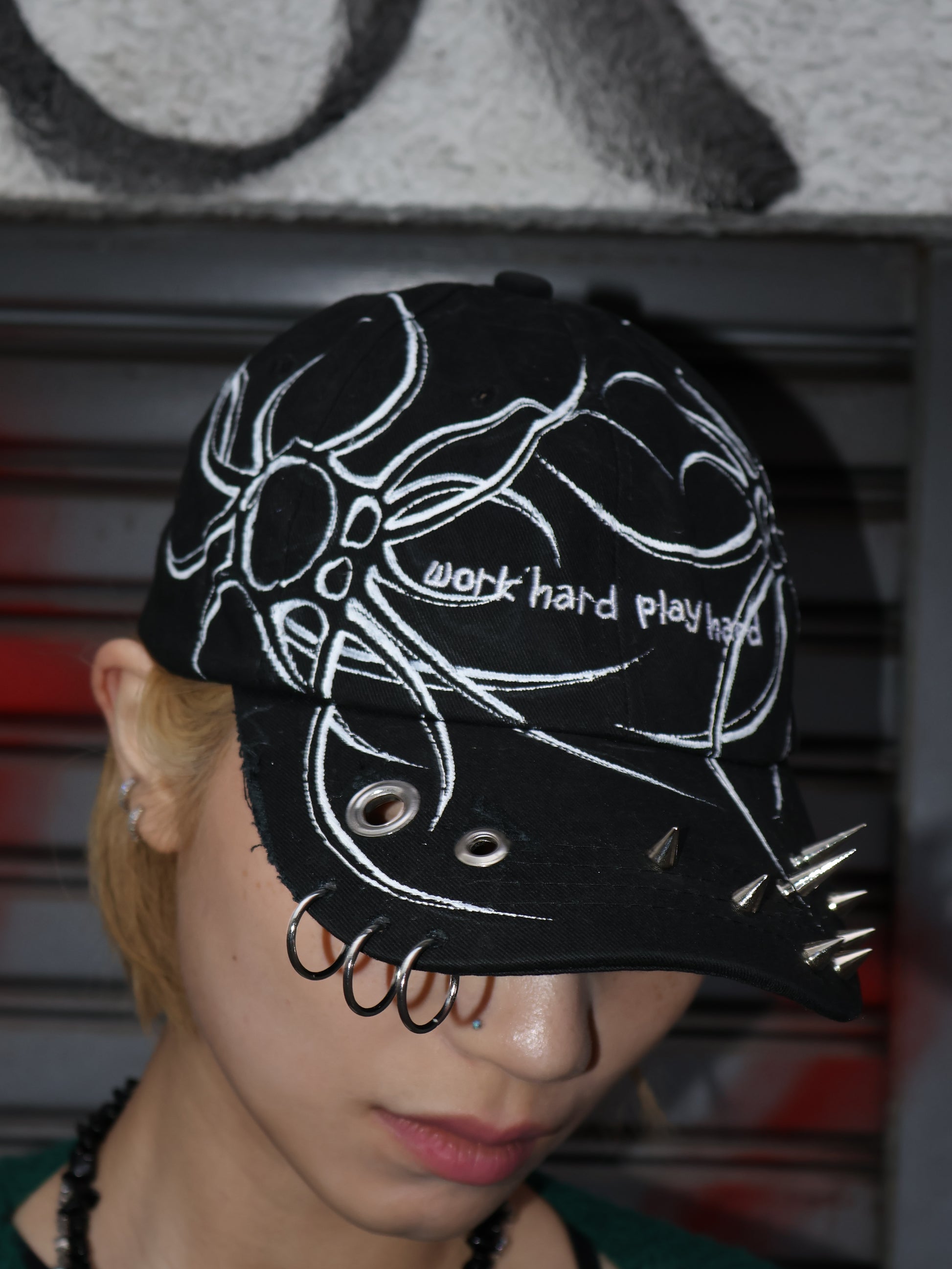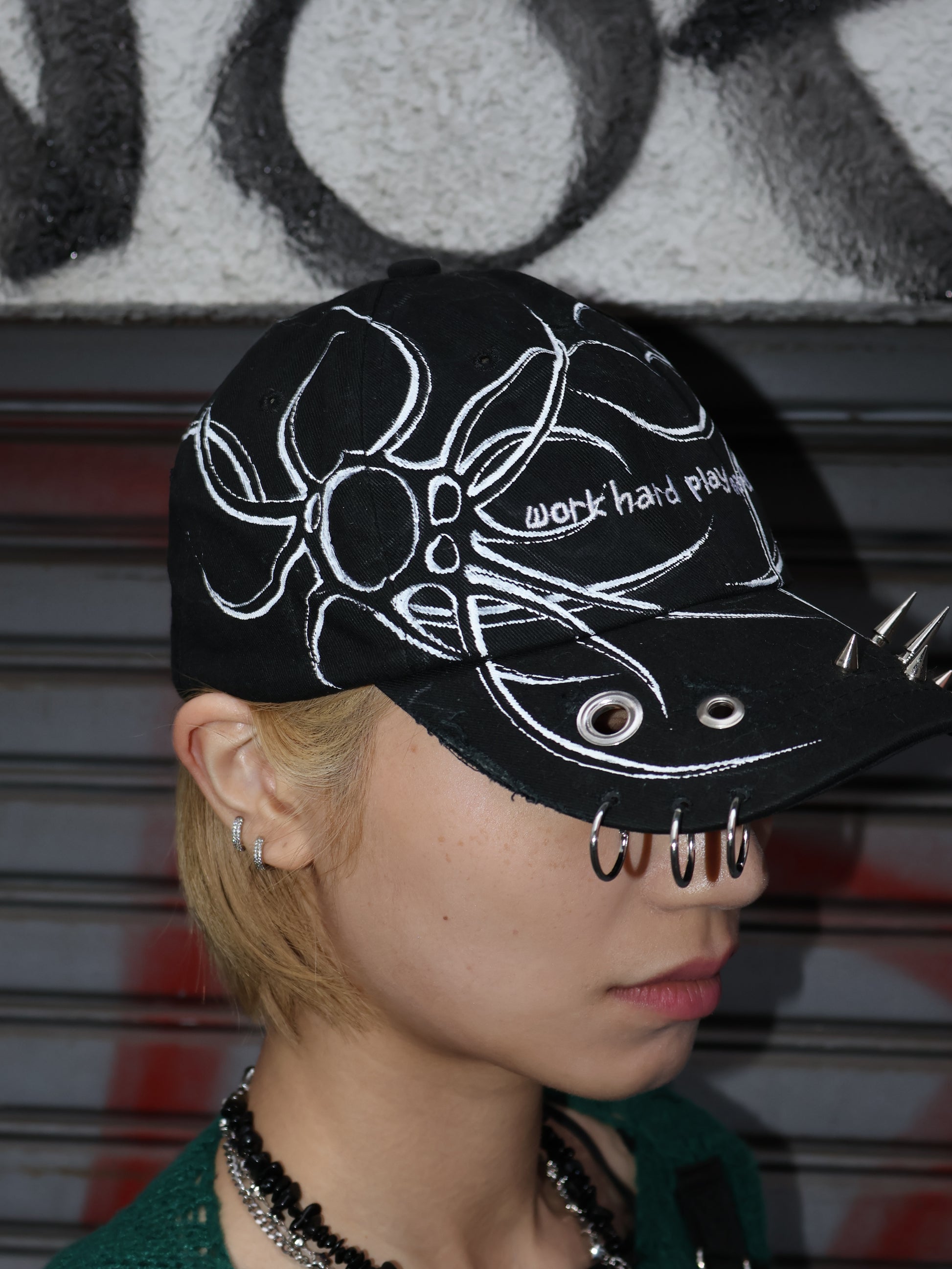 ハンドペイント×アイレット装飾で、被るだけでコーデにエッジと盛れ感をプラス。甘さも強さも振れる万能アクセ。