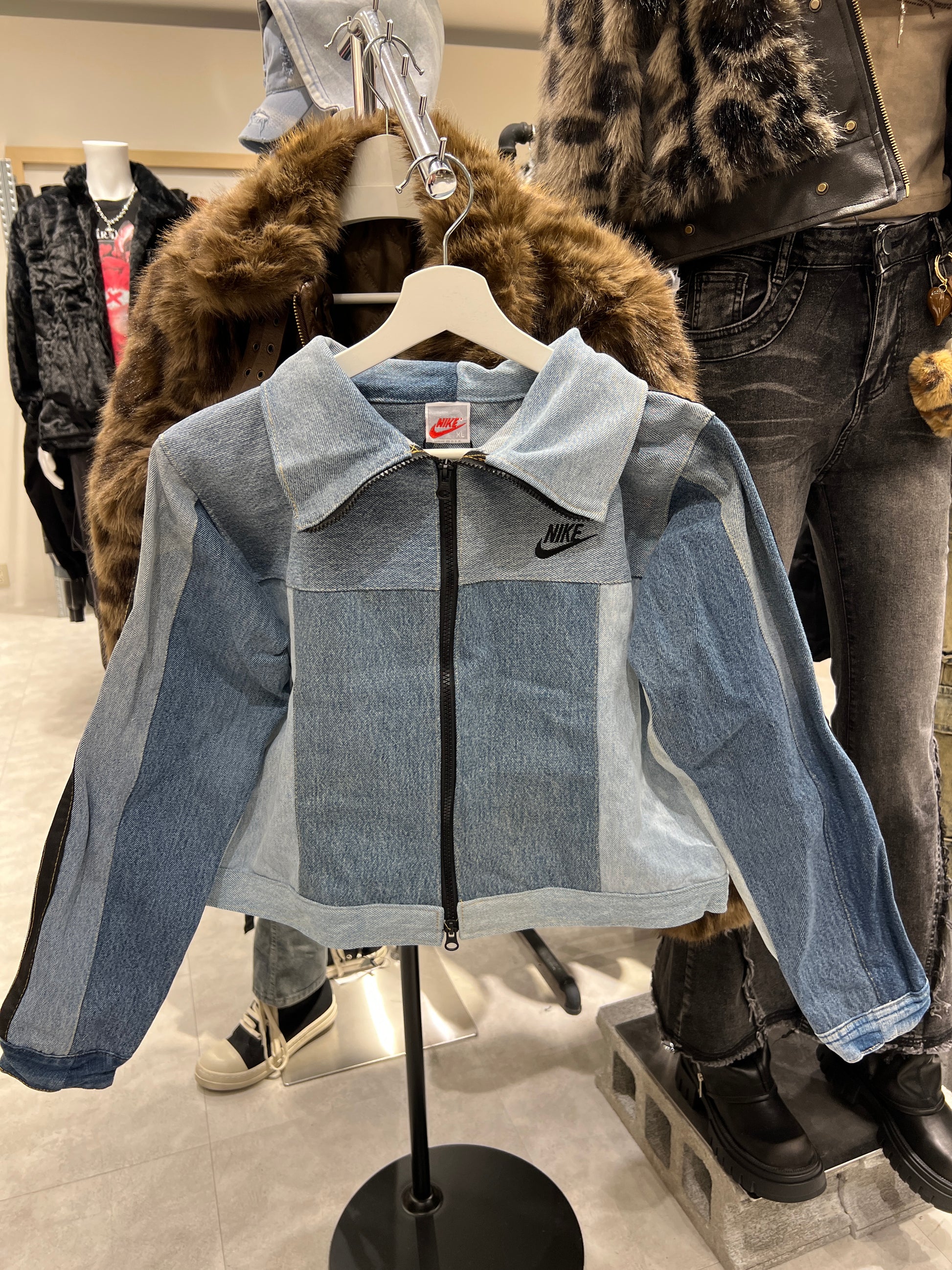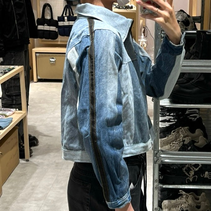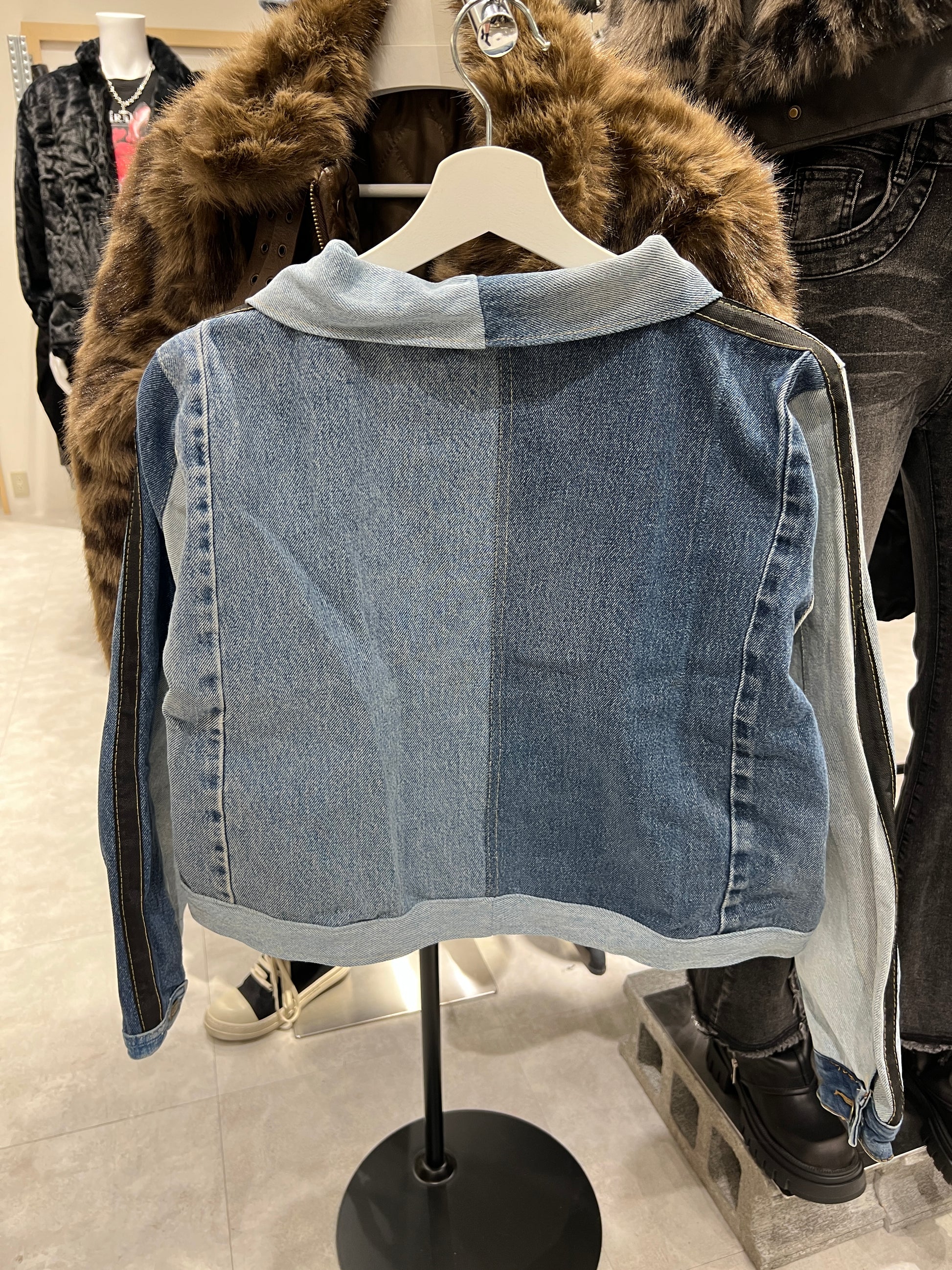 古着のデニムでリメイクされた1点もののジャケットです。