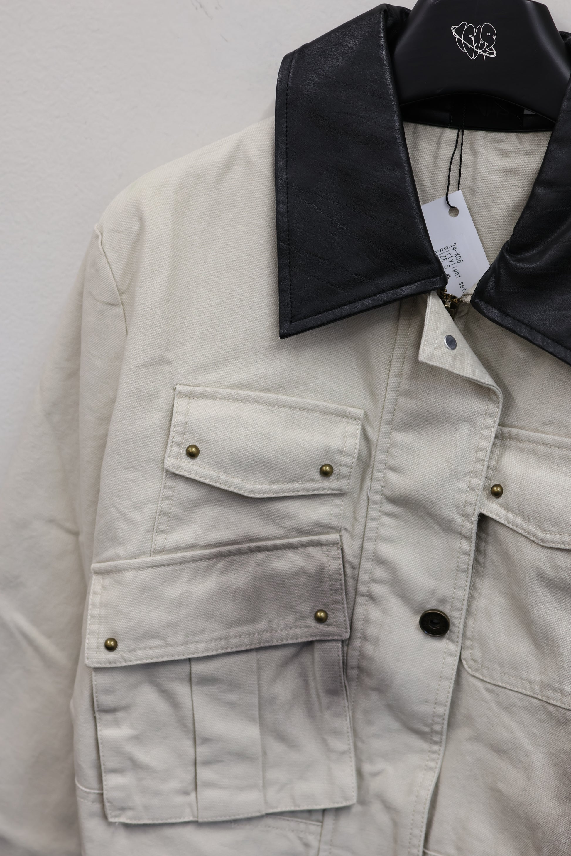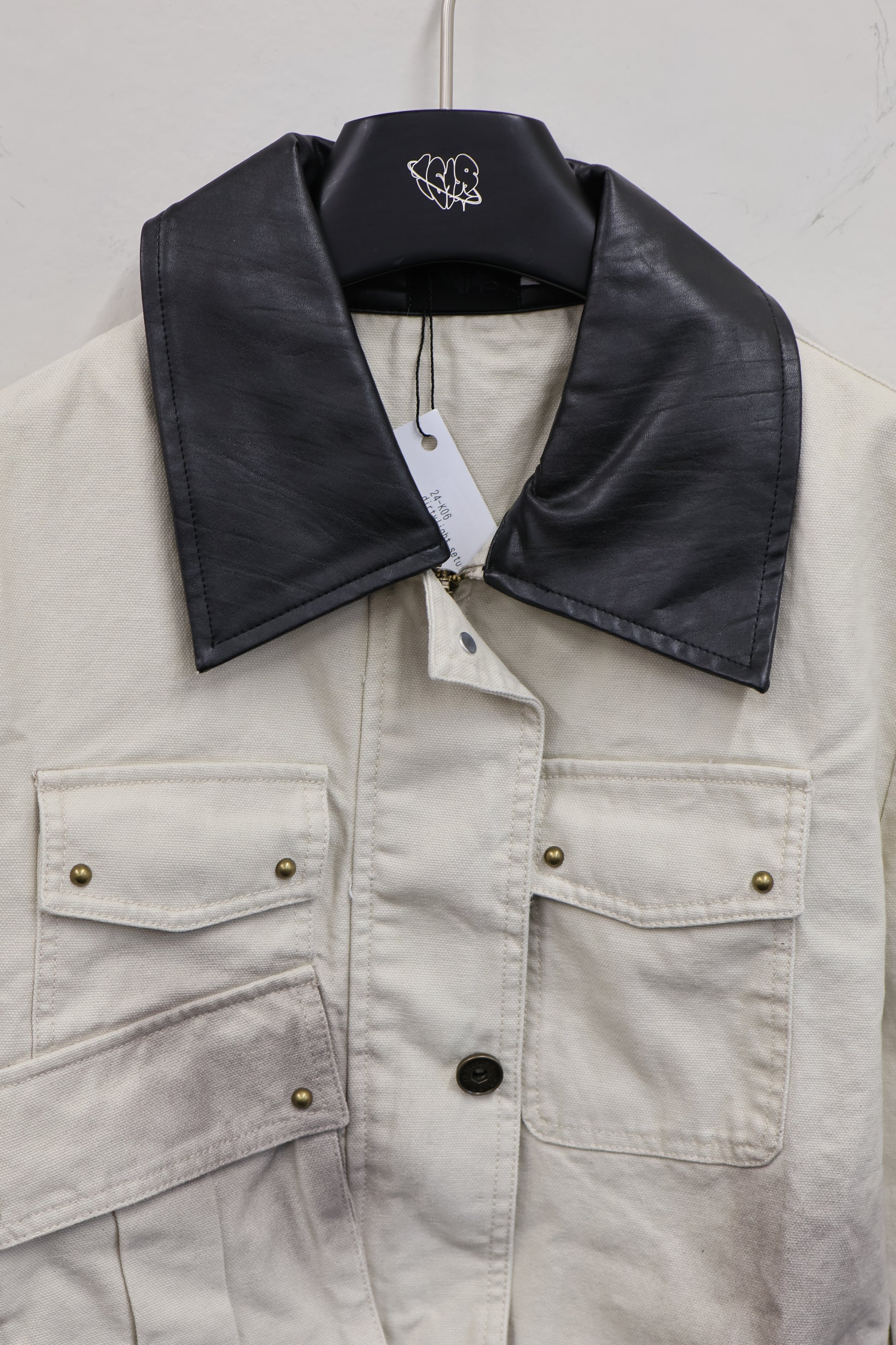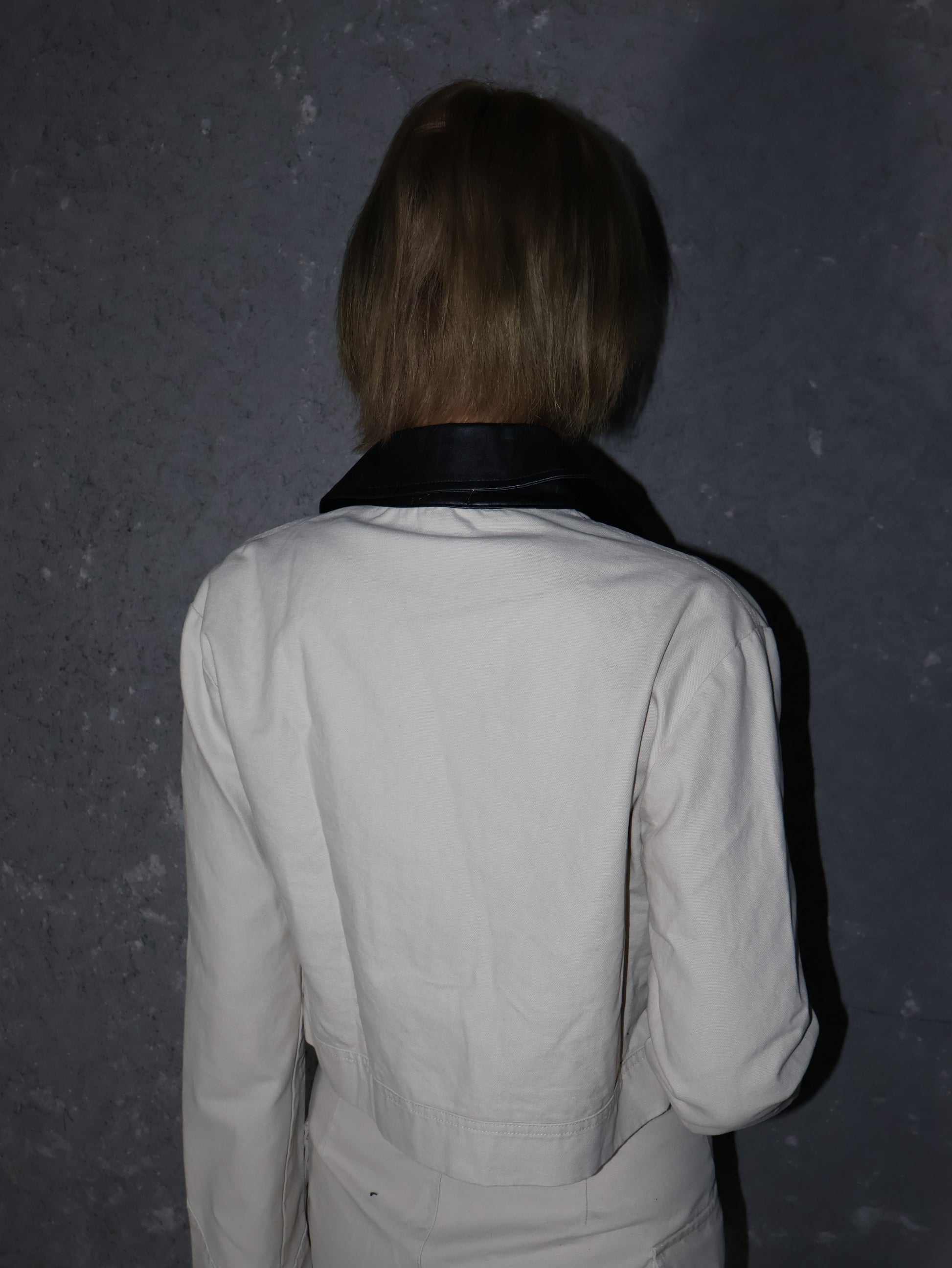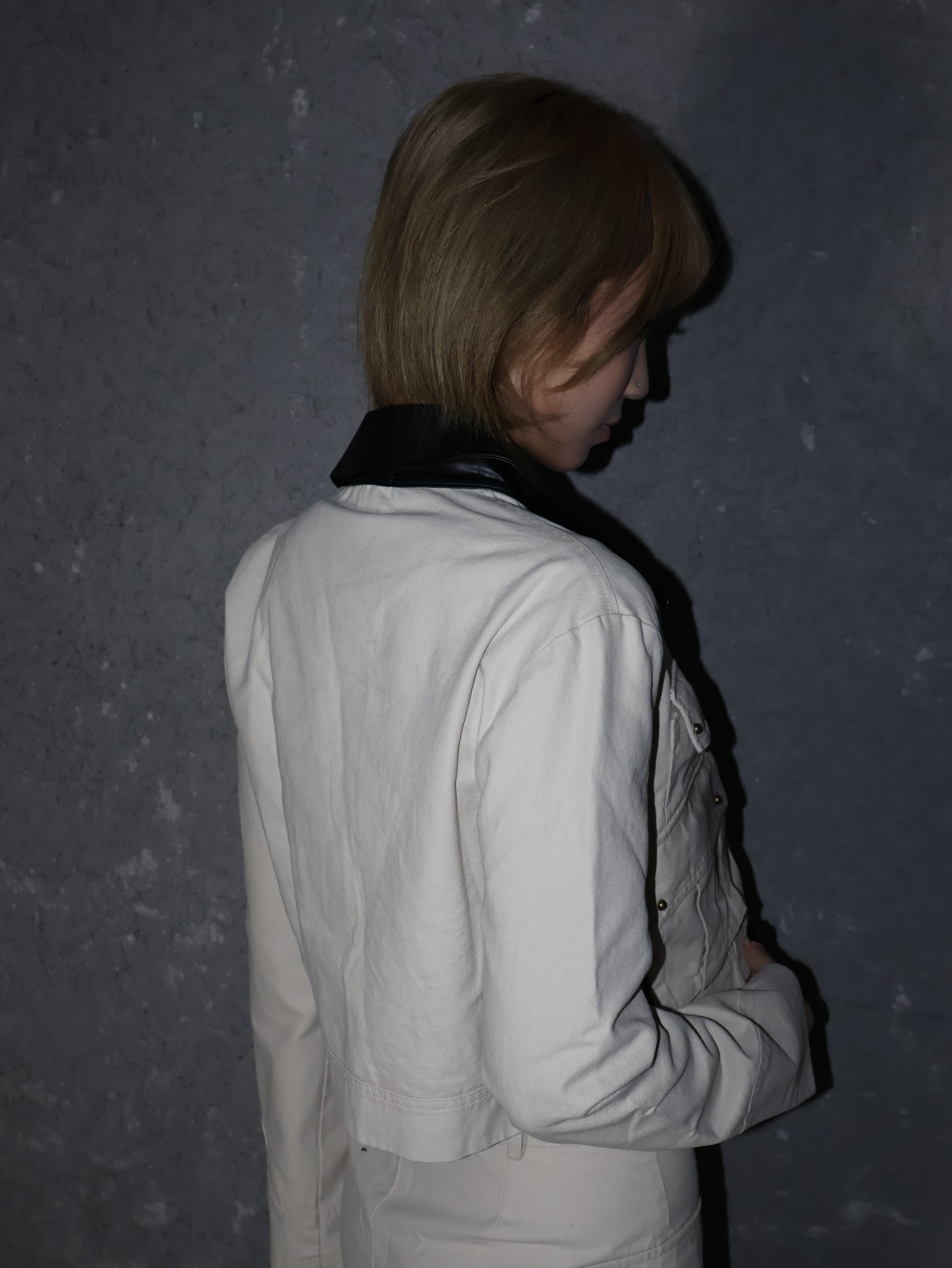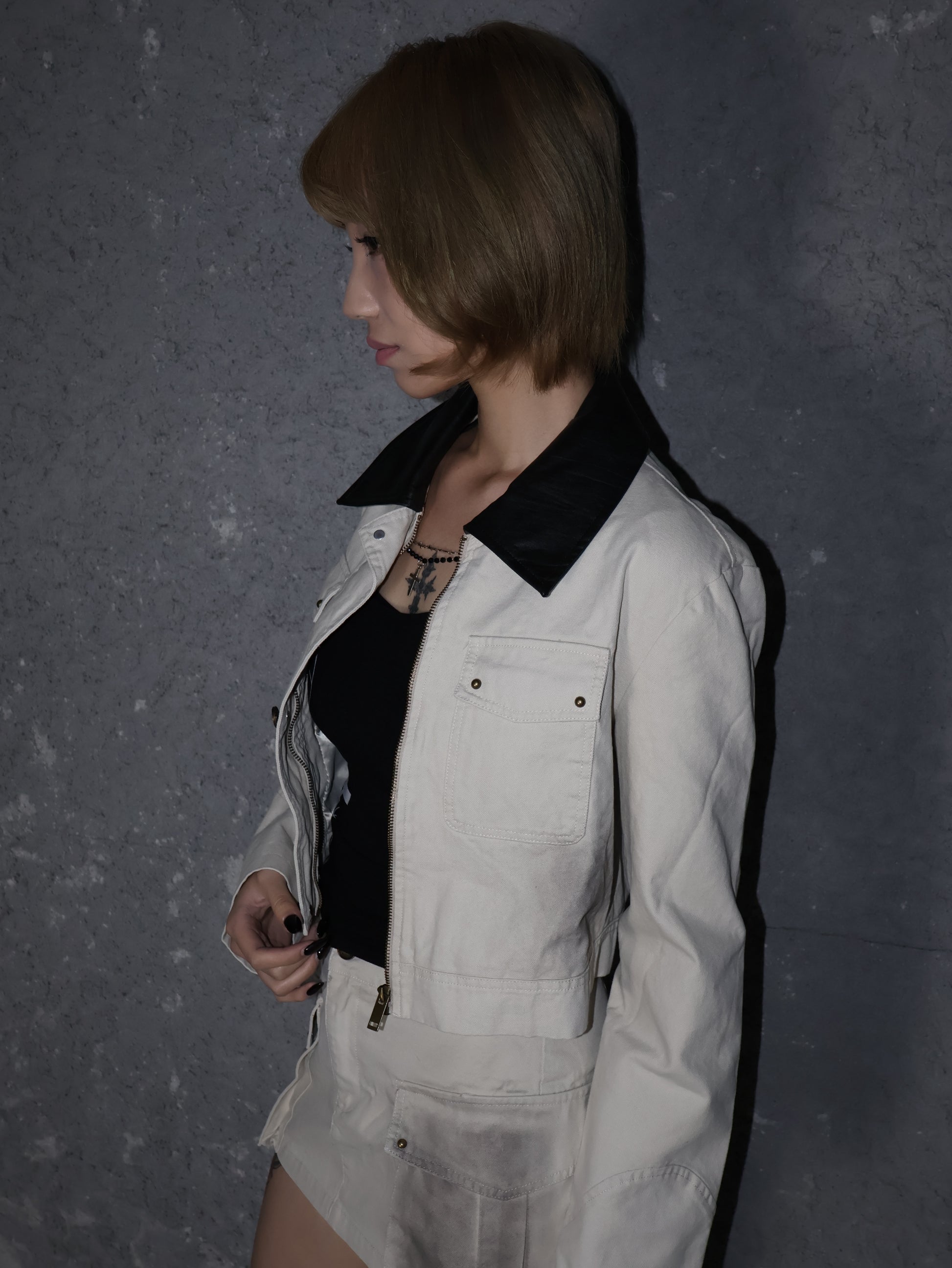 くすみベージュに立体フェードを効かせた、Y2Kストリート感強めのセットアップ。ジャケットはコンパクトに、スカートはミニシルエットで脚のラインを綺麗に見せてくれる“盛れバランス”がポイント。セットでも単品でも使いやすく、韓スト〜平成ギャルまで幅広くハマる主役級アイテム。