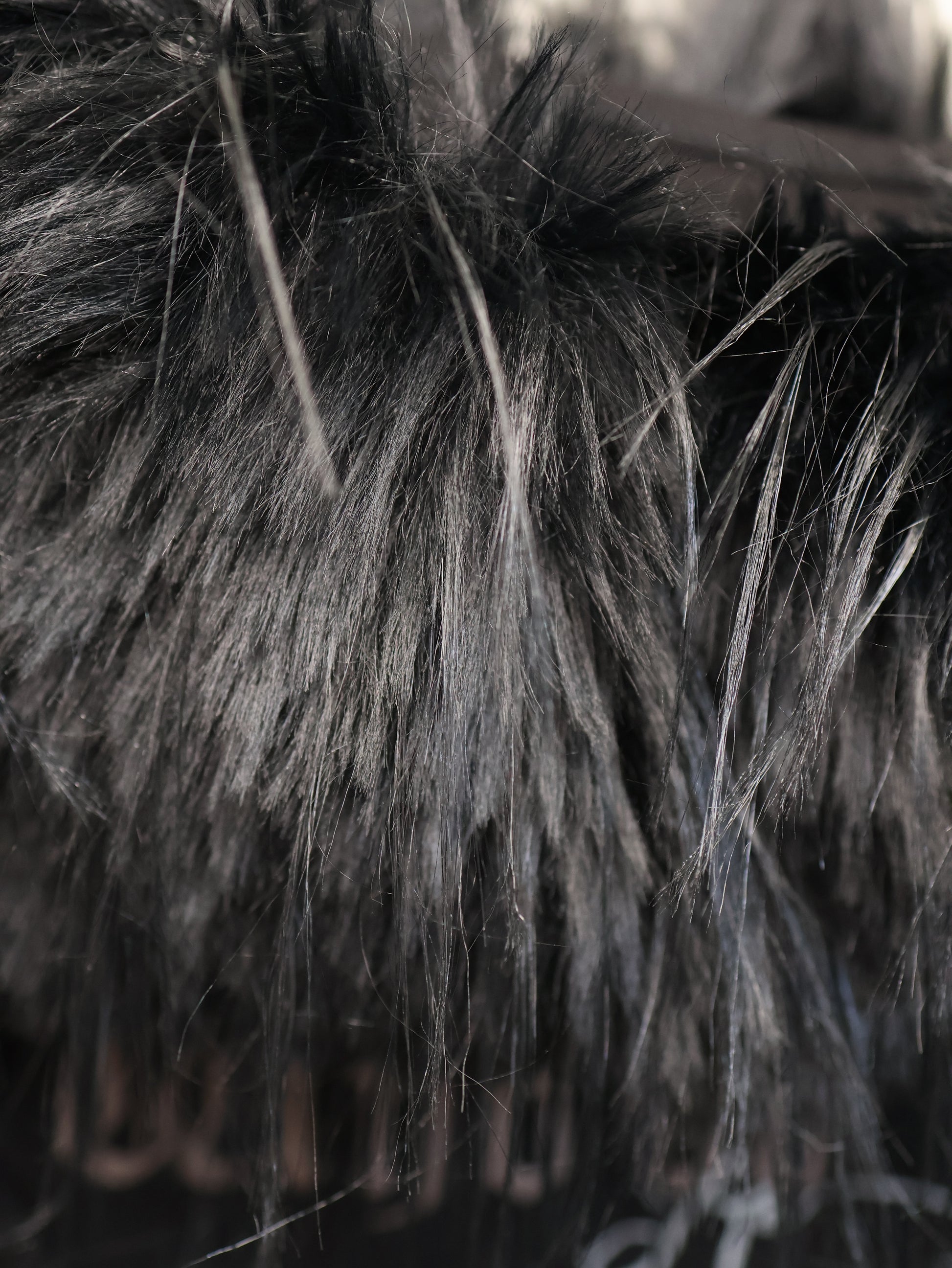 ・175cm モデル着用 → 肩が綺麗に出て、ウエストラインがタイトにまとまり綺麗に盛れるバランス。ファーの存在感で一気に強め見え。