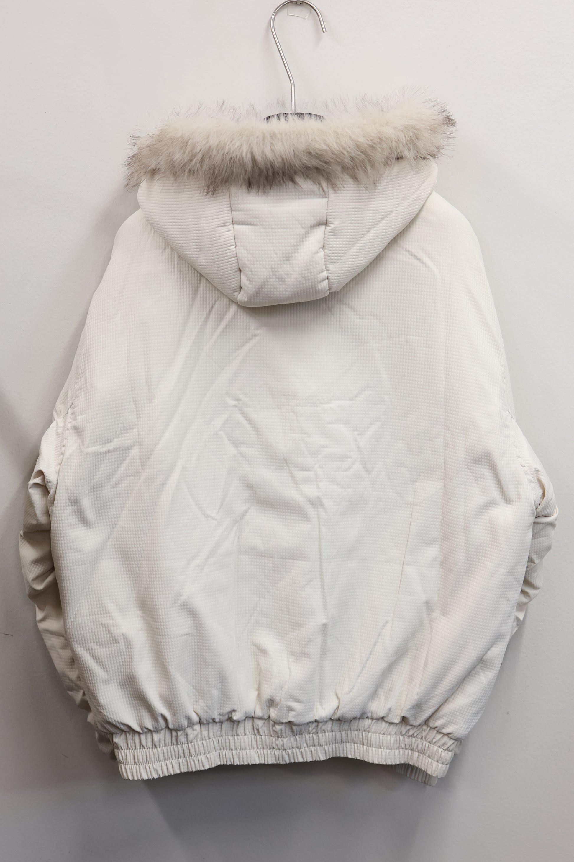 ボリュームのあるファーが顔周りを華奢見せし、裾は骨盤上でキュッとまとまるシルエット。ストリート感強めの“盛れバランス”が完成。