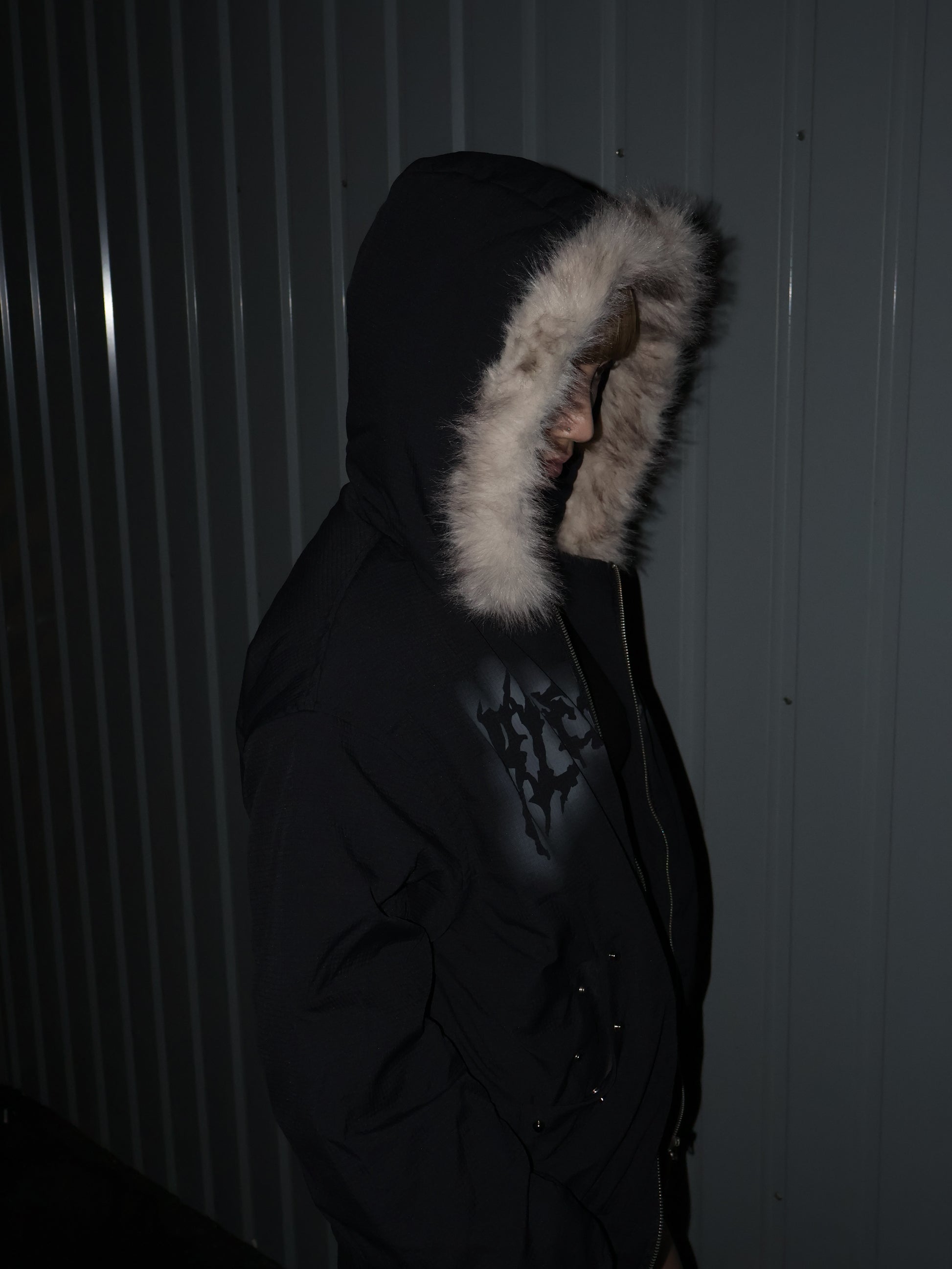 ファー×グラフィックの圧倒的存在感。冬コーデを一撃で“強め盛れ”に引き上げる主役アウター。