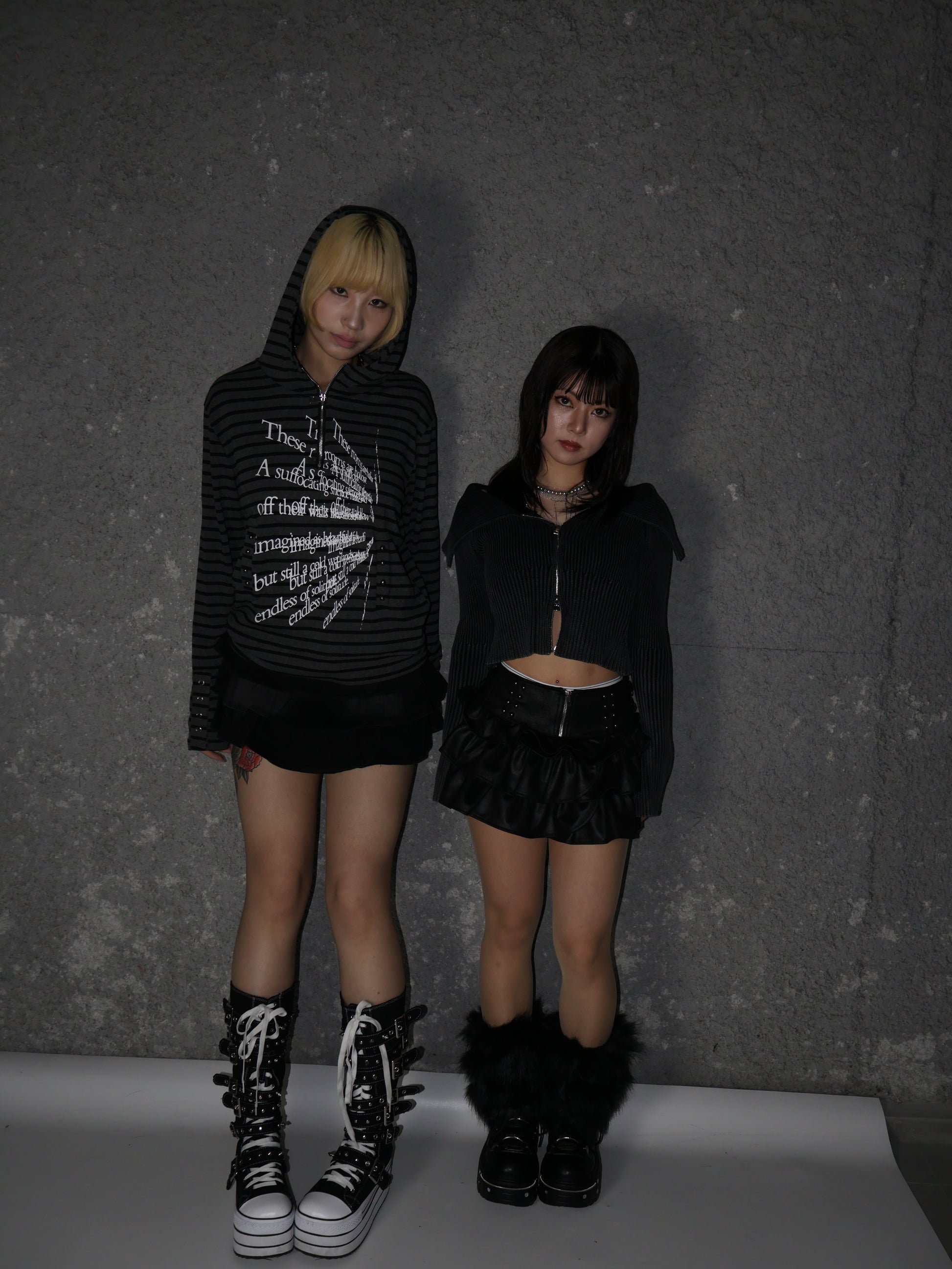 少しボリュームのあるミニスカートとして着用でき、脚を綺麗に見せるシルエット。厚底ブーツやロングブーツと好相性。